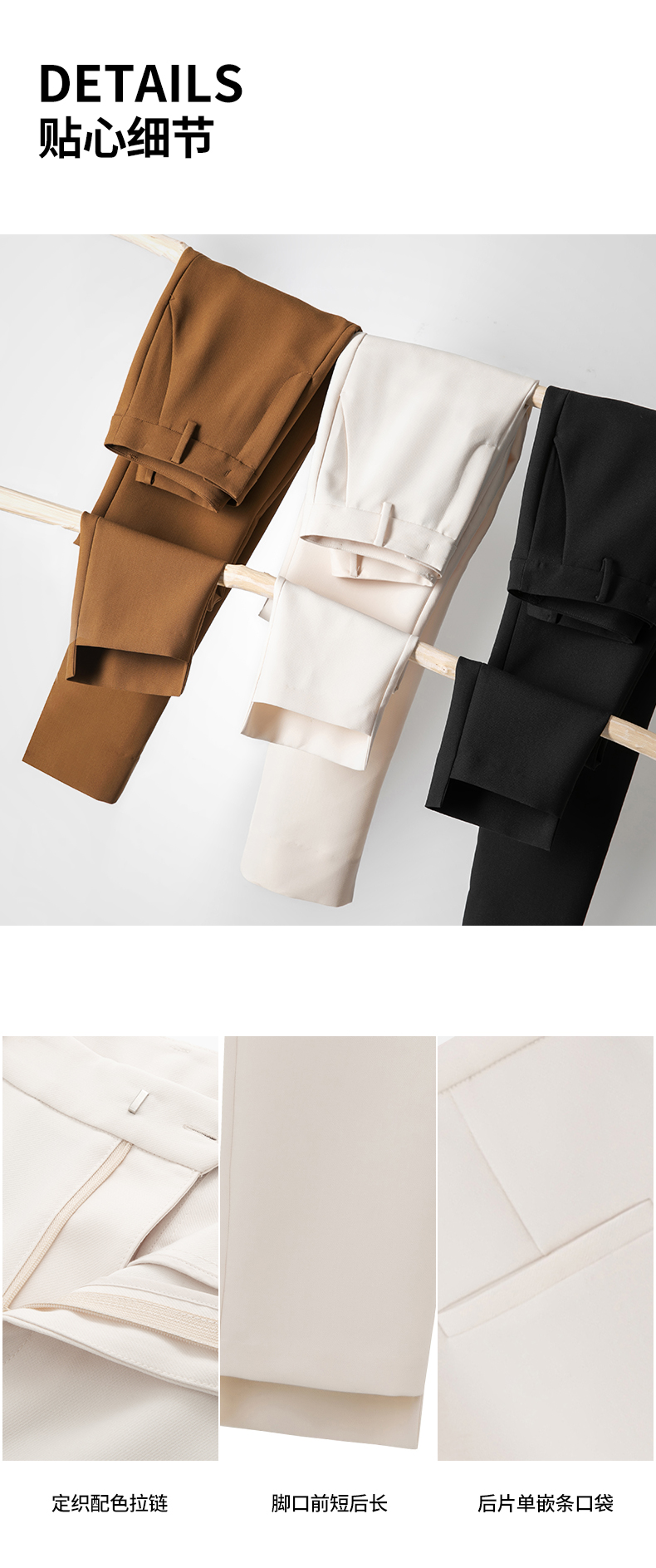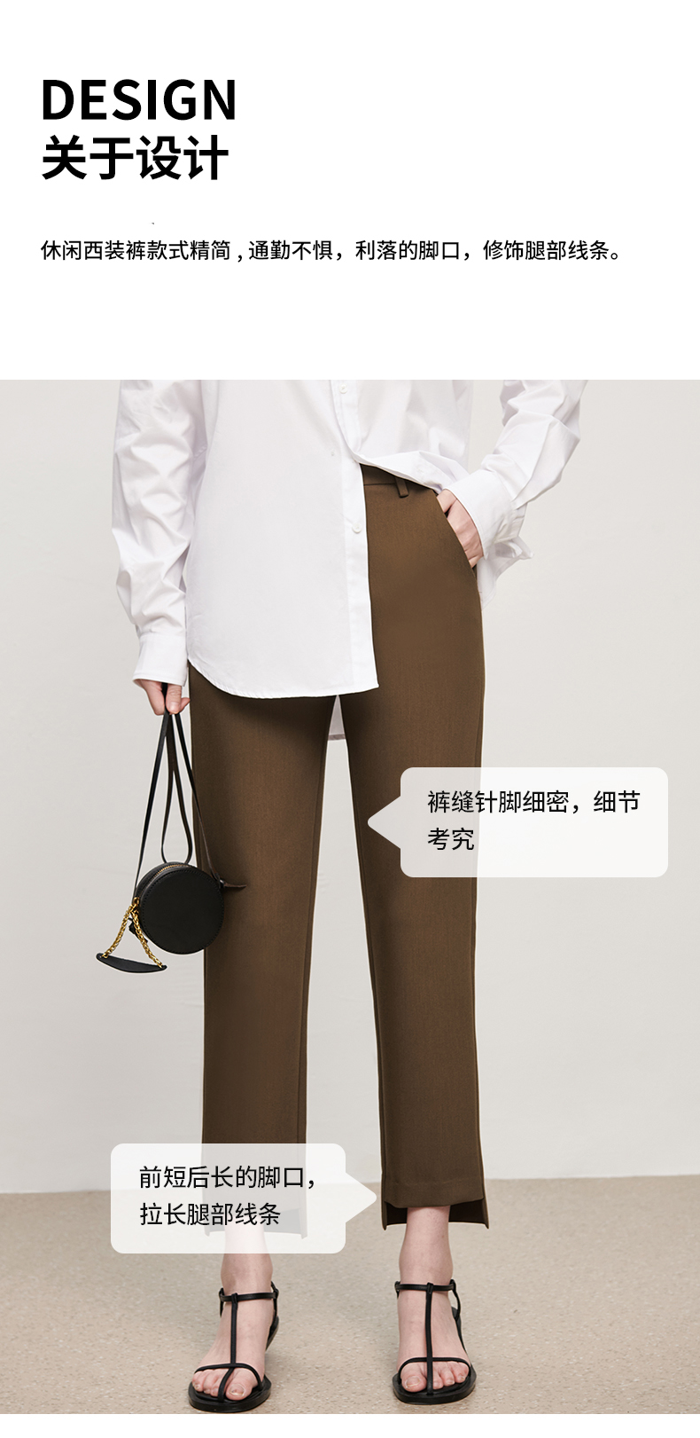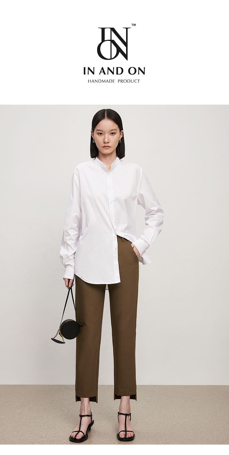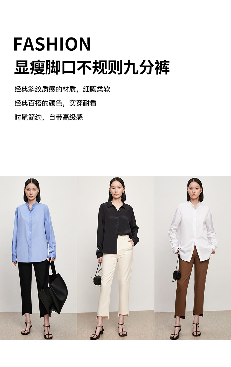IN AND ON52011裤子春秋女新款显瘦脚口百搭简约不规则九分裤