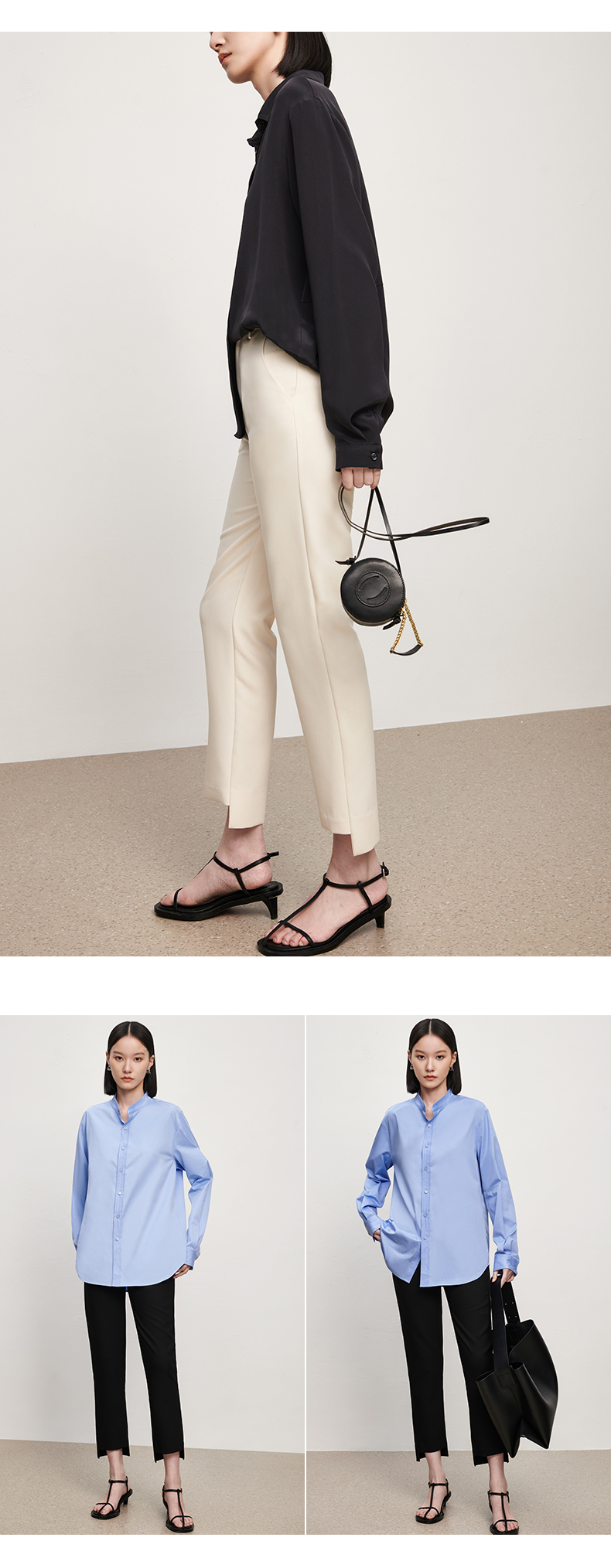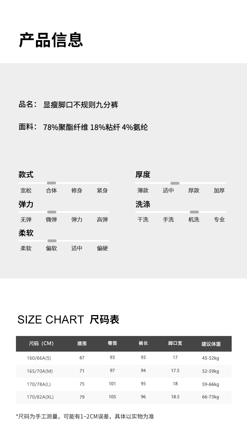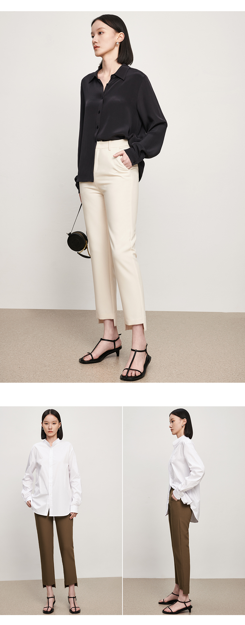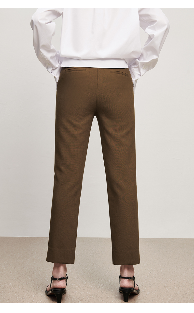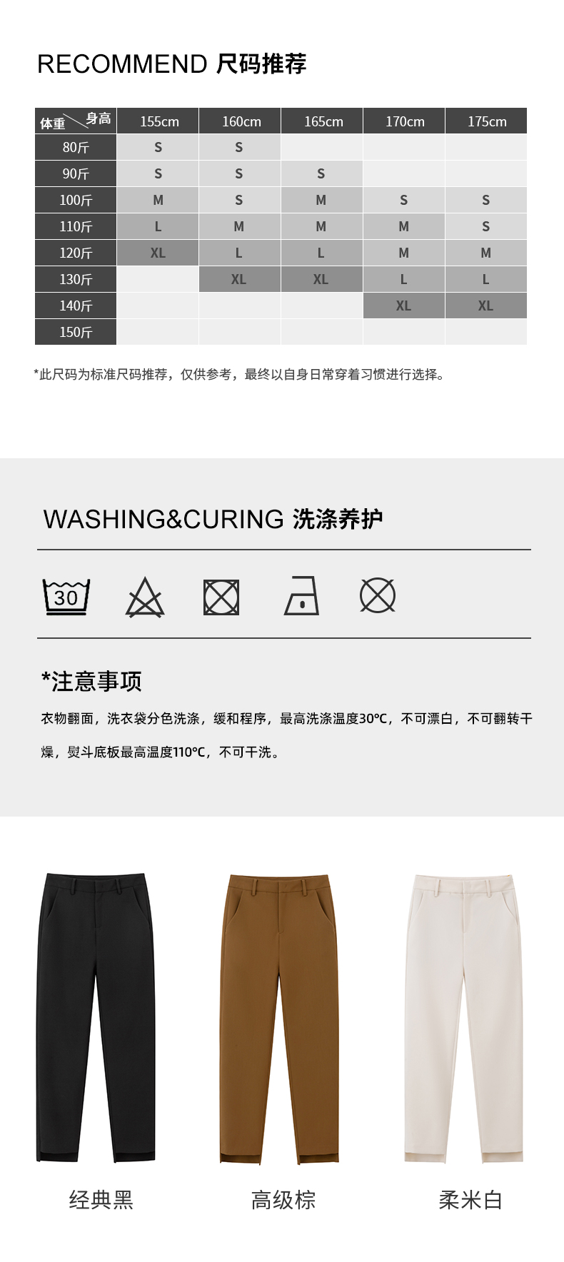 IN AND ON52011裤子春秋女新款显瘦脚口百搭简约不规则九分裤
