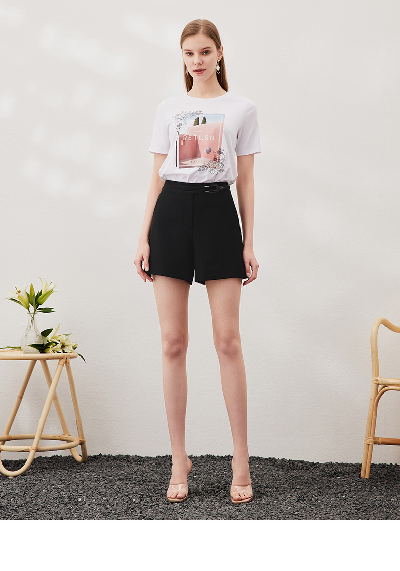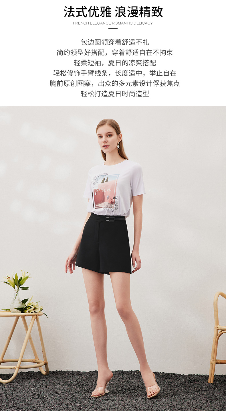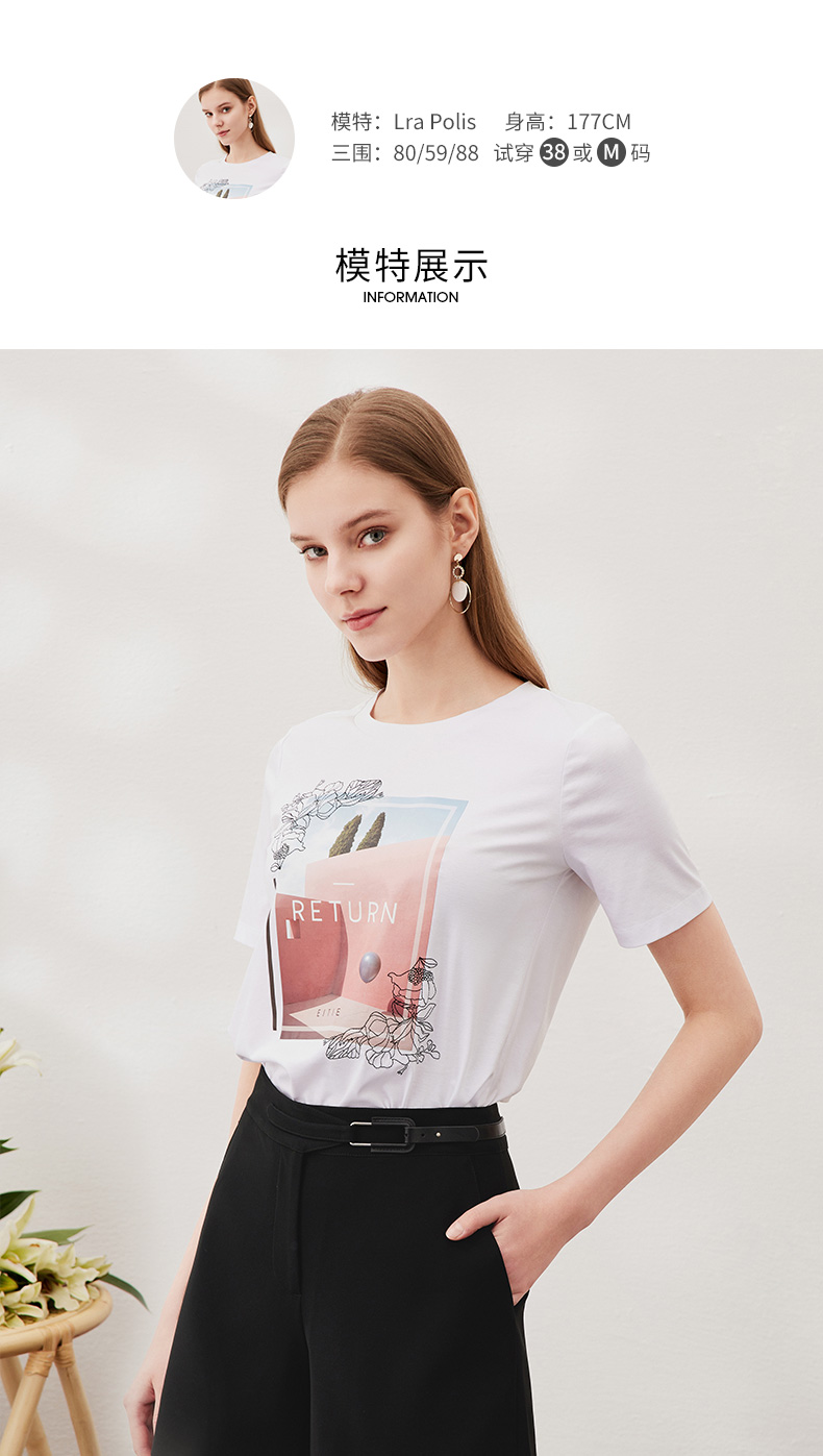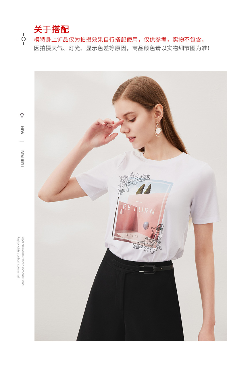 EITIE爱特爱夏季新款时尚百搭打底舒适弹力圆领印花T恤女6502202
