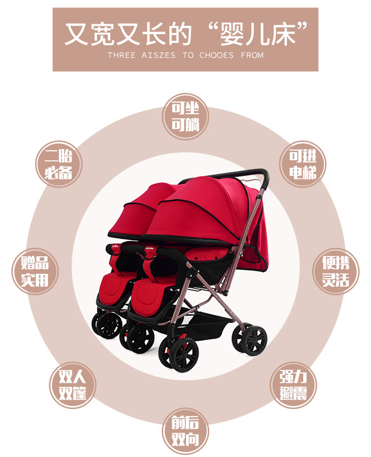【婴儿车】双胞胎婴儿车双向可坐可躺折叠轻便推车双胞胎婴儿手推车