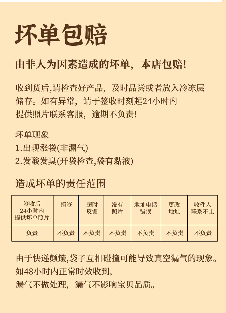 【品名】鲁明斋盐水猪肝 【规格】100g/袋 【保质期】9个月 【储存方法】常温、避光,冷藏更佳 【产地】山东 【发货地】山东 【发货快递】圆通 【不发货区域】新疆,西藏,港澳台地区不发 【补邮费地区】甘肃,青海,宁夏,内蒙古,海南+2元,北京,上海+1元 【发货时效】48小时,节假日顺延 |