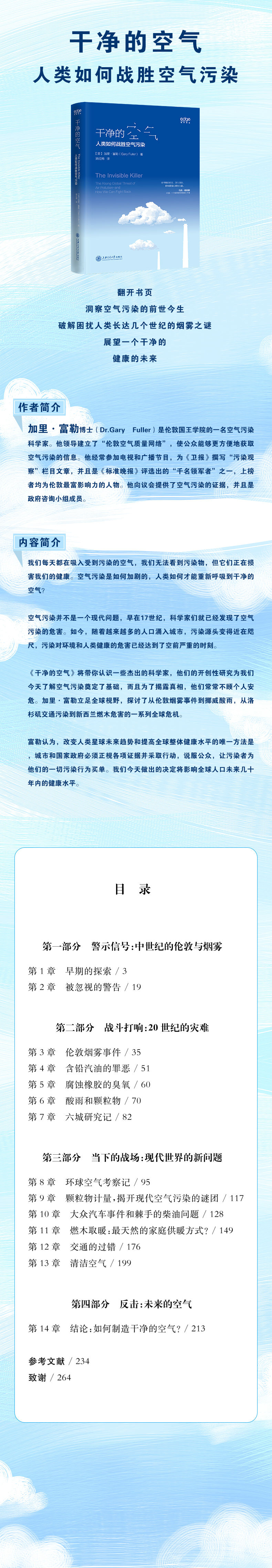 翻开书页,洞察空气污染的前世今生,破解困扰人类长达几个世纪的烟雾之谜,展望一个干净、健康的未来。