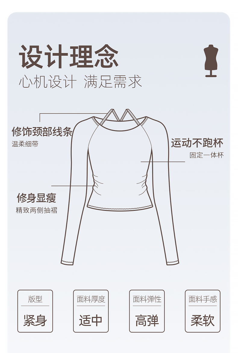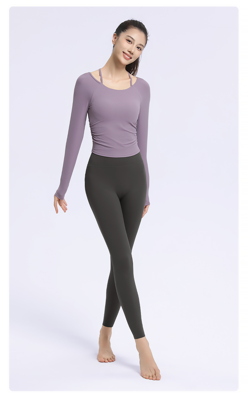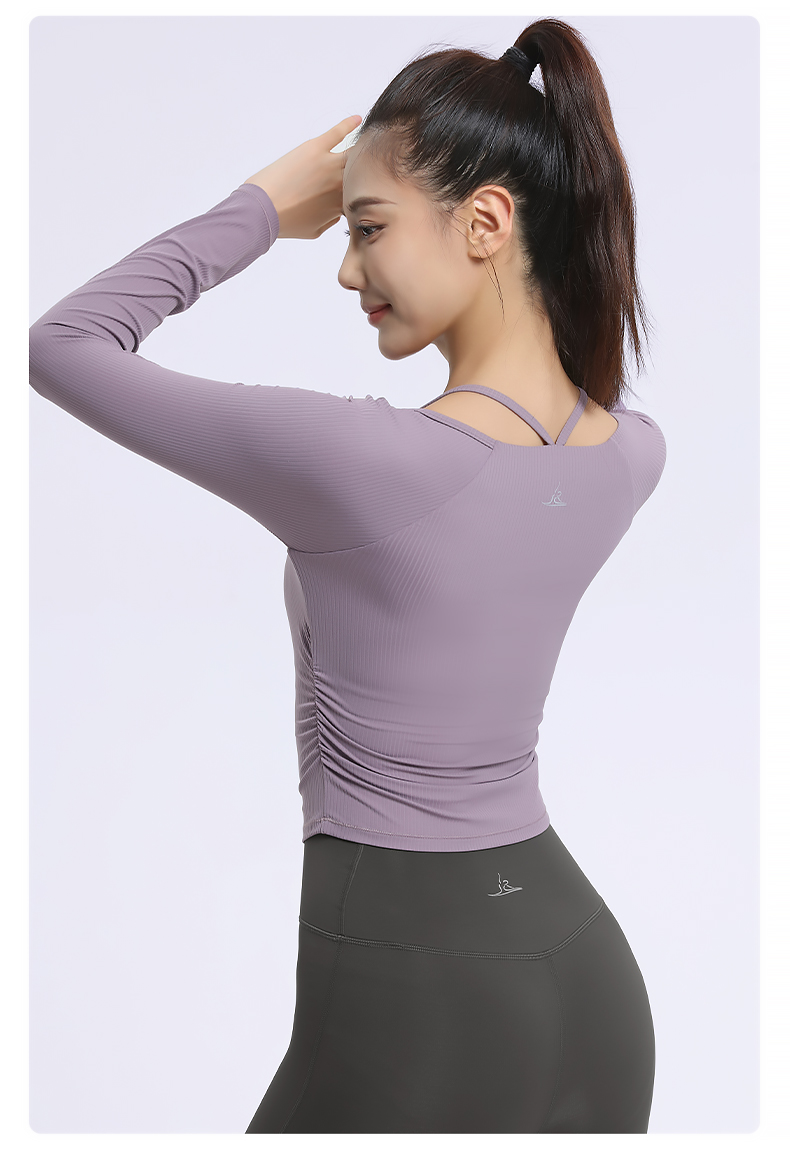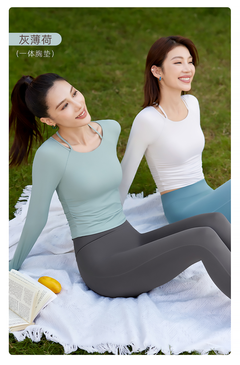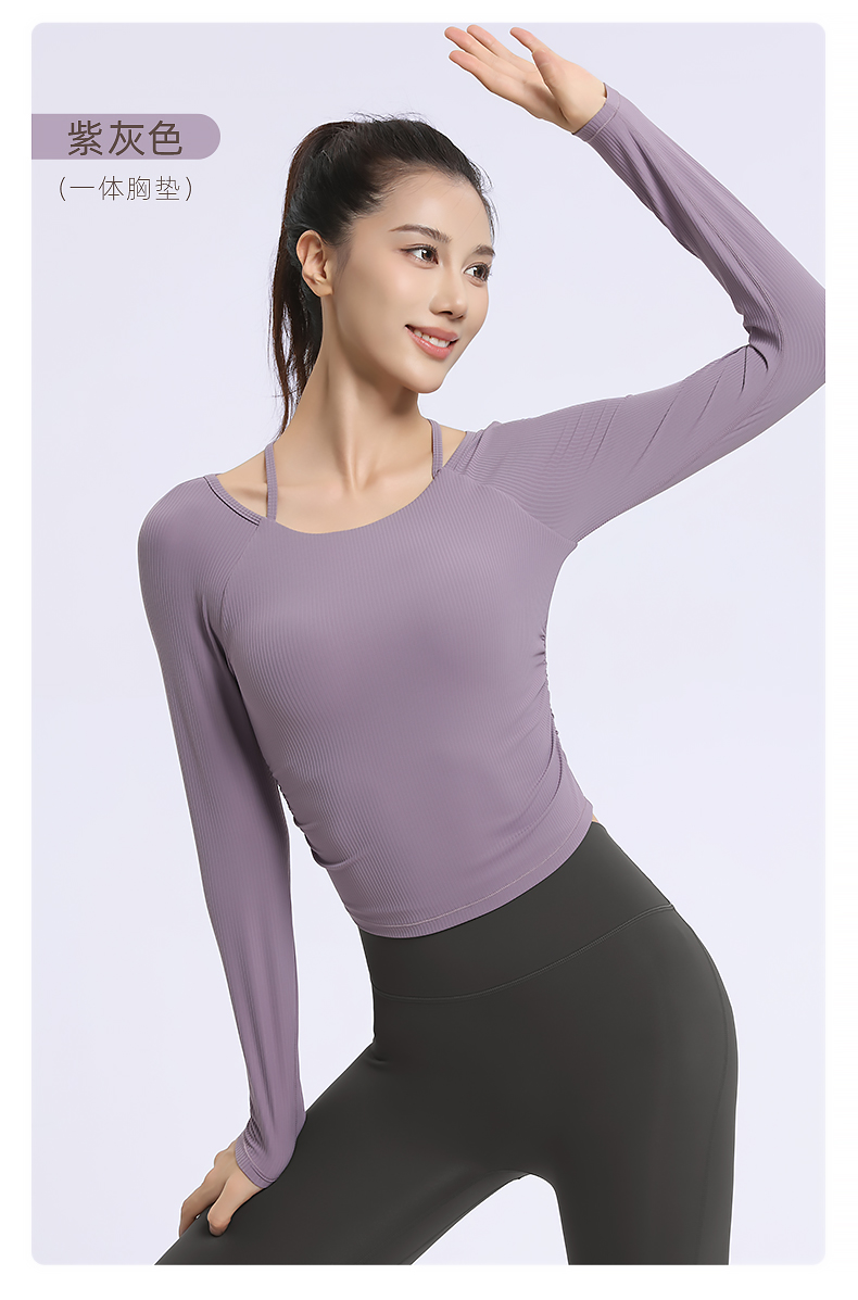梵美人 F2319 瑜伽长袖 一体胸垫 薄云螺纹