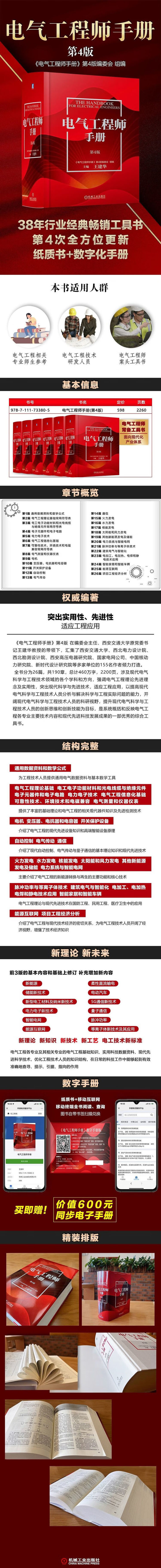《电气工程师手册》第4版紧紧围绕着国家建设现代化产业体系这一宏伟目标,坚持创新思维,立足于现代电气先进理论与工程应用相结合,着眼于未来科学与高新技术的发展方向,广泛调研,深入讨论,吸收国内国际科学技术发展的新成果。其内容主要有:通用数据资料和数学公式,该部分为从事电气工程领域工作的工程技术人员提供了通用电气数据资料与基本数学工具;电气工程理论基础,电工电子功能材料和光电线缆与绝缘元件,电子元器件和电子电路,电力电子技术,电气工程信息化基础,可靠性技术、环境技术和电磁兼容,电气测量和仪器仪表,该部分为从事电气工程领域工作的工程技术人员提供了丰富的基础理论和电气工程的相关现代器件知识及先进检测技术;电机,变压器、电抗器和电容器,开关保护设备,该部分介绍了电气工程的现代先进设备知识和高端智能设备原理;自动控制,电气传动,通信,该部分介绍了现代自动控制、电气传动与量子通信的基本理论知识和现代先进技术;火力发电,水力发电,核能发电,太阳能和风力发电,其他新能源发电及储能,电力系统与智能电网,该部分主要介绍了电气工程的新能源转换与再生的主要功能和核心技术;脉冲功率与等离子体技术,建筑电气与智能化,电加工、电加热、电焊和静电技术应用,智能家居和智能车辆,该部分介绍了电气工程理论与现代先进技术在国防工程、民用工程、医疗卫生中的广泛应用;能源互联网,项目工程经济分析,该部分为从事电气工程领域工作的工程技术人员介绍了电气工程与现代技术经济的密切关系,为电气工程技术人员开阔了经济视野,增强了技术经济知识。我们的时代是知识爆炸的时代,世界科学技术日新月异,电气工程新理论、新科技不断涌现