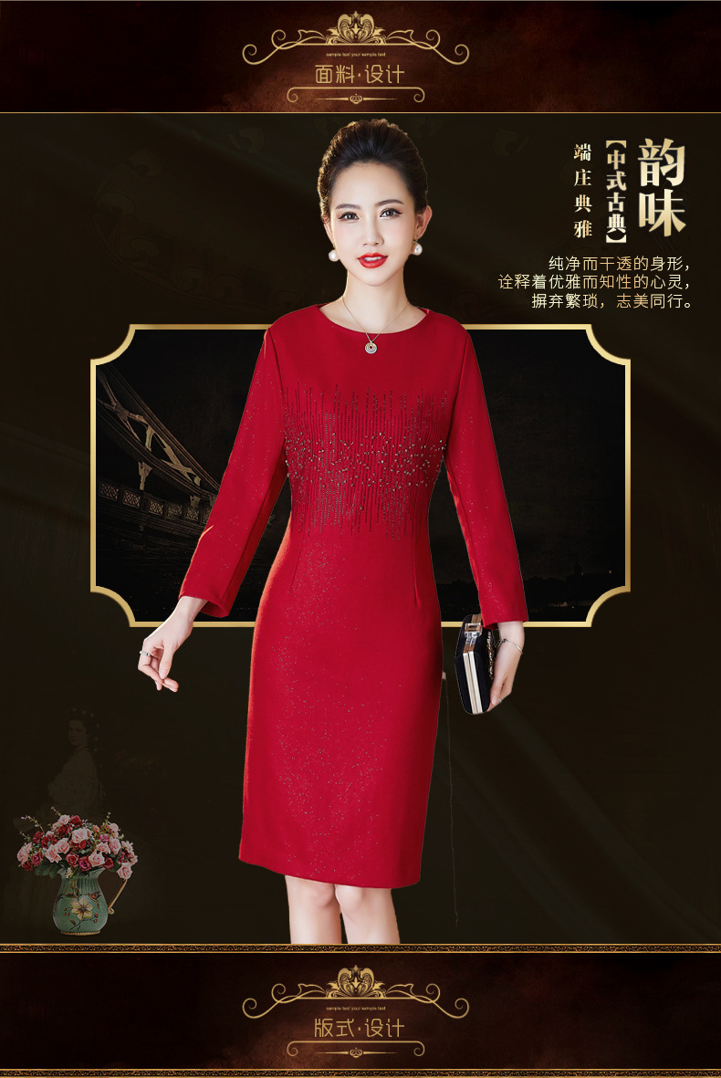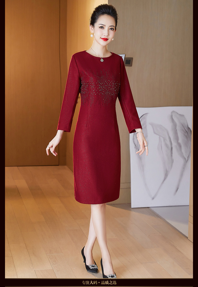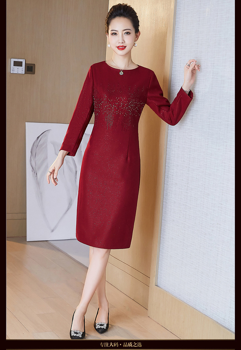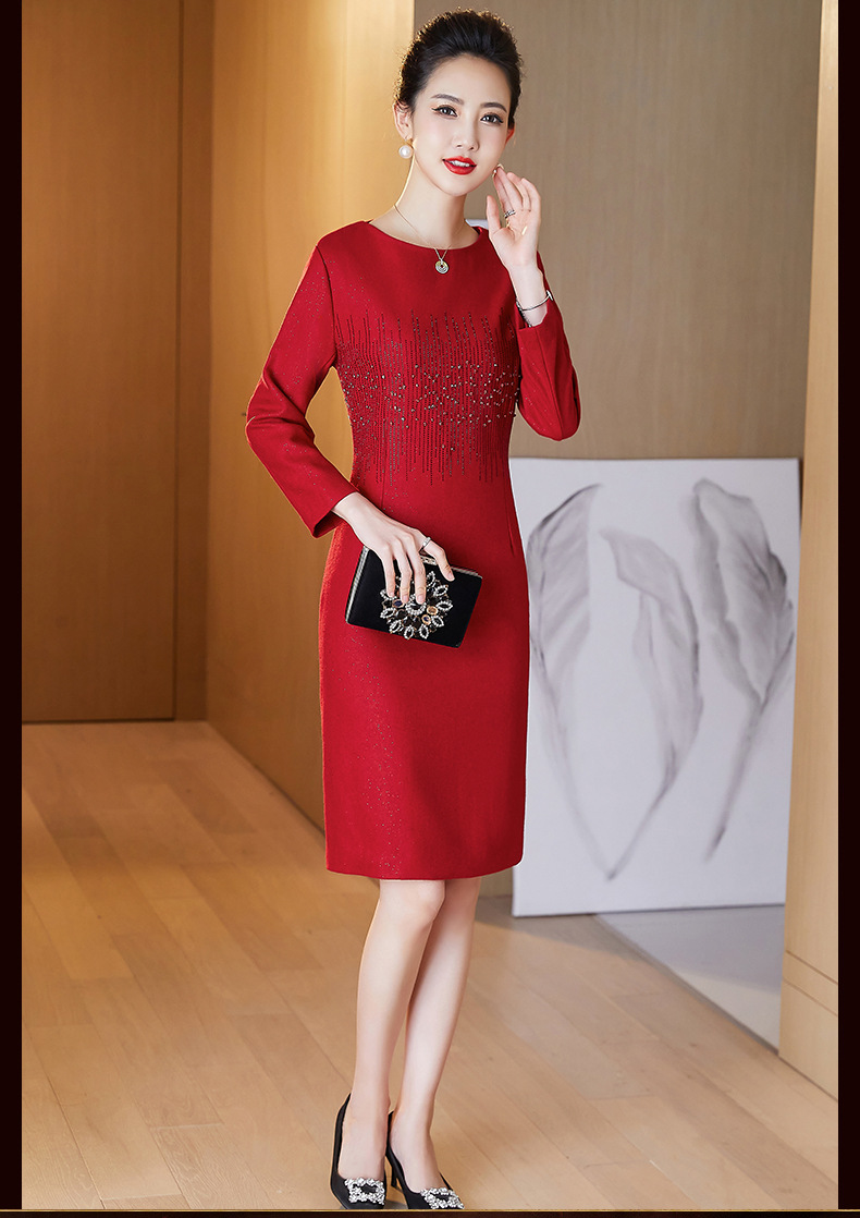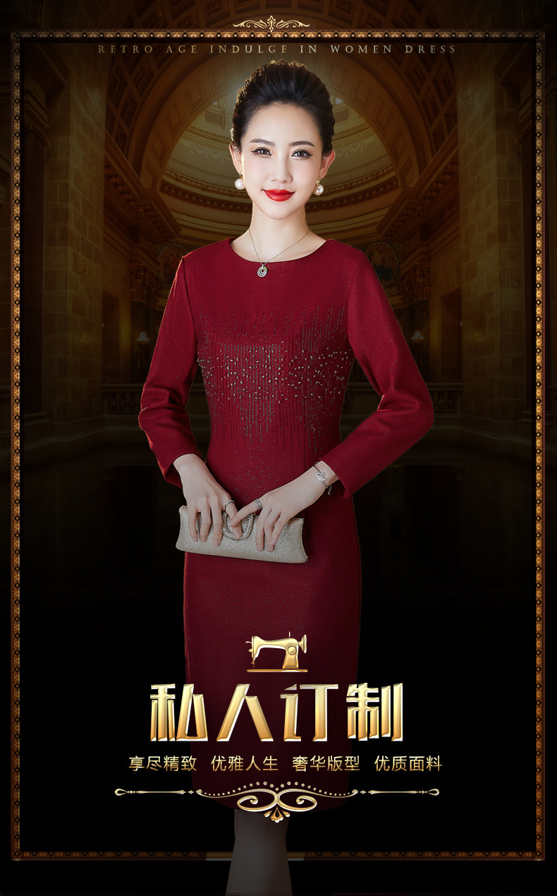 JC-6306婚礼礼服重工钉珠修身加厚毛呢连衣裙婆婆婚宴高贵洋气裙子