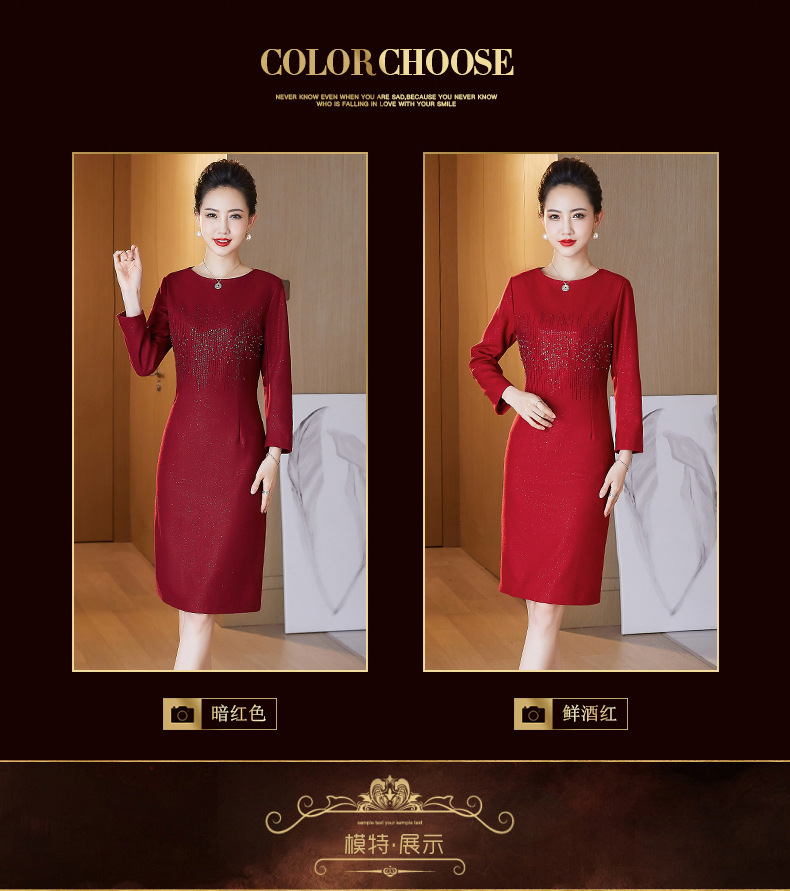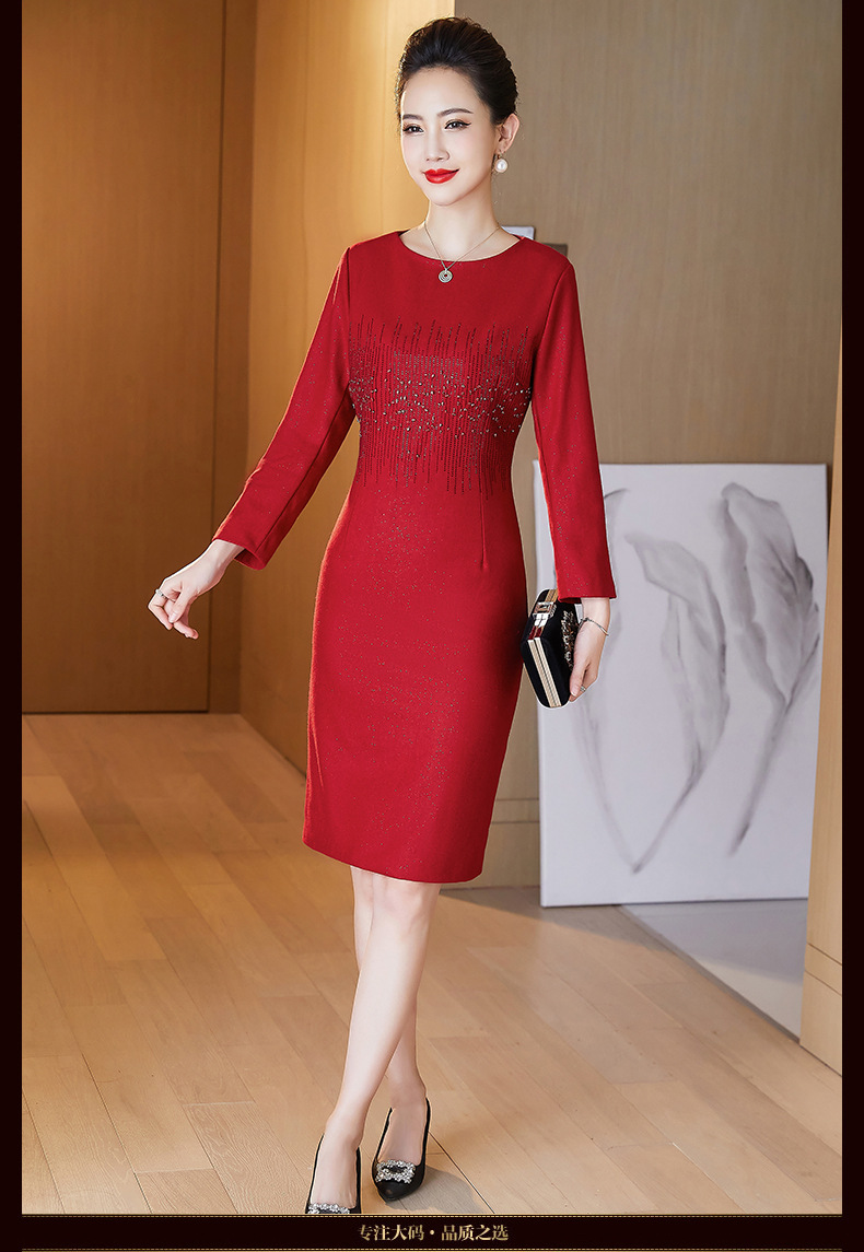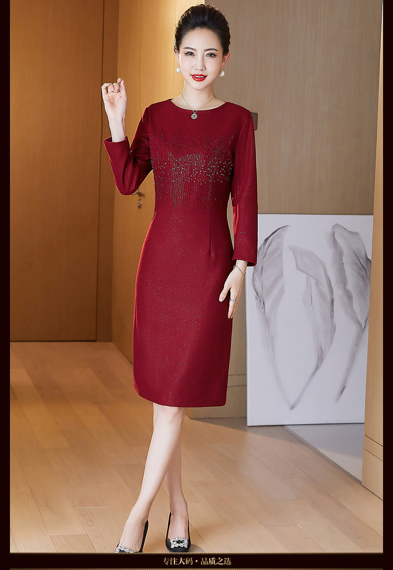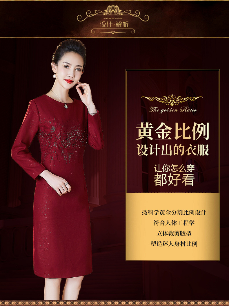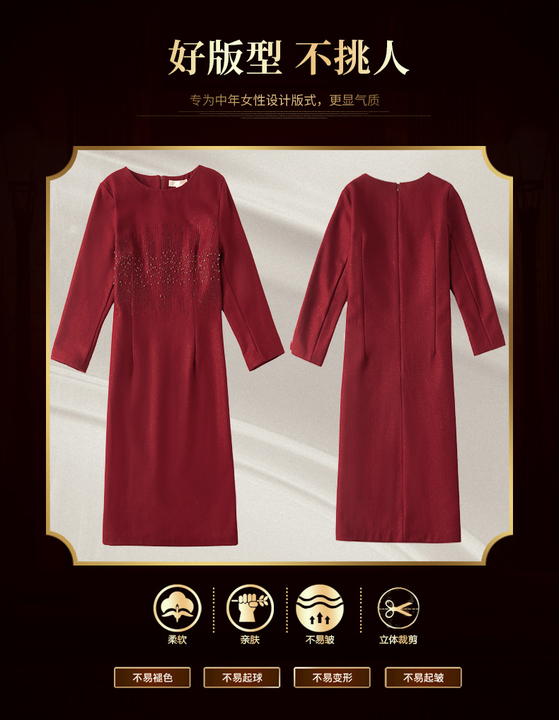 JC-6306婚礼礼服重工钉珠修身加厚毛呢连衣裙婆婆婚宴高贵洋气裙子