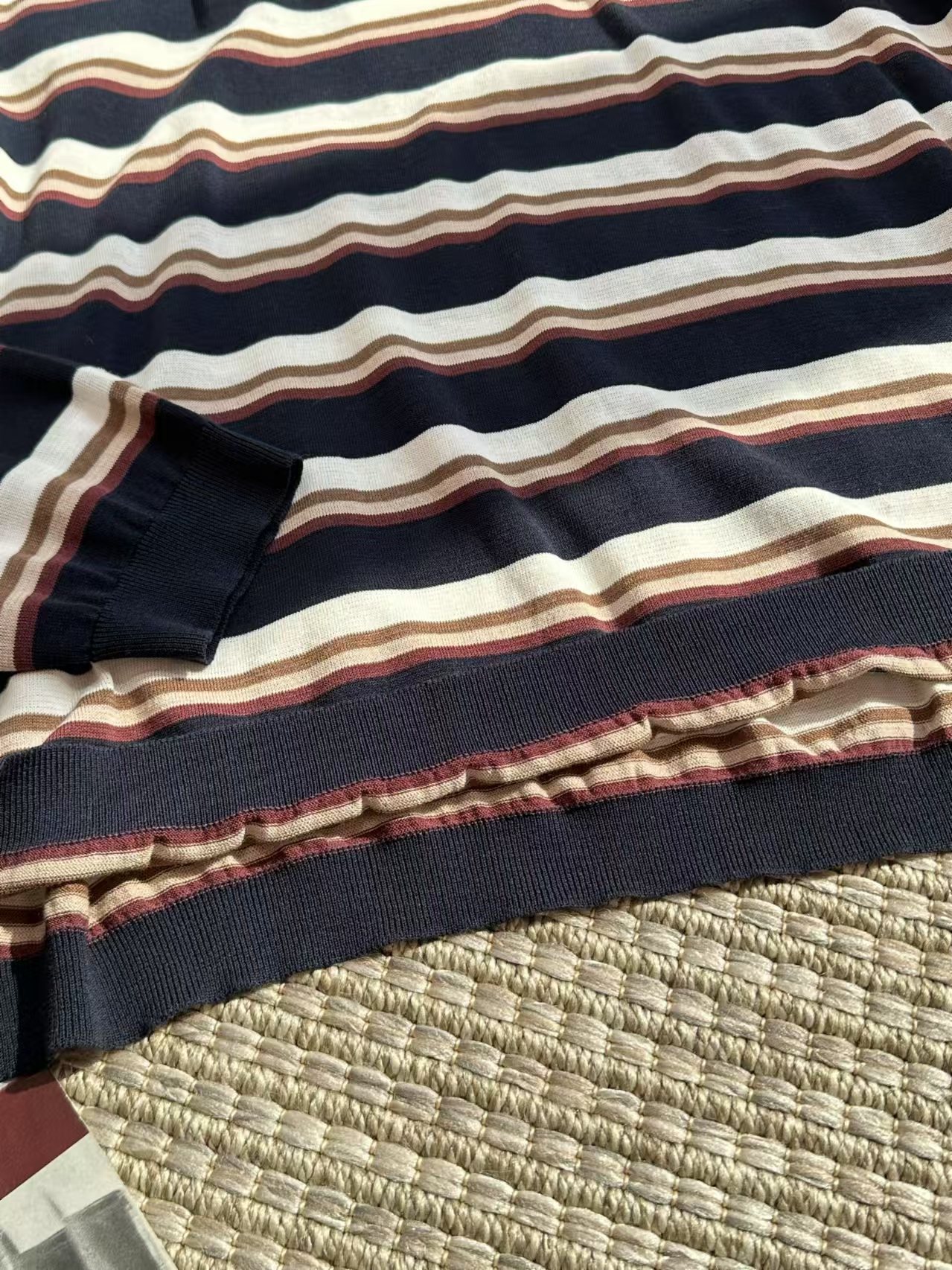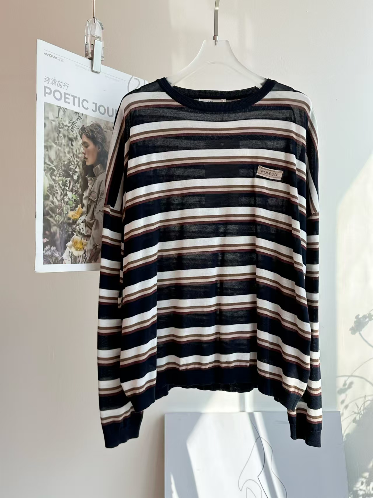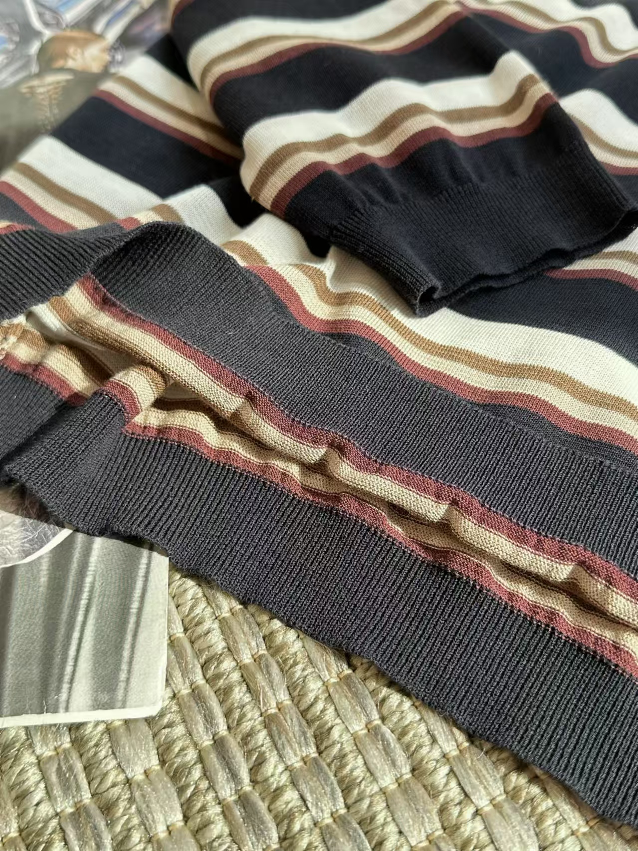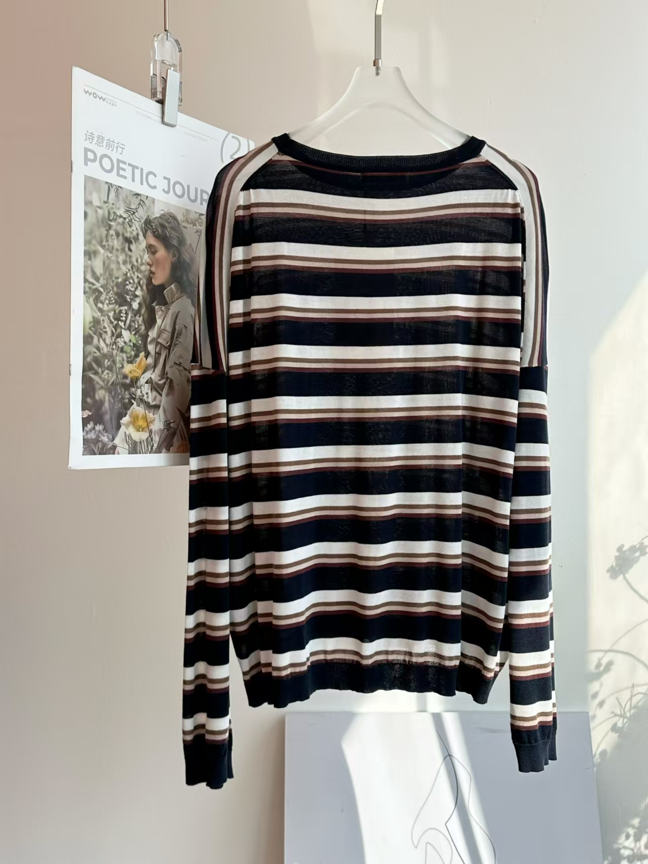 顺丰包邮63610洛诗琳超细绵羊毛醋酸混纺条纹针织衫685