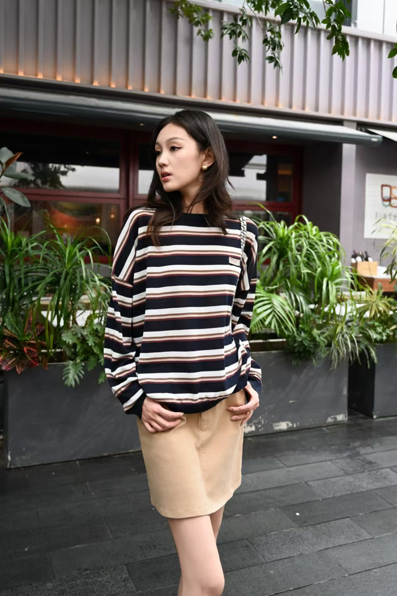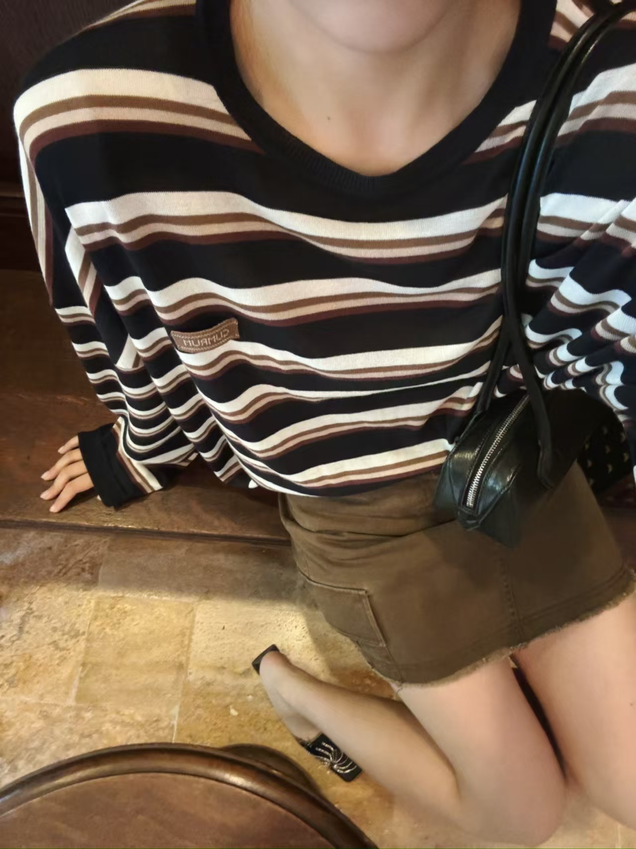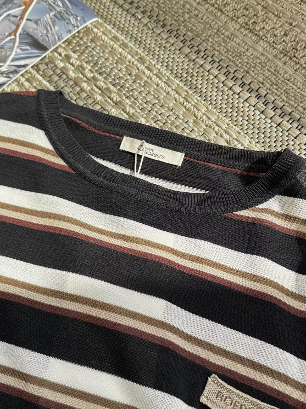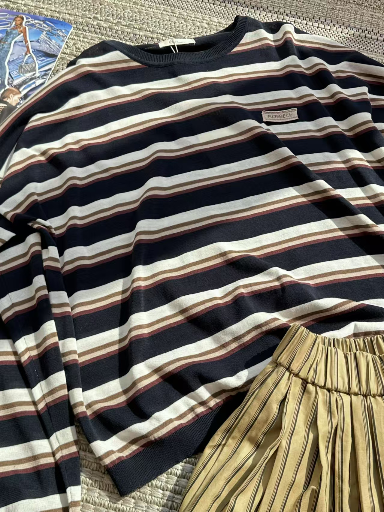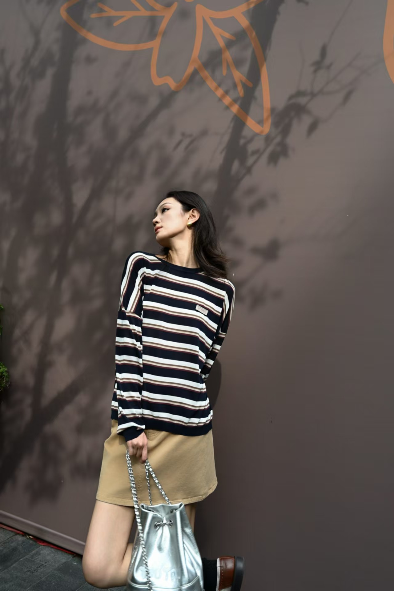 顺丰包邮63610洛诗琳超细绵羊毛醋酸混纺条纹针织衫685