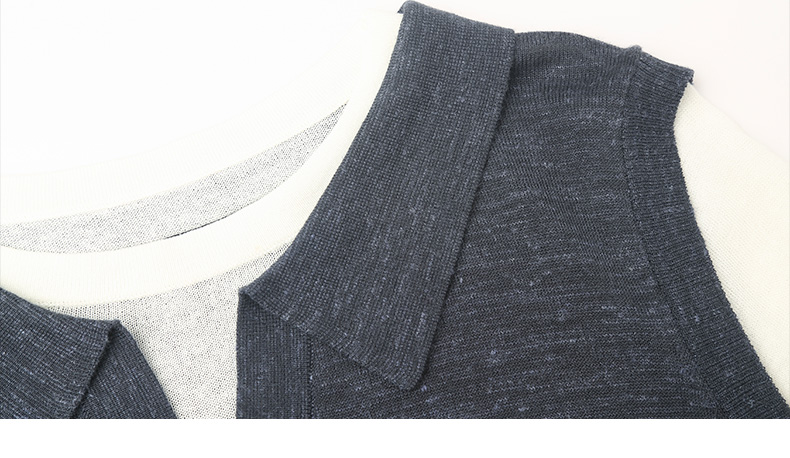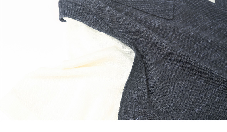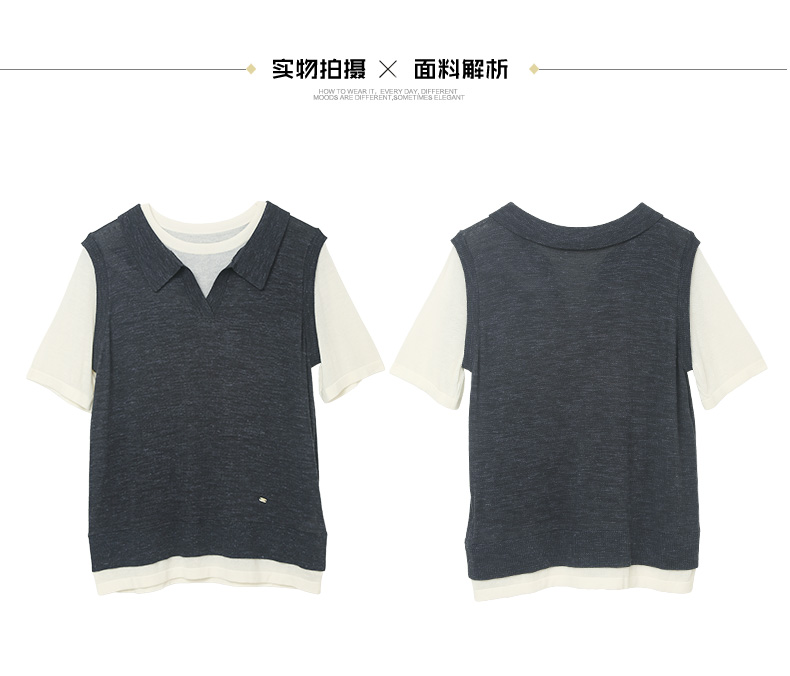 撞色假两件设计|藏青 polo 领针织 T 恤,麻感透气宽松显瘦短袖
