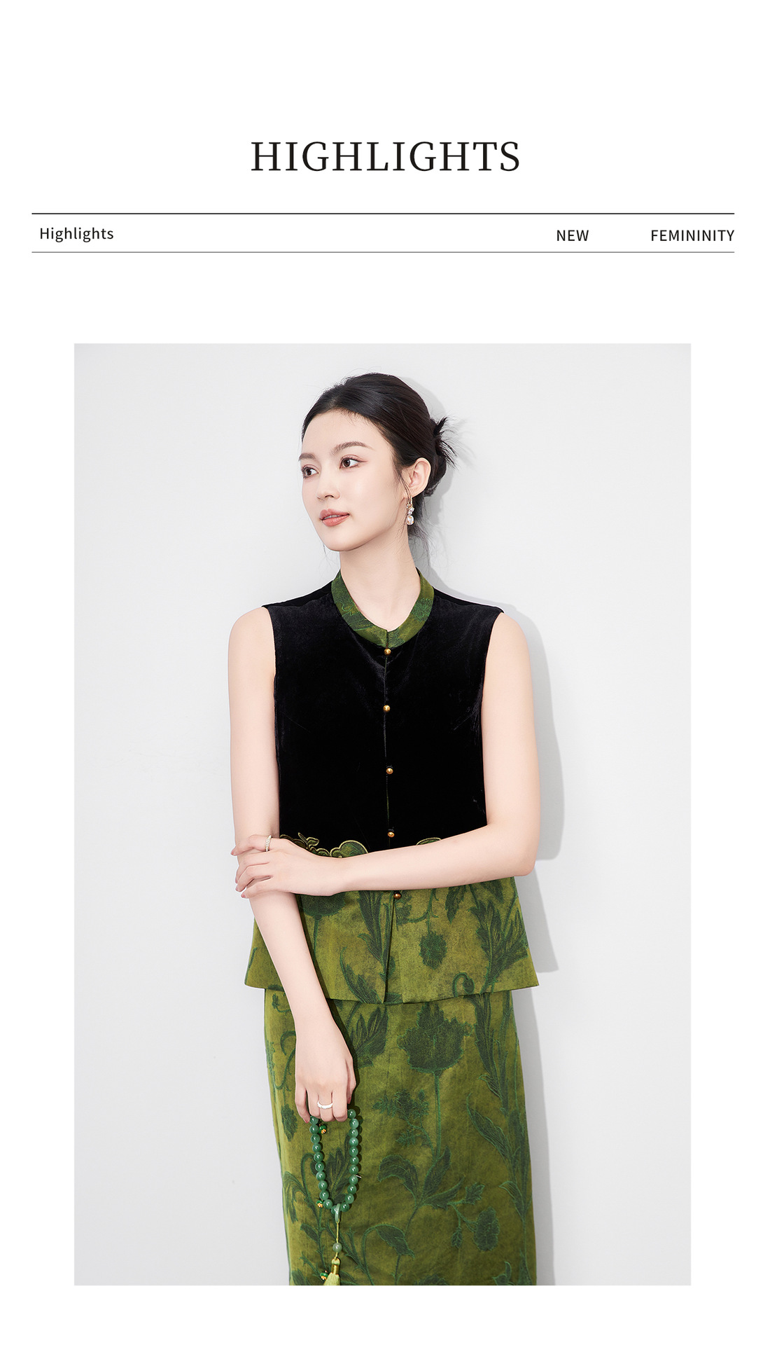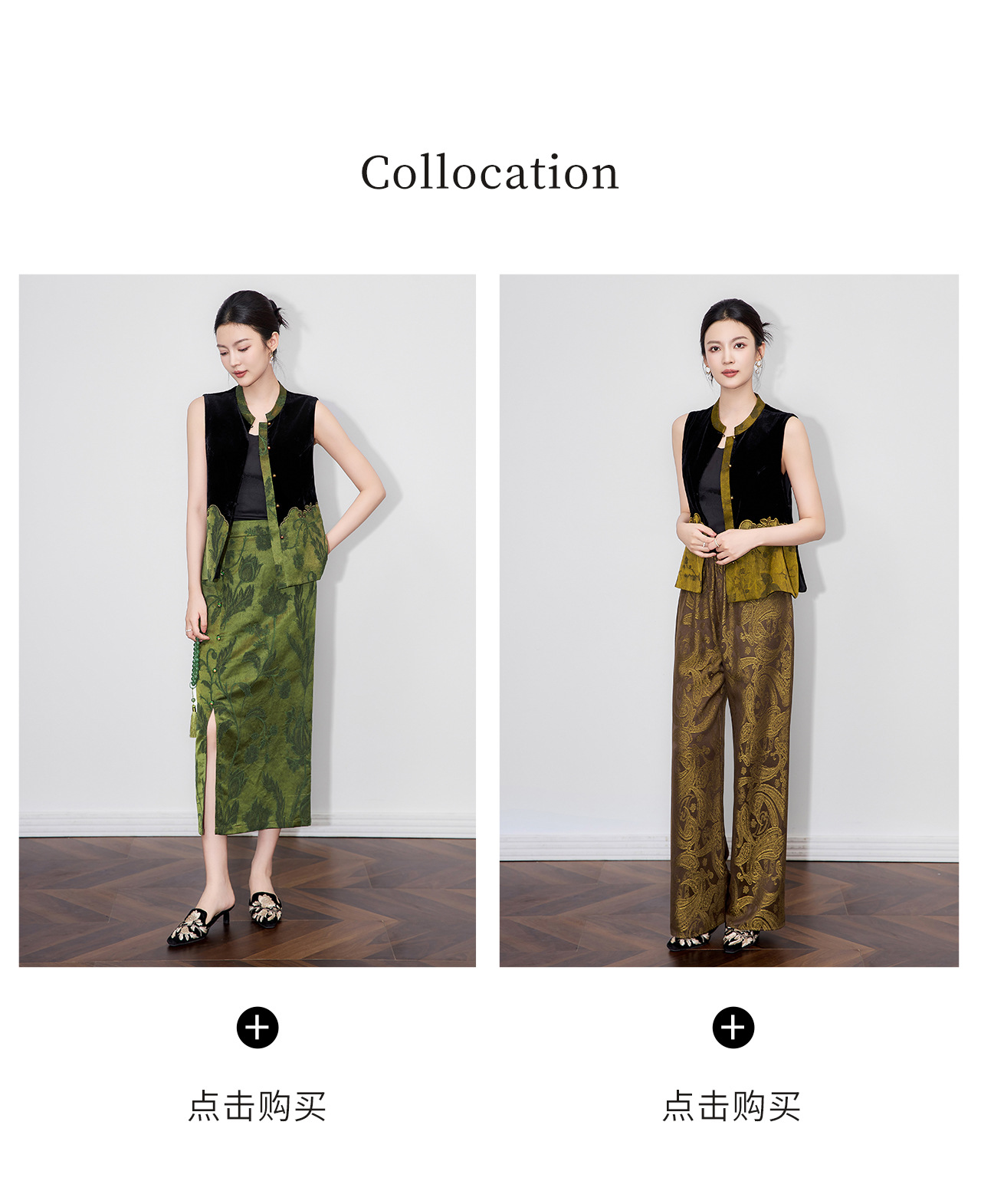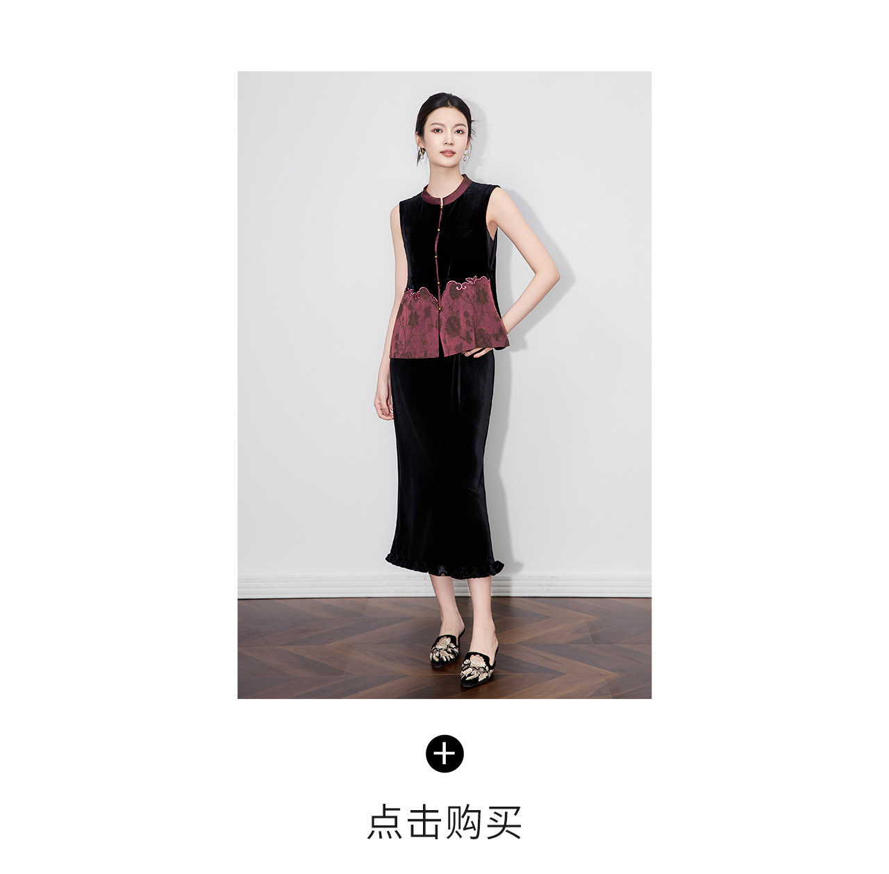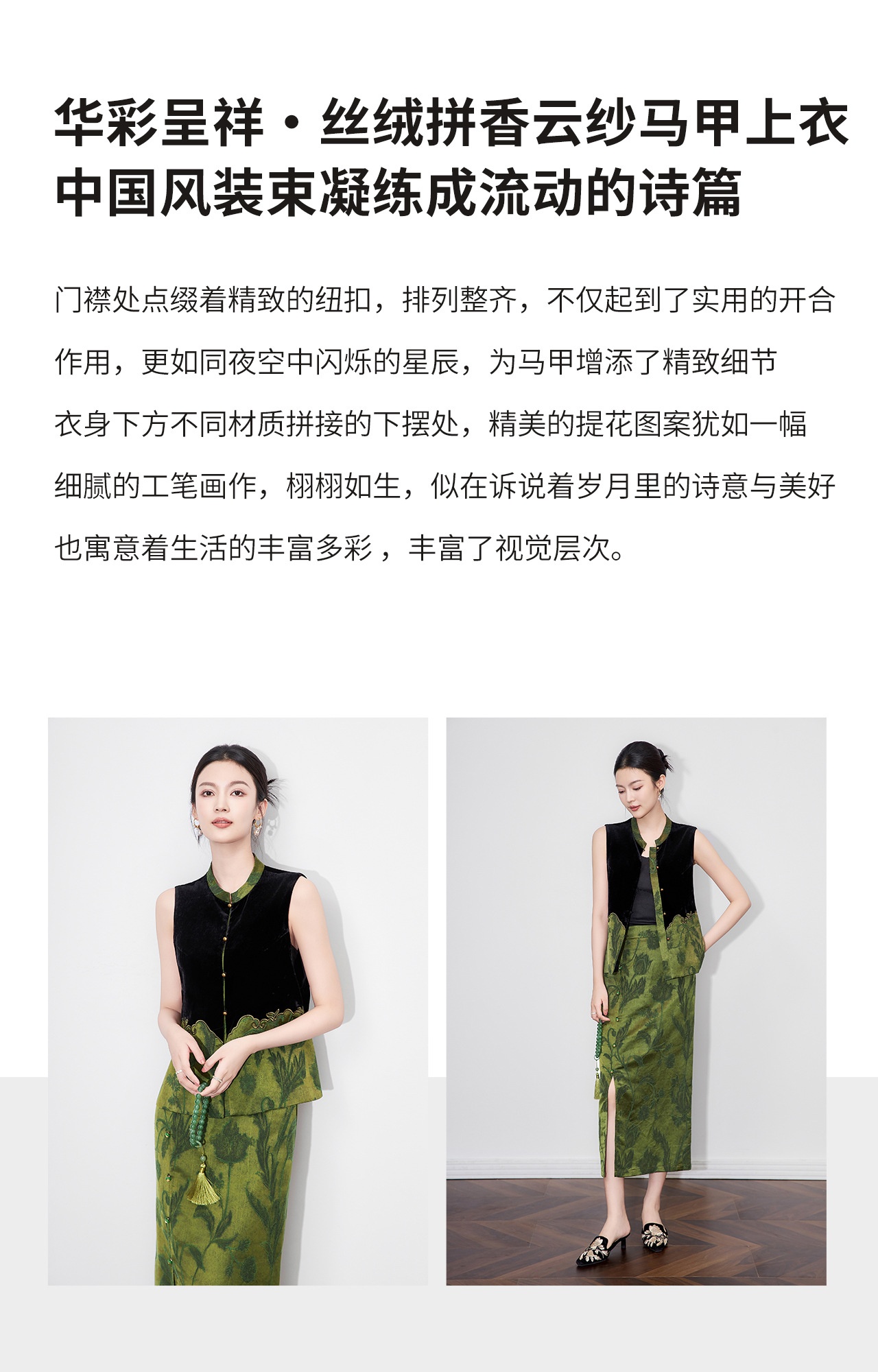 「高货wl」全新升级【铂金会员441/天猫599/差价158】(03632)洛诗琳新中式香云纱提花背心2025秋季国风复古拼丝绒马甲