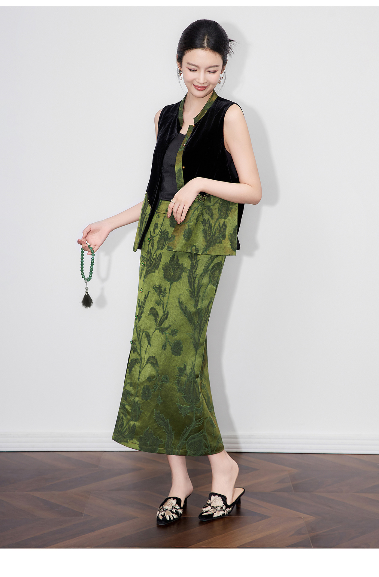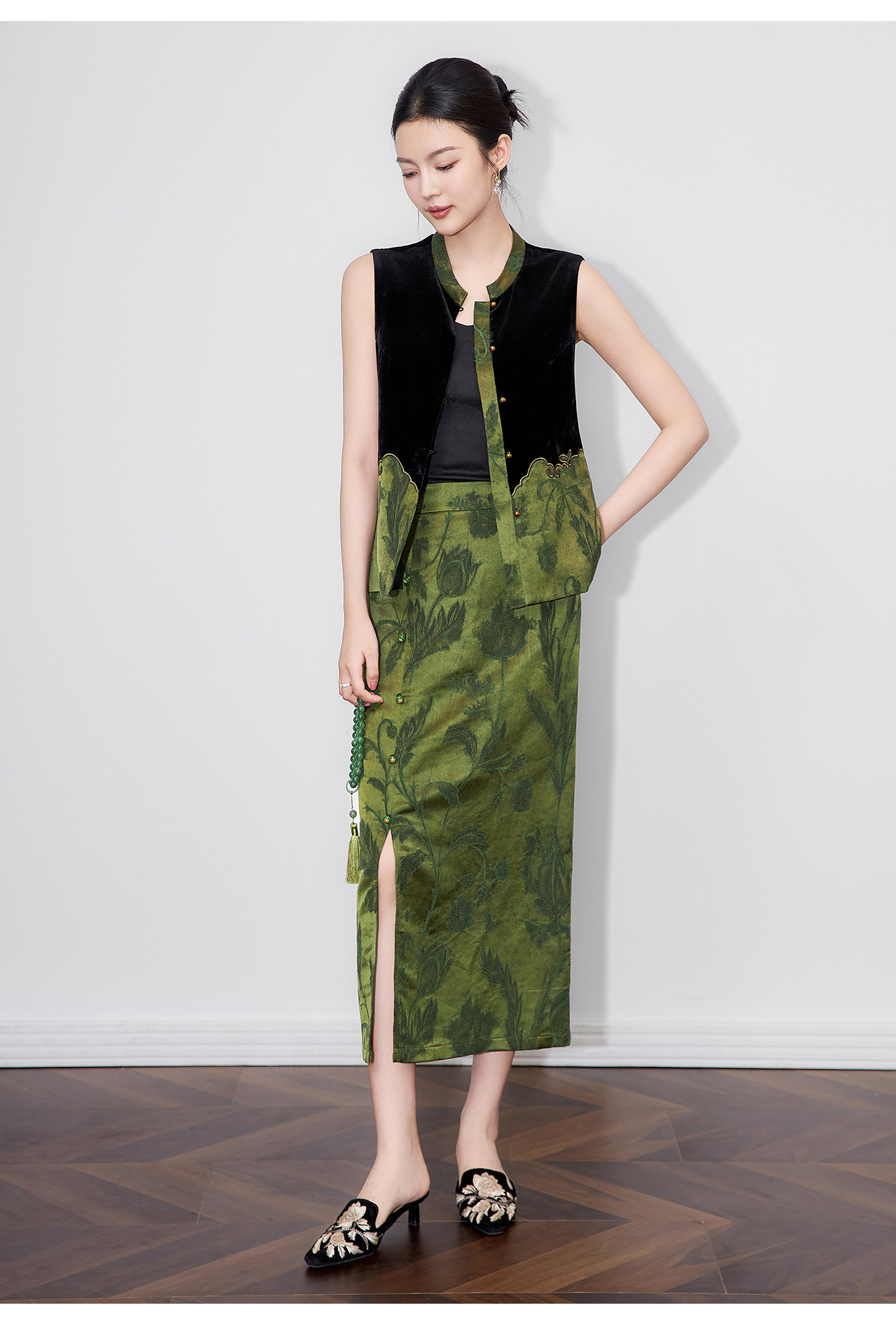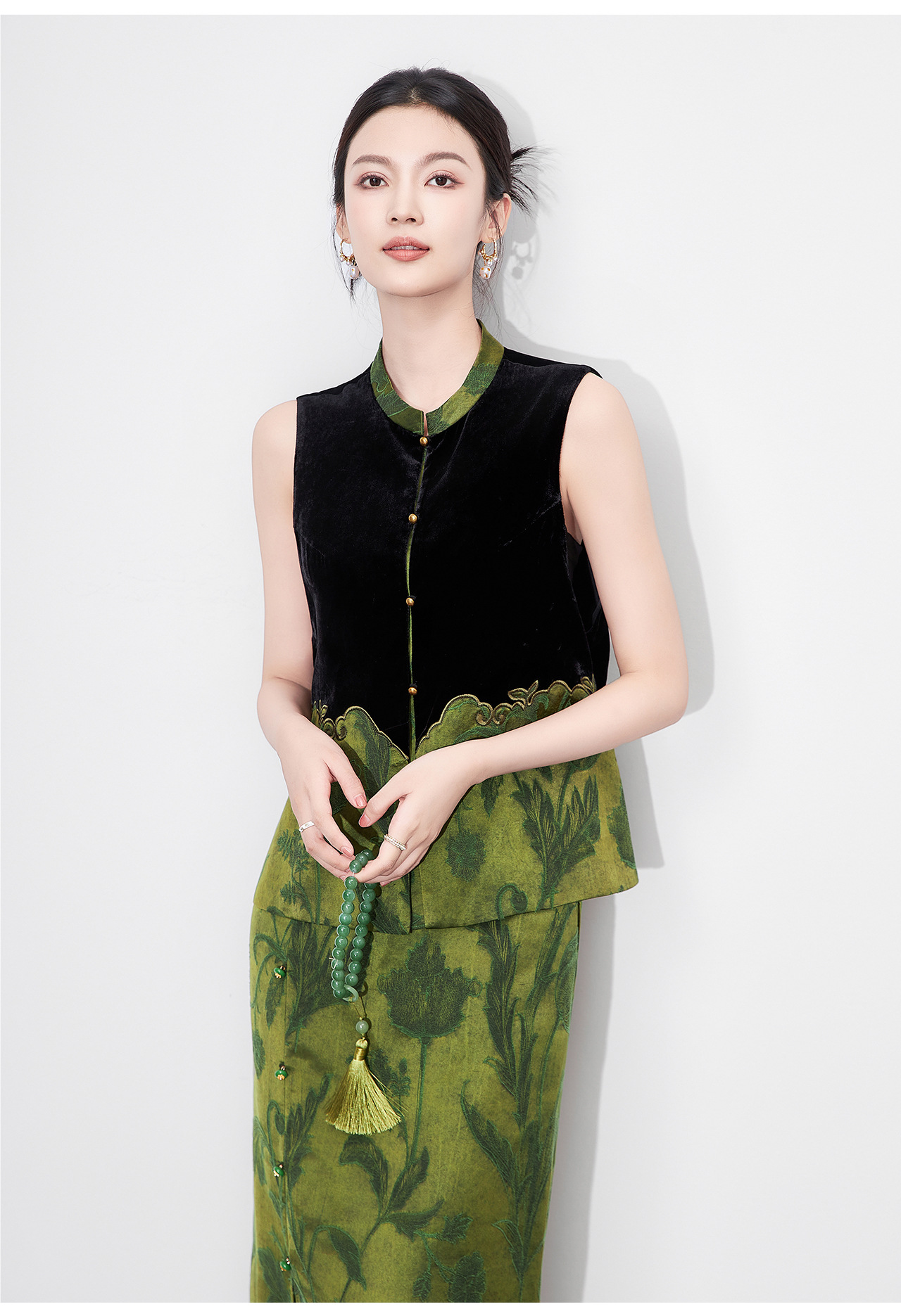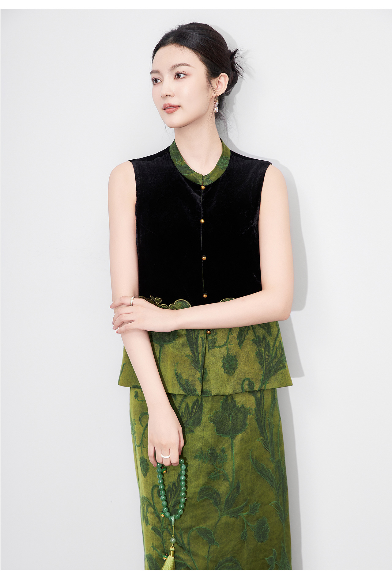 「高货wl」全新升级【铂金会员441/天猫599/差价158】(03632)洛诗琳新中式香云纱提花背心2025秋季国风复古拼丝绒马甲