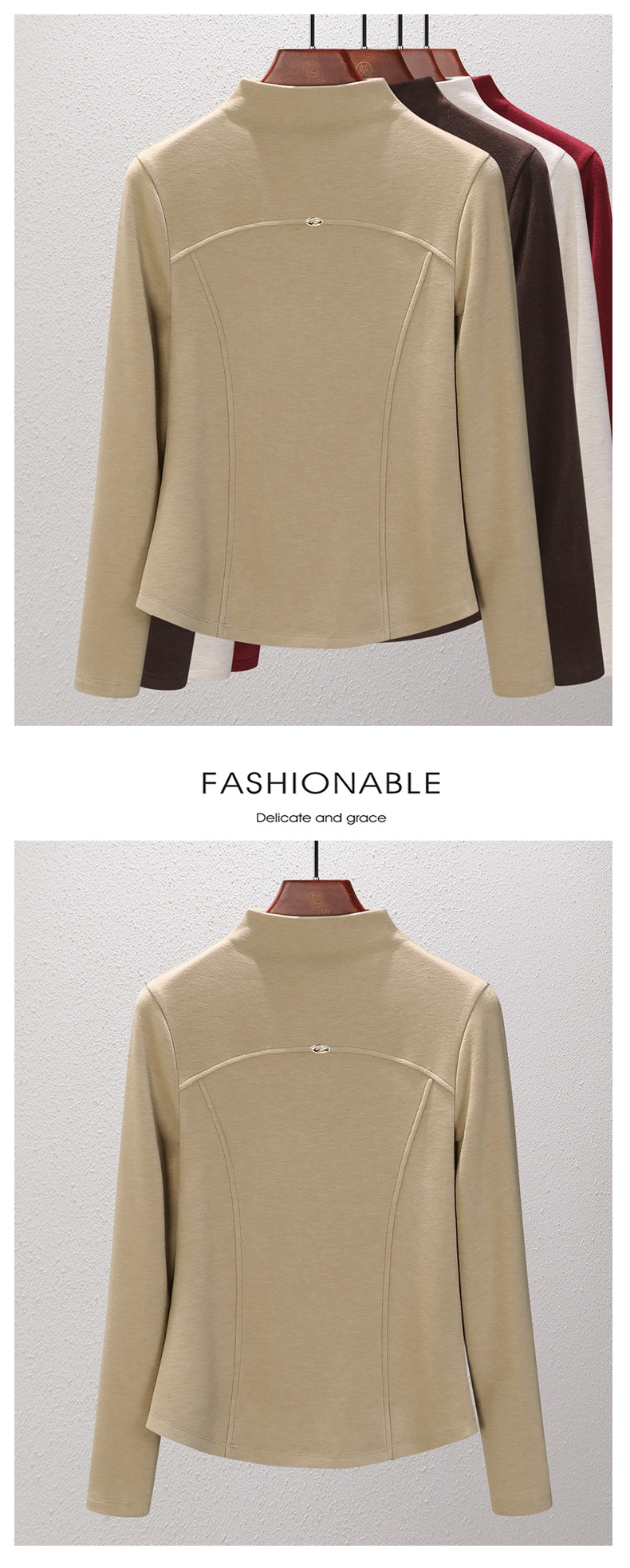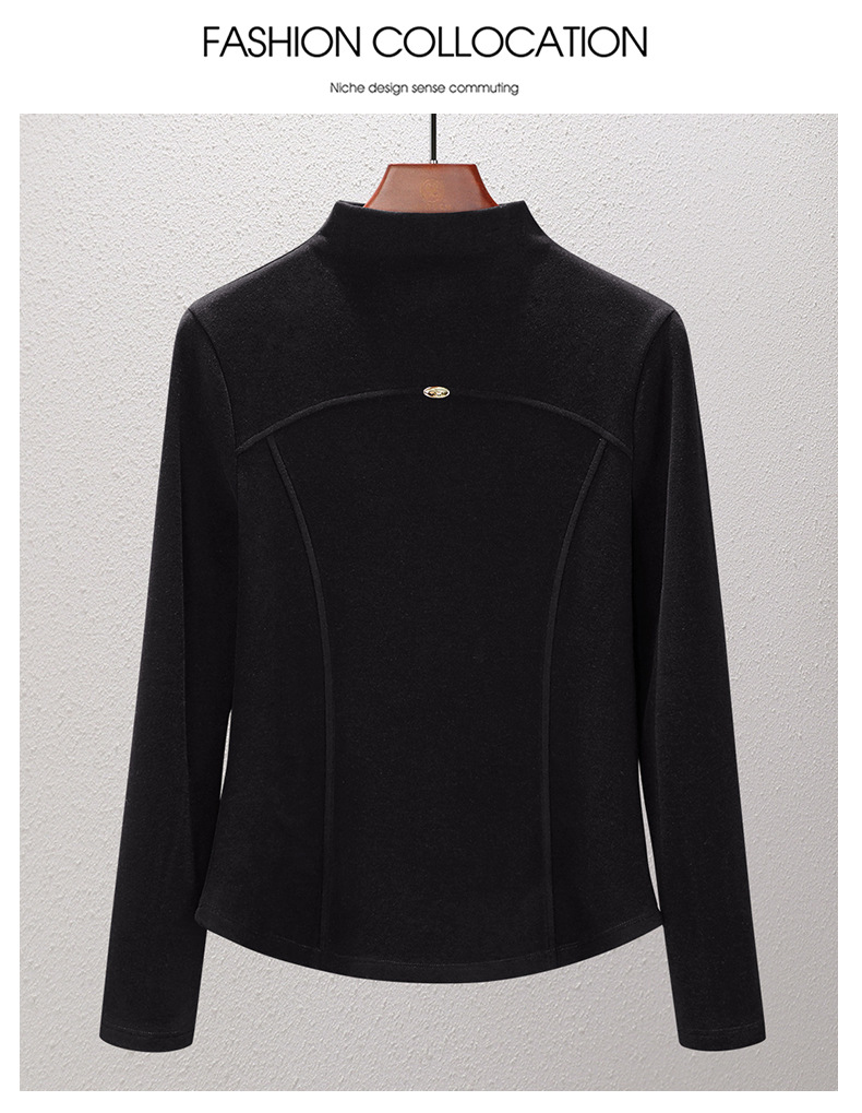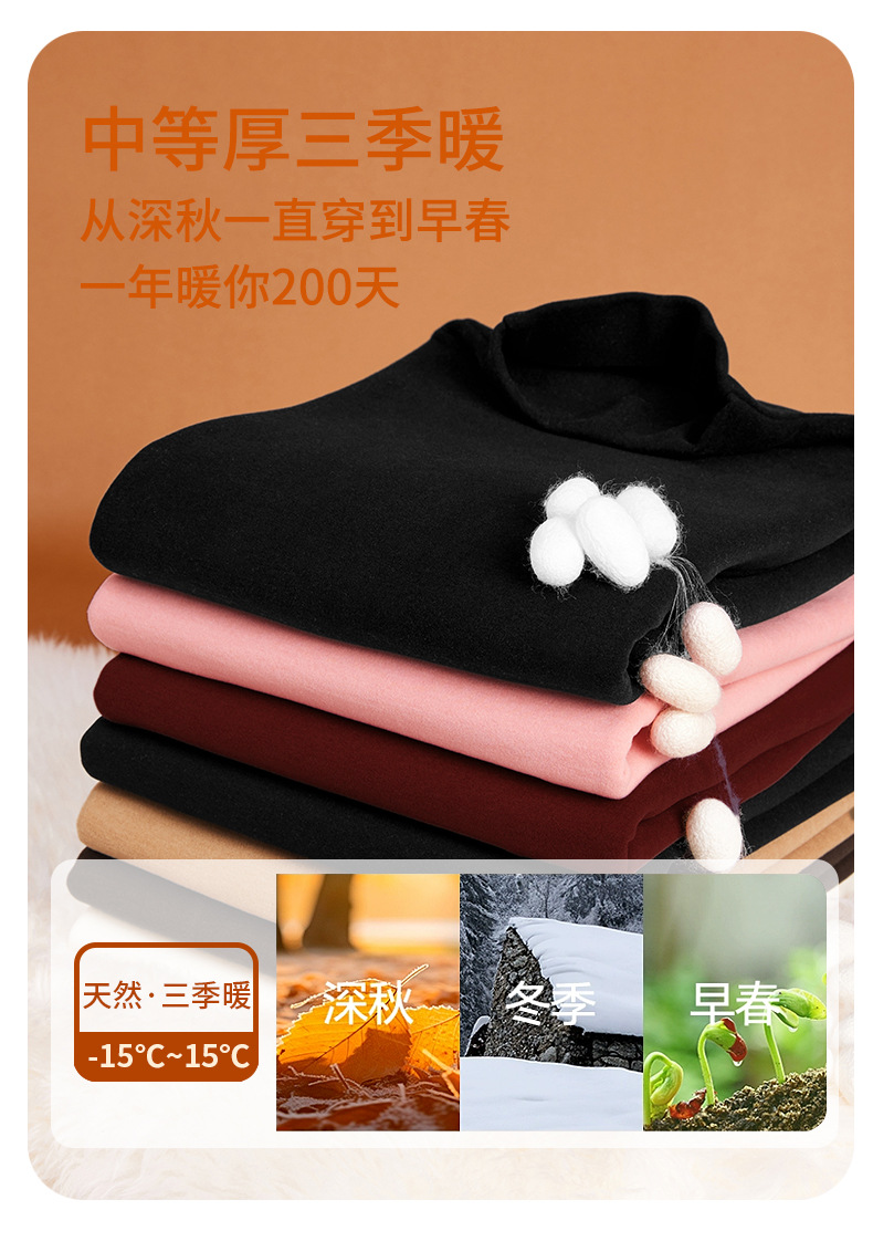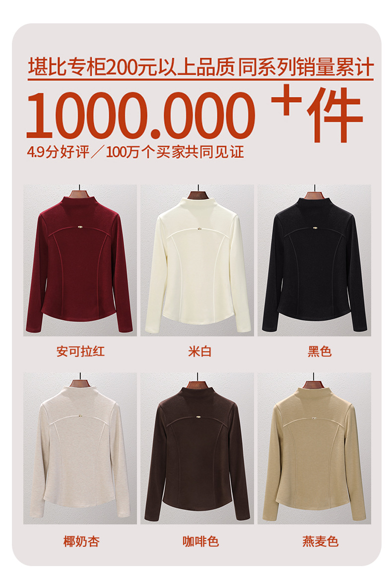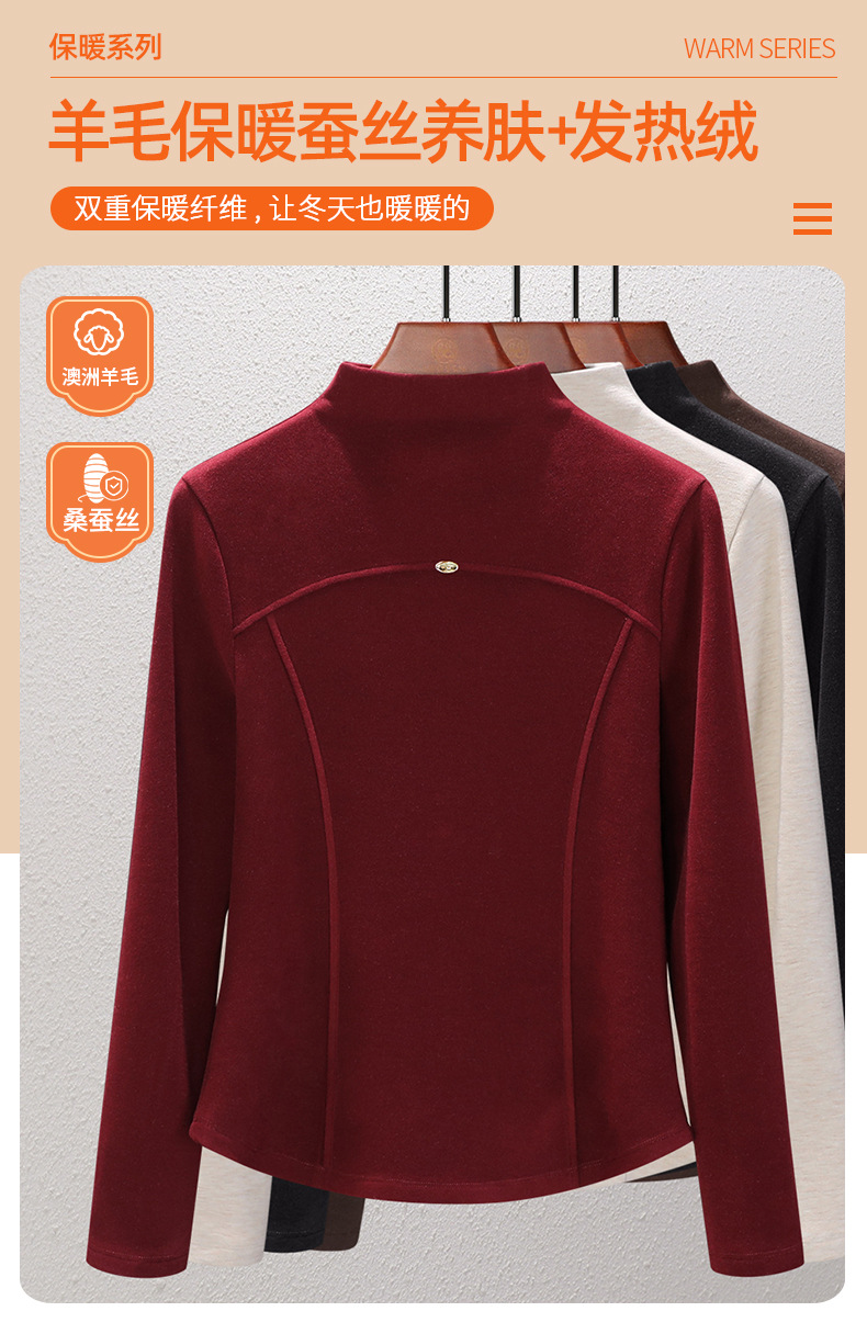 「自j」全新升级【铂金会员119/天猫159/差价40】(02307)洛诗琳桑蚕丝羊毛半高领打底衫2025秋冬暖绒中领保暖上衣女