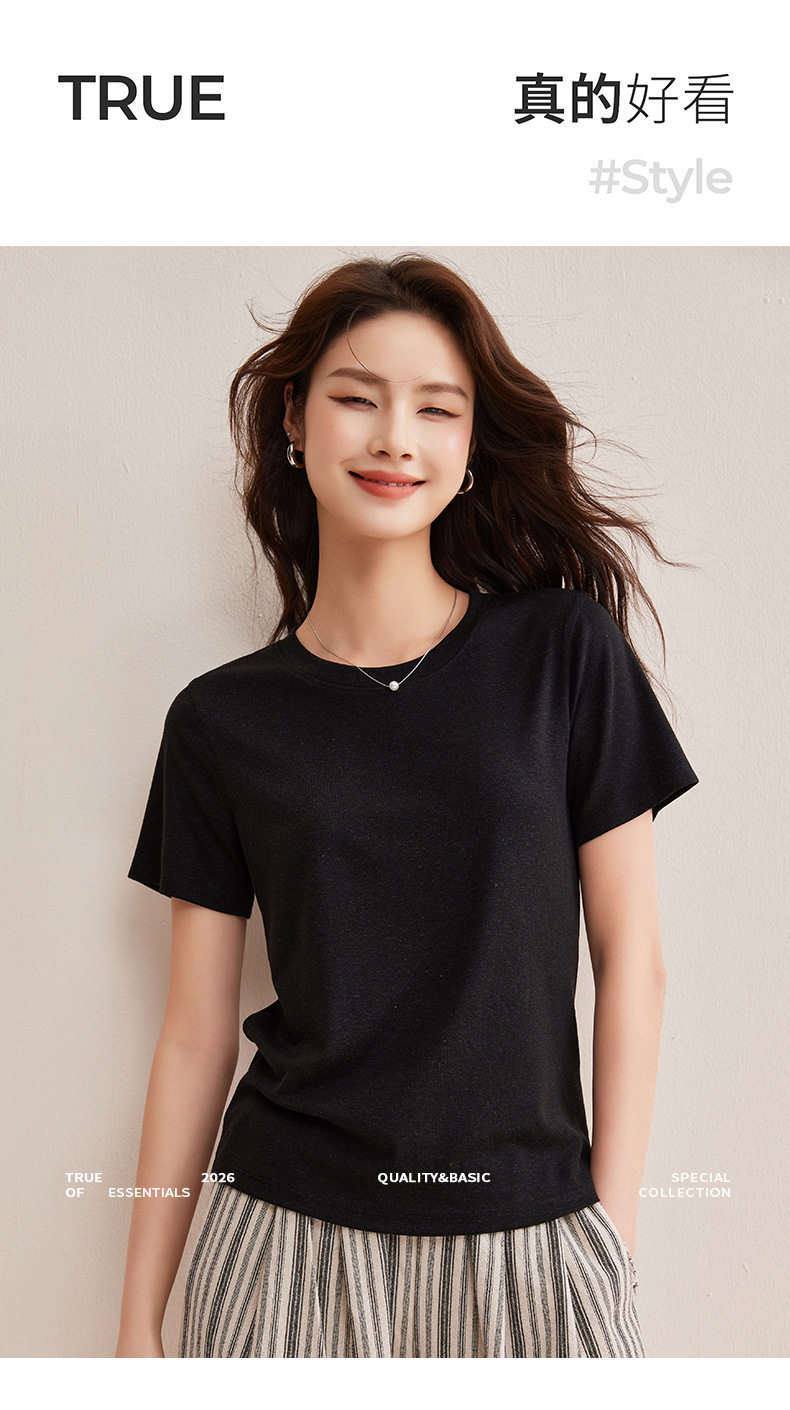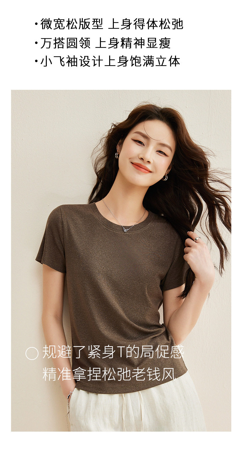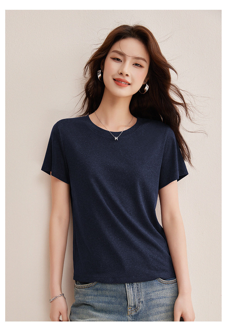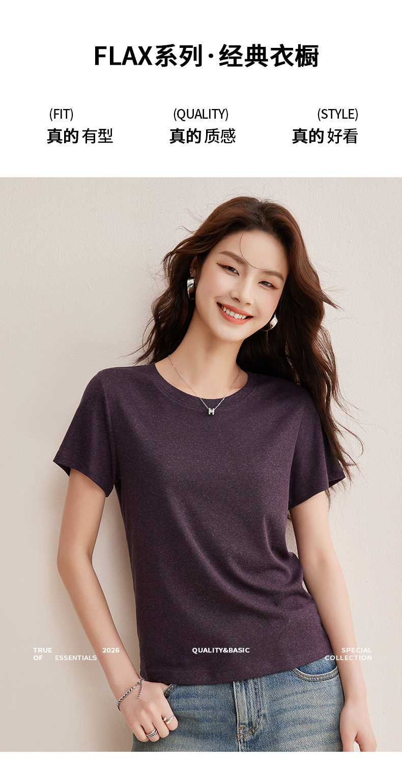 「自」全新升级【铂金会员109/天猫139/差价30】(03944)洛诗琳莱赛尔天丝亚麻T恤2026春夏新款圆领正肩短袖上衣
