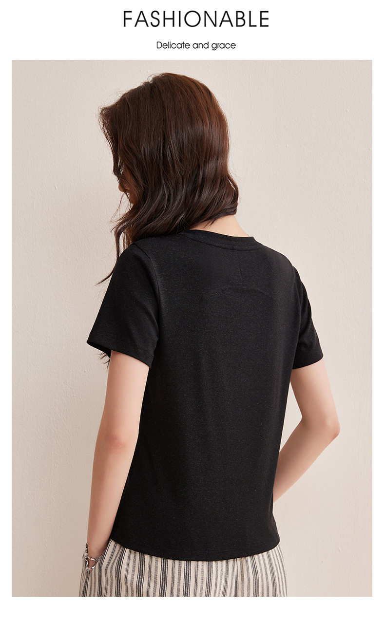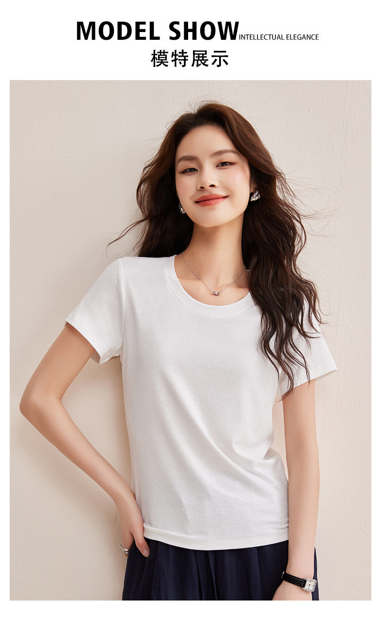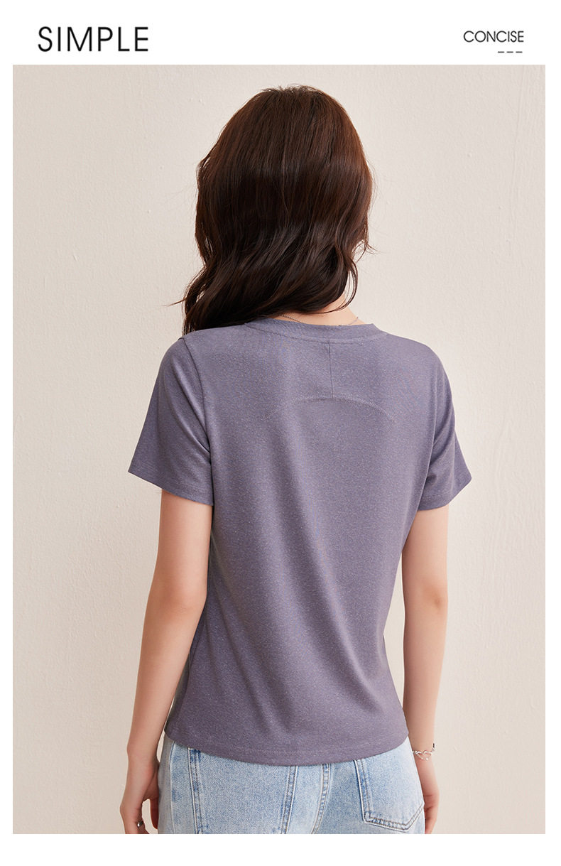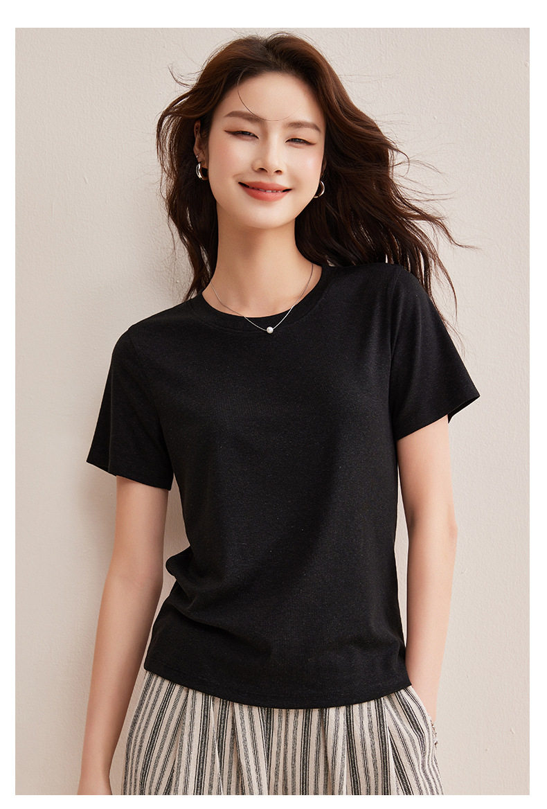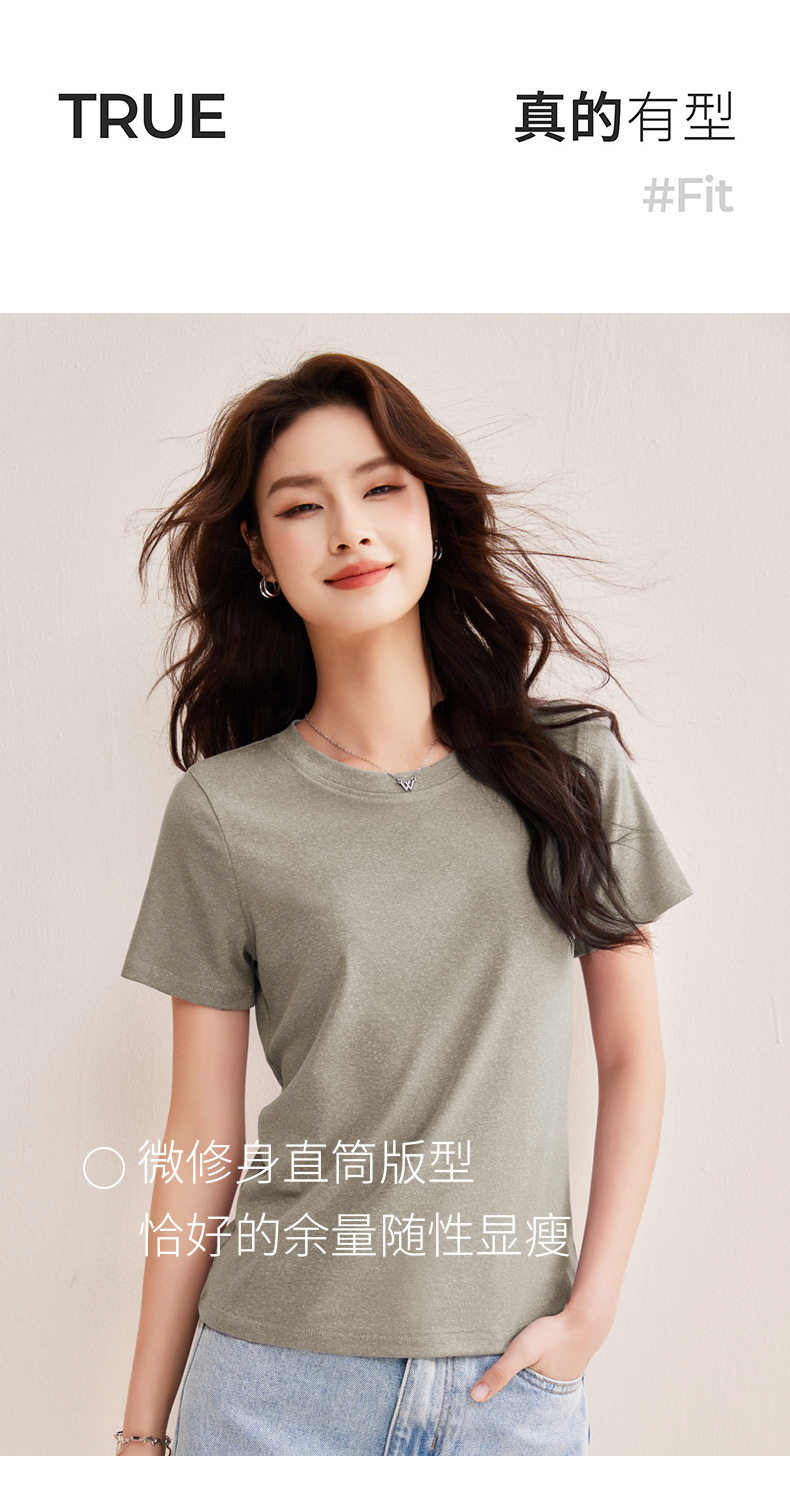「自」全新升级【铂金会员109/天猫139/差价30】(03944)洛诗琳莱赛尔天丝亚麻T恤2026春夏新款圆领正肩短袖上衣
