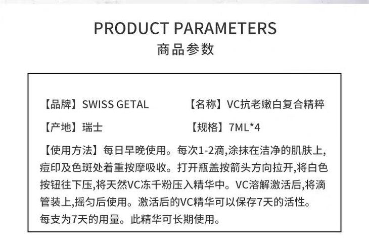 Swissgetal婕她 VC抗老嫩白复合精粹7ml*4