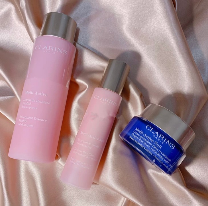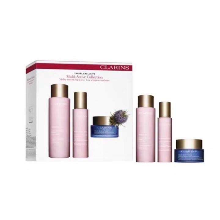 CLARINS 娇韵诗多元赋活三件套👍初级抗衰老必备✔!精华水富含起绒草精粹,保湿锁水💦,增强后续护肤功效。乳液持久对抗日间压力☀,提亮肤色,抵御细纹。晚霜拥有“逆转时光之面霜”的美誉😍,加强肌肤夜间黄金睡眠期的养护💤,补充源源胶原能量,对抗皱纹和松弛,肌肤紧致、锁水保湿、抗氧化一应俱全👏。植物配方🌿,上脸温和,孕妇敏感肌都可用。 【套装包括】精华水200ml、乳液50ml、晚霜50ml