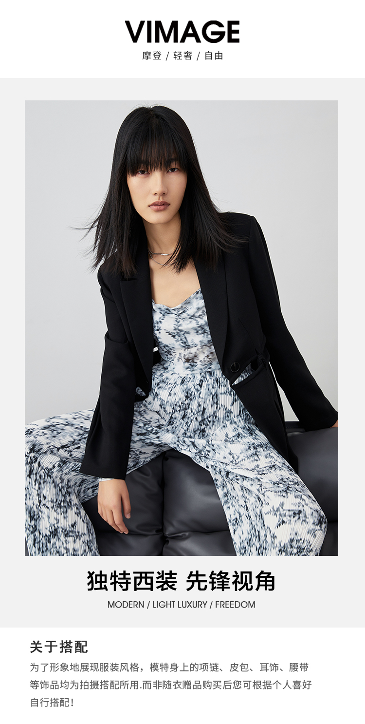 VIMAGE纬漫纪春季新款时尚独特百搭显瘦干练西装外套女V1703308