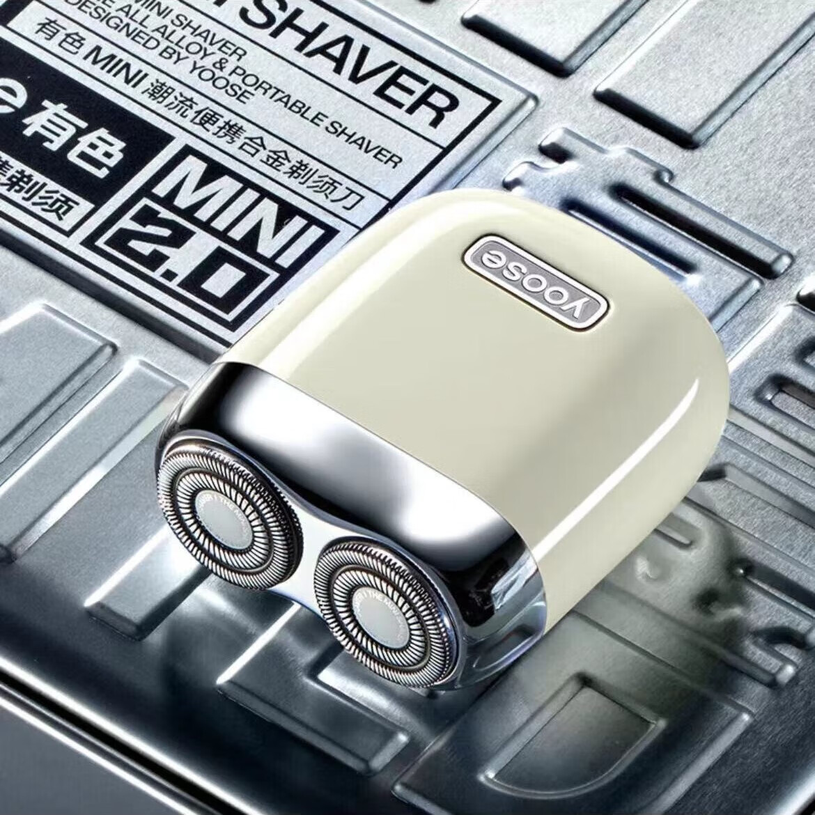 有色(yoose)剃须刀便携款合金电动刮胡刀男士送男友老公胡须刀MINI2.0铁盒 亚麻白