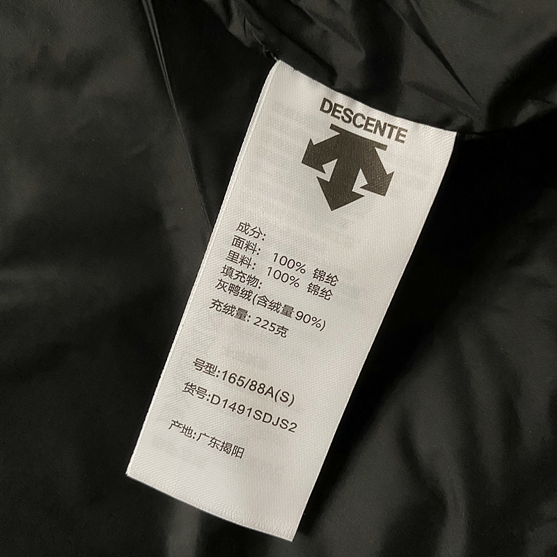 羽绒涵量 90绒,克重约220–260g 全身采用