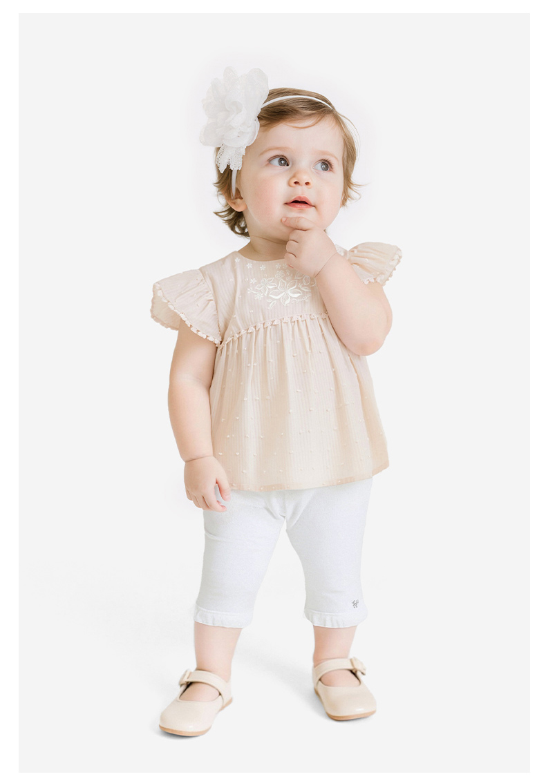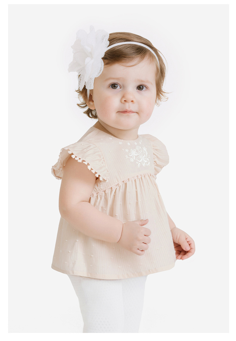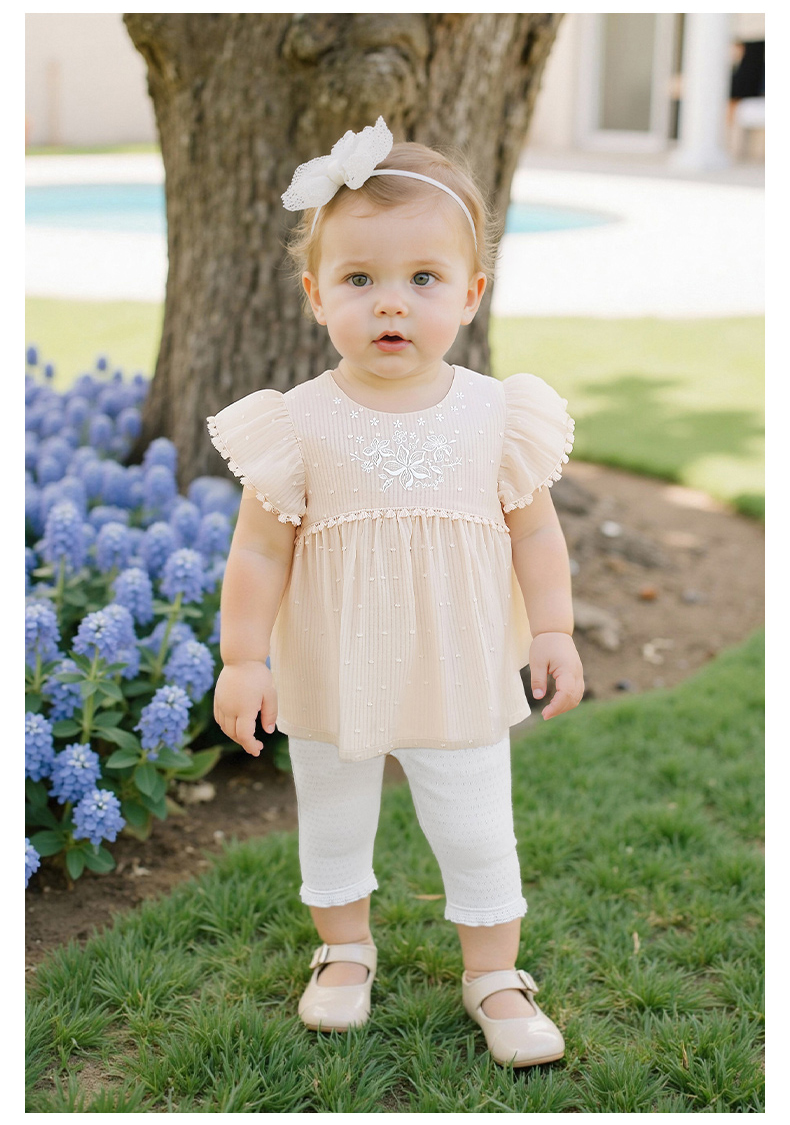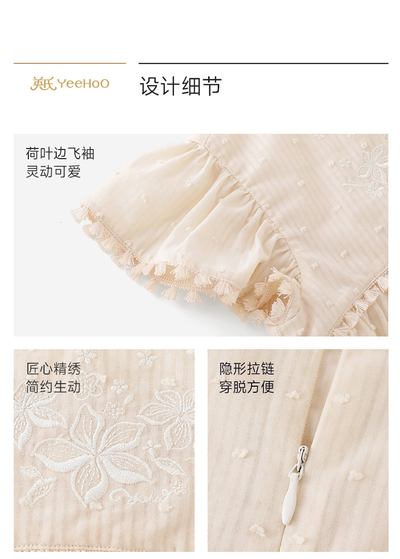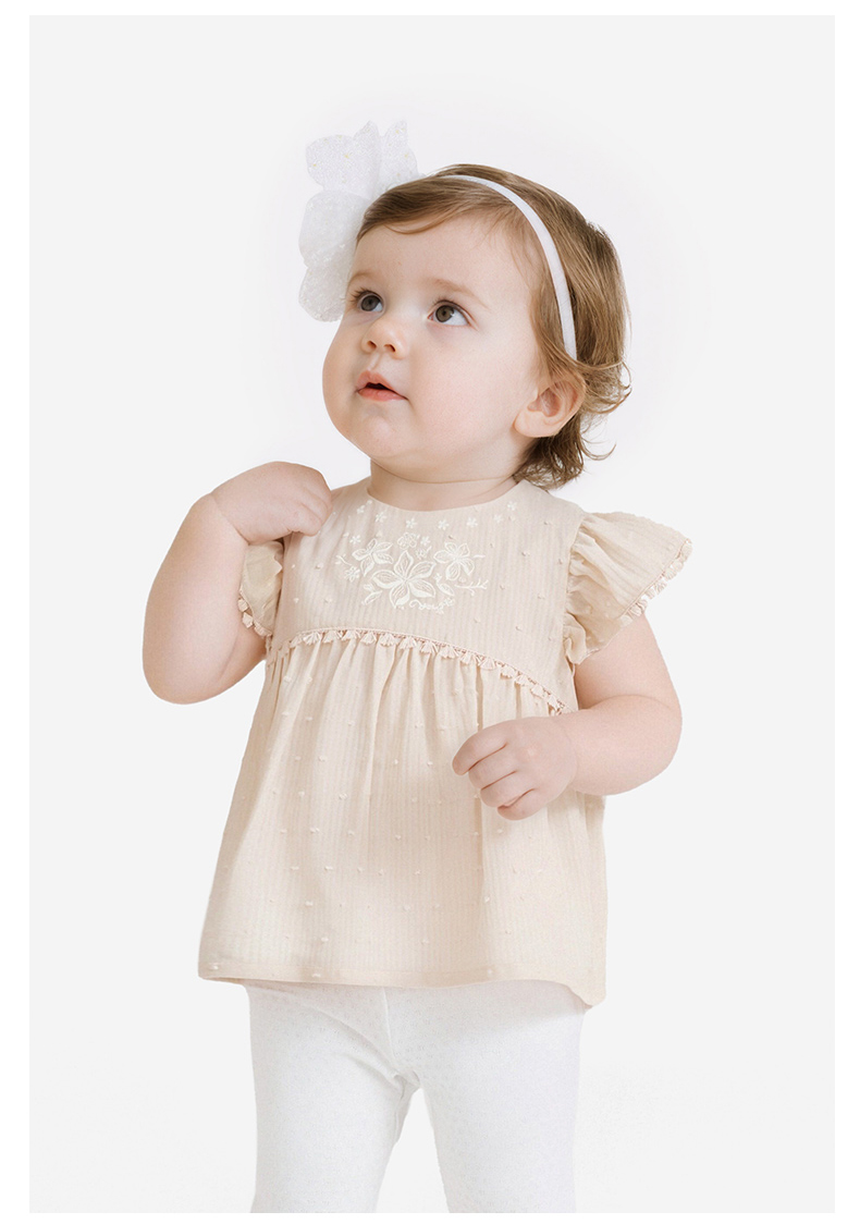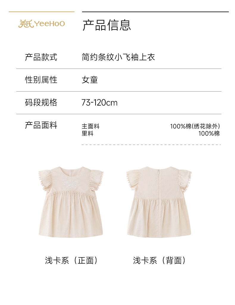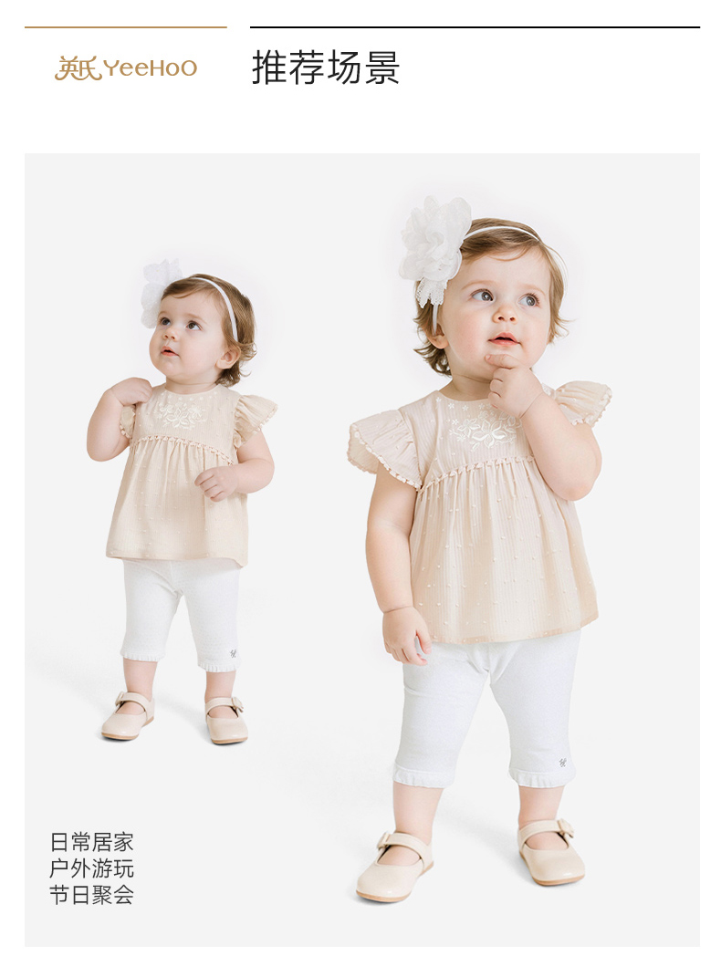【商场同款】英氏女童宝宝洋气飞袖上衣夏季新款透气短袖套头小衫