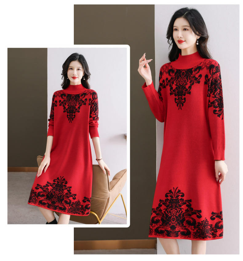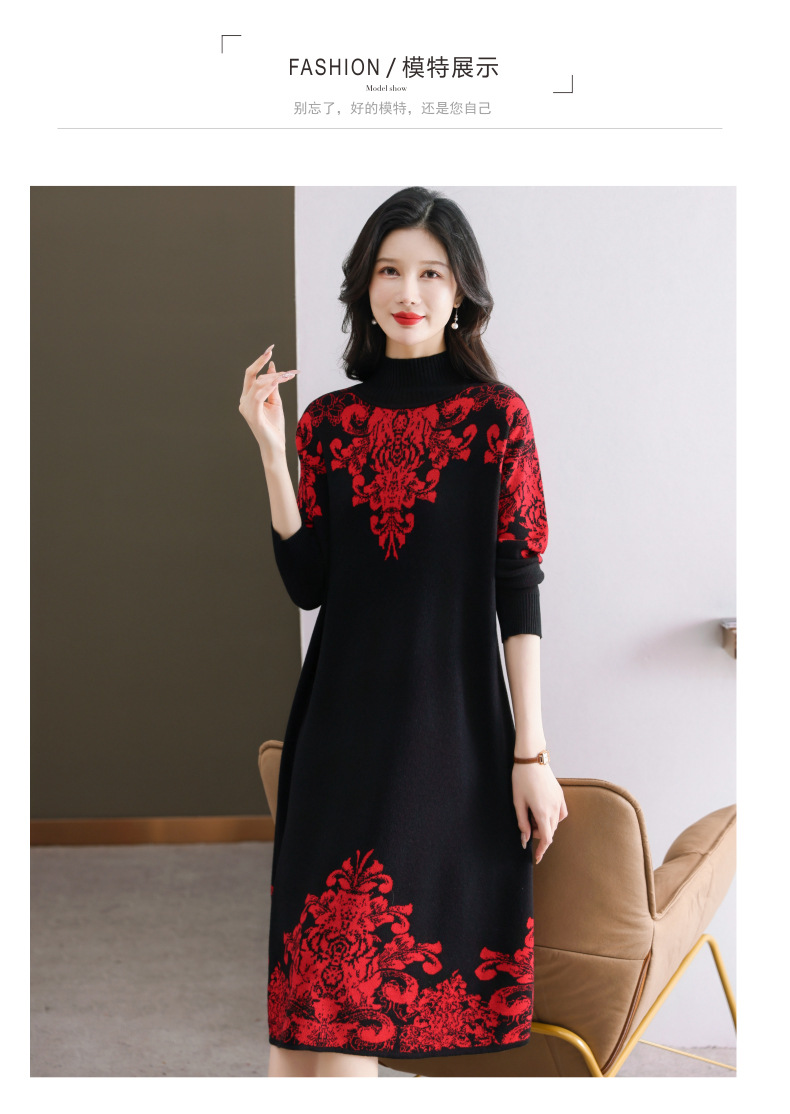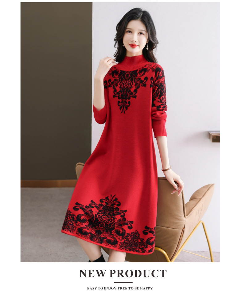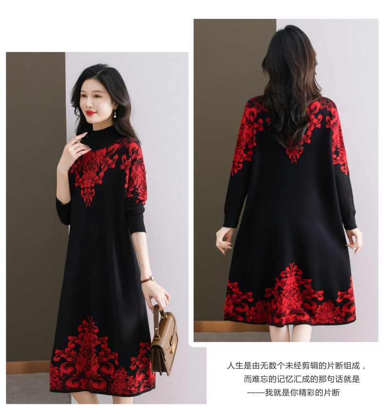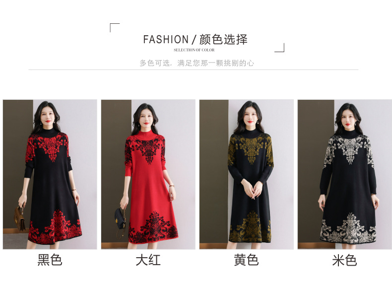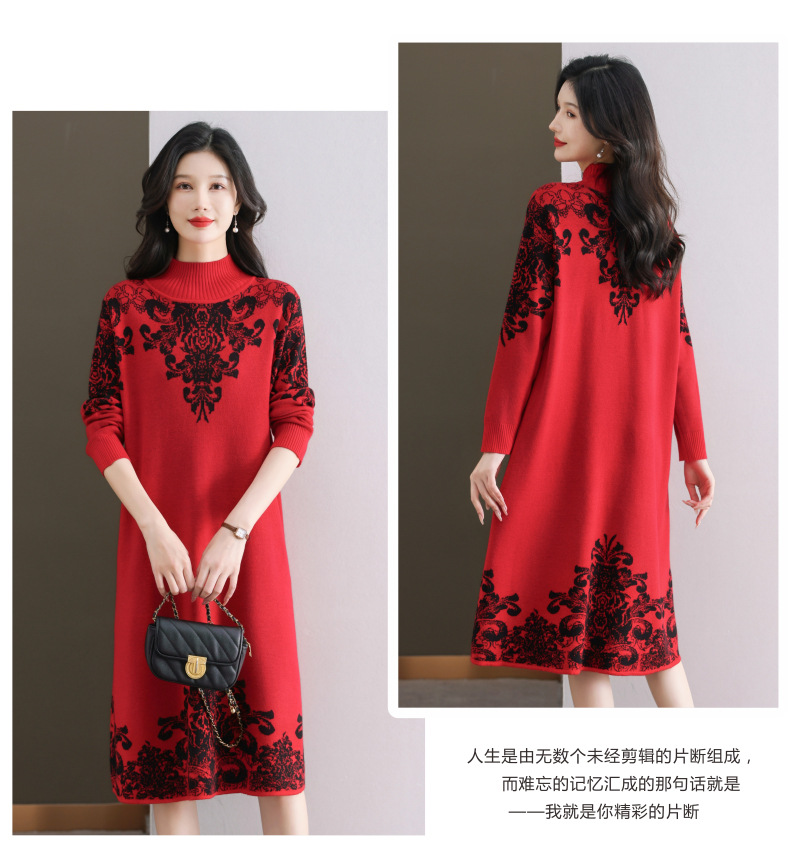 国风喜婆婆婚宴装,新款女秋冬季配大衣内搭大码针织连衣裙CC-SYX-8568