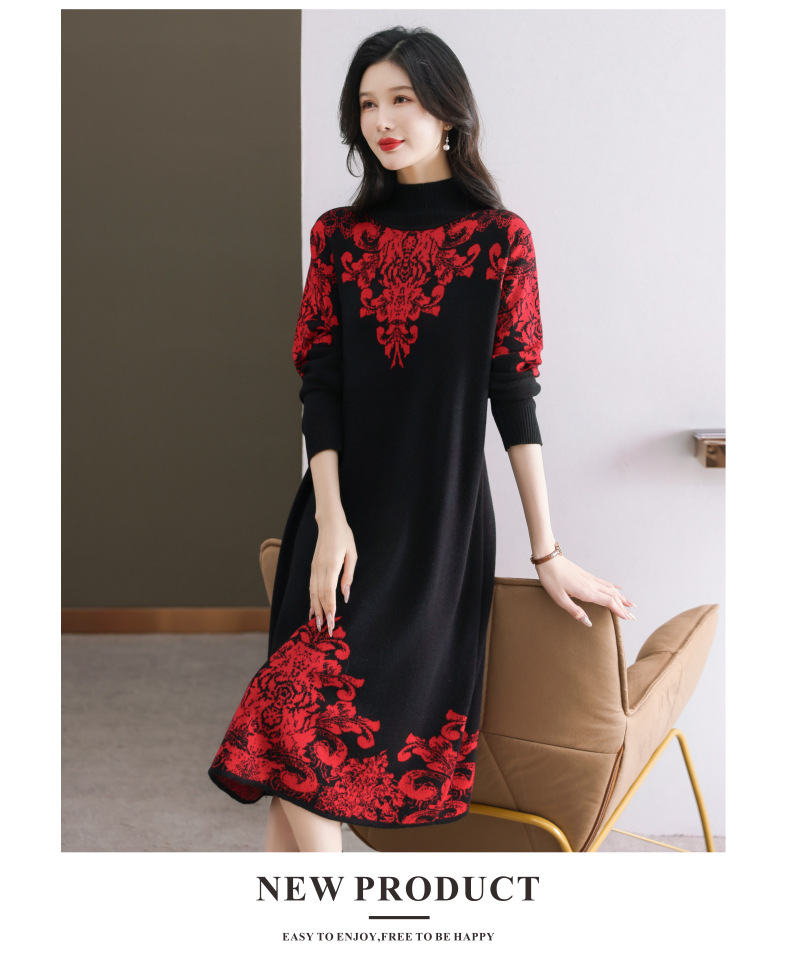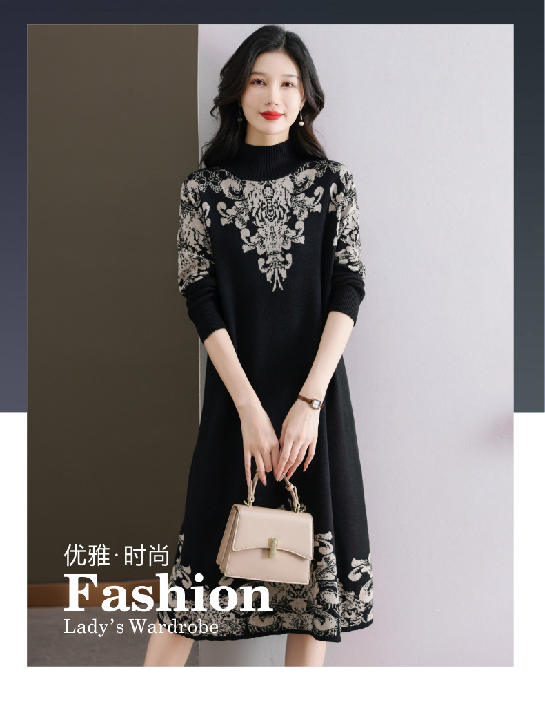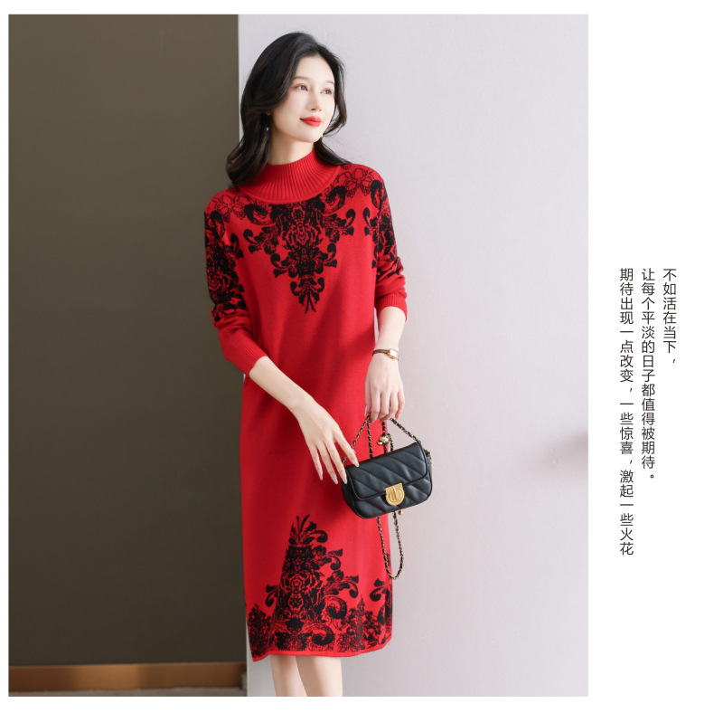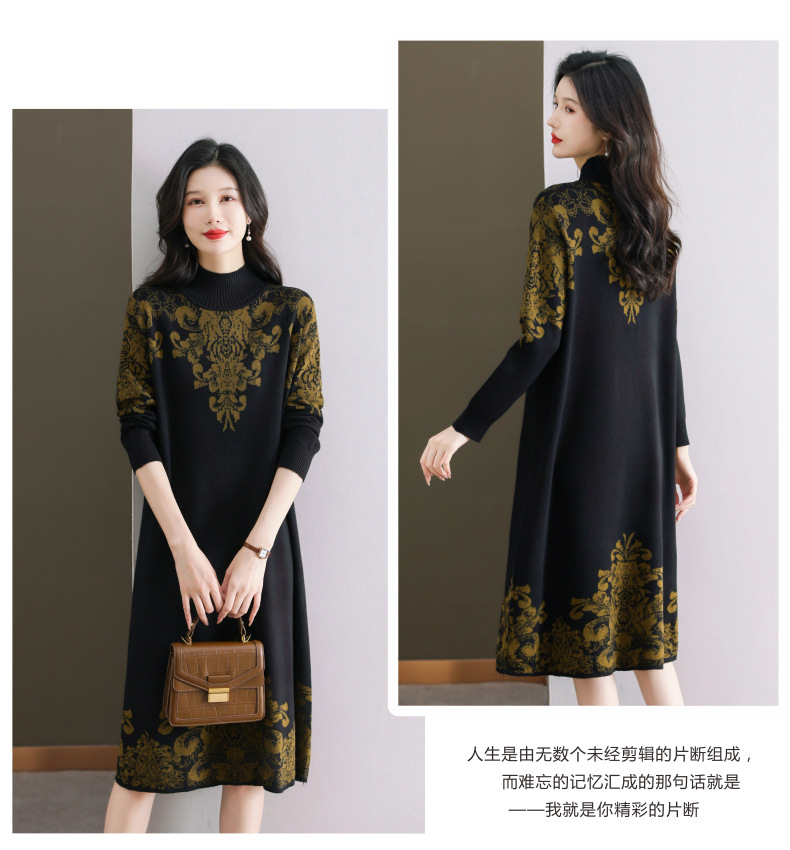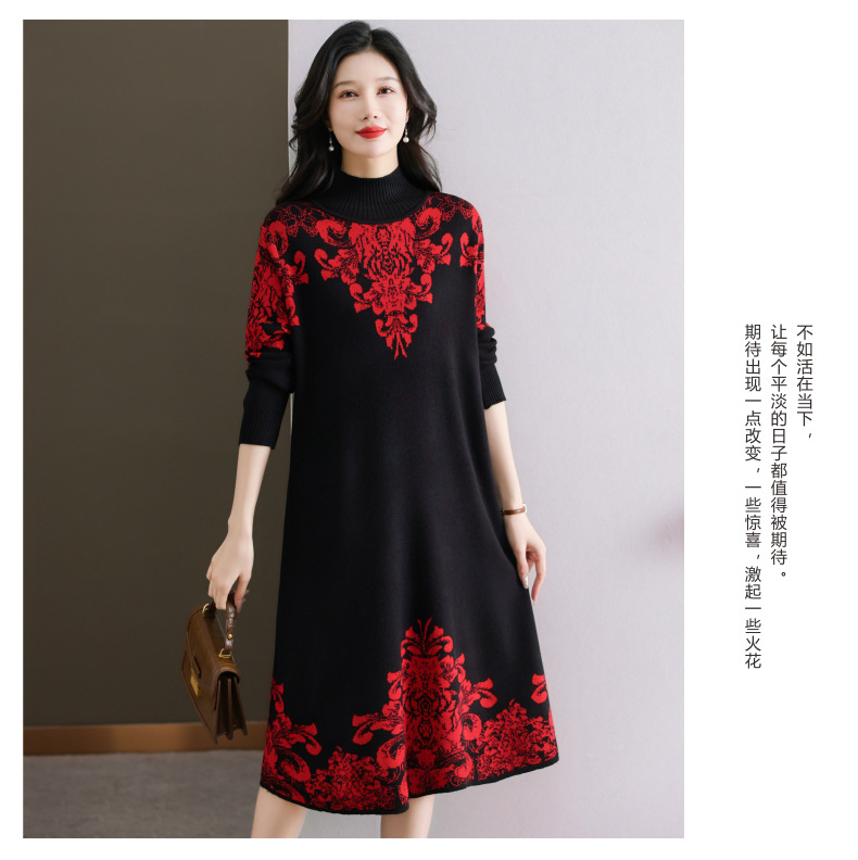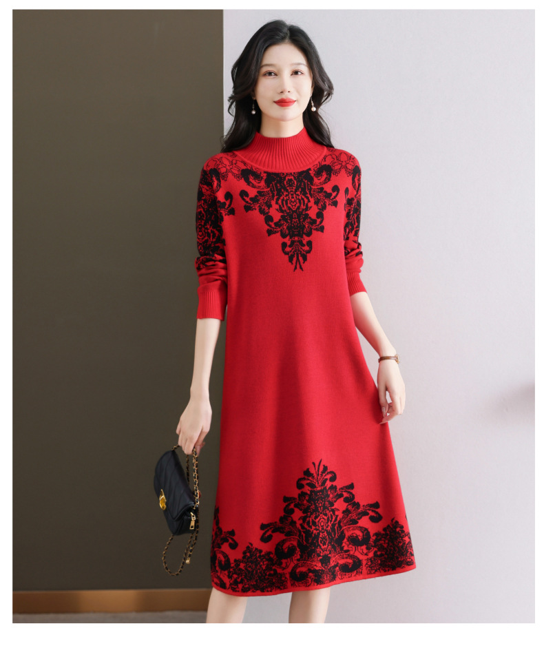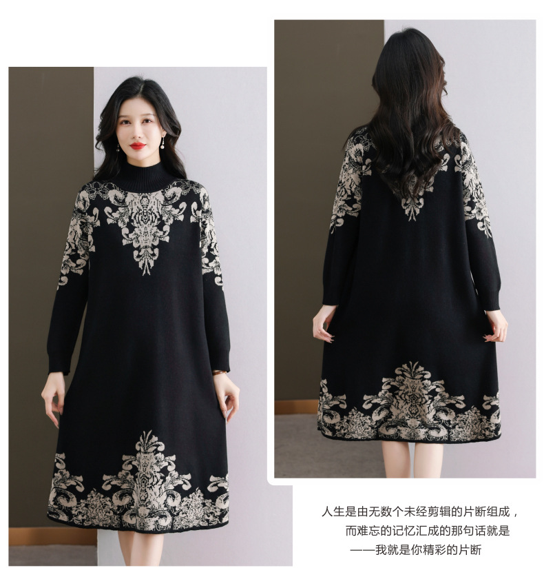 国风喜婆婆婚宴装,新款女秋冬季配大衣内搭大码针织连衣裙CC-SYX-8568