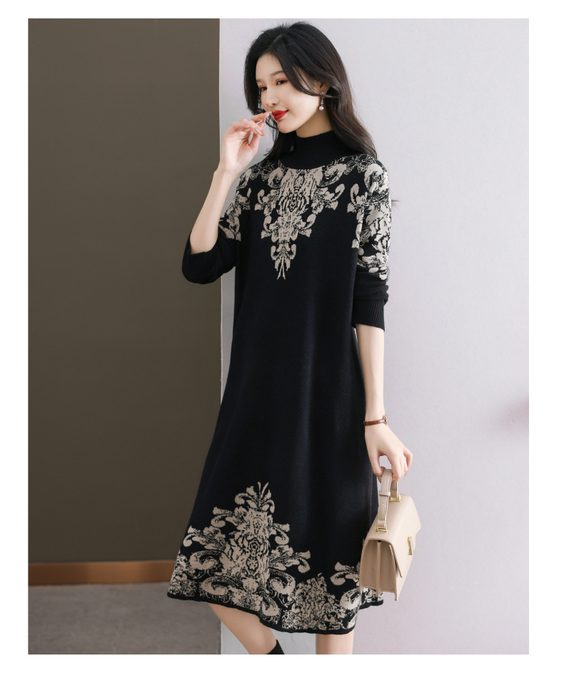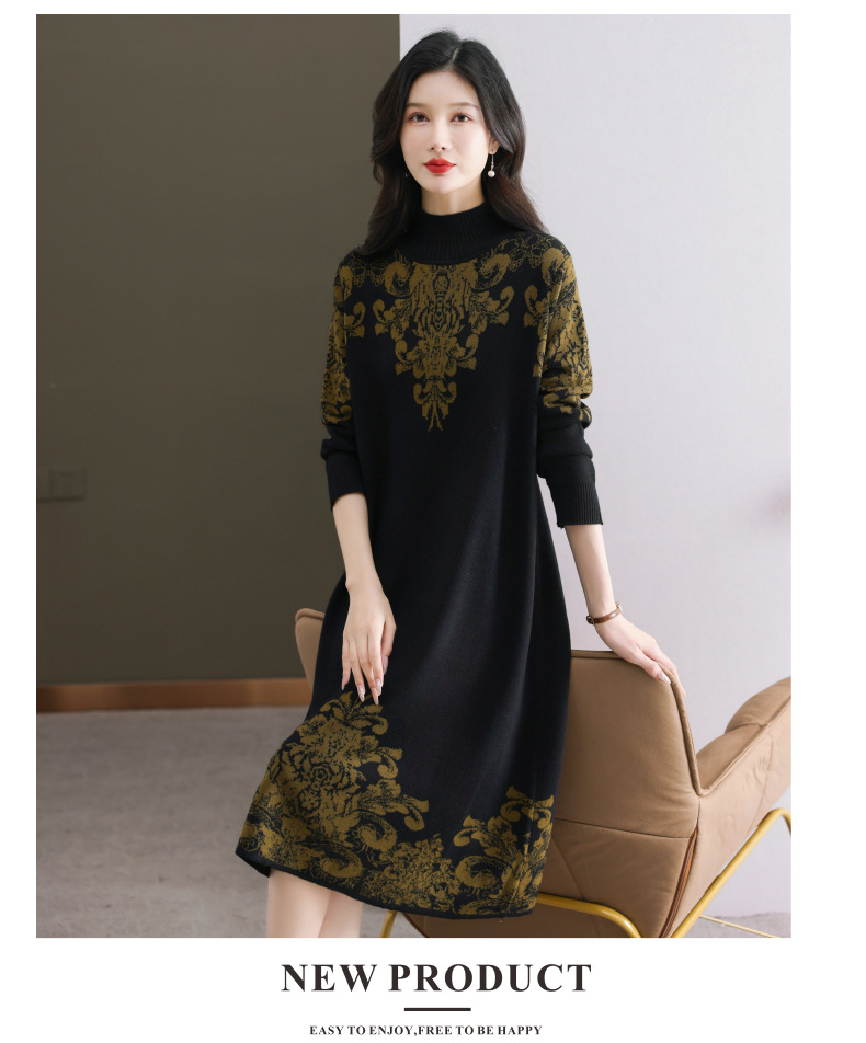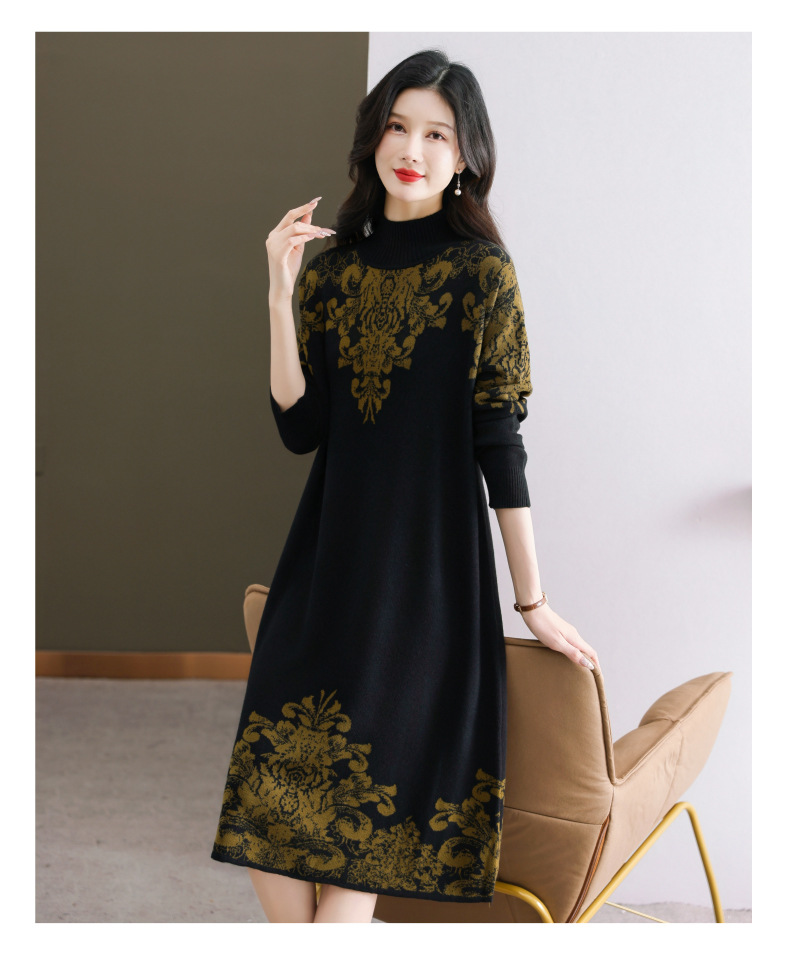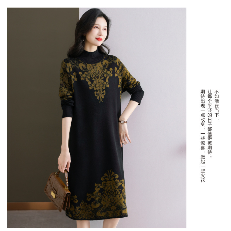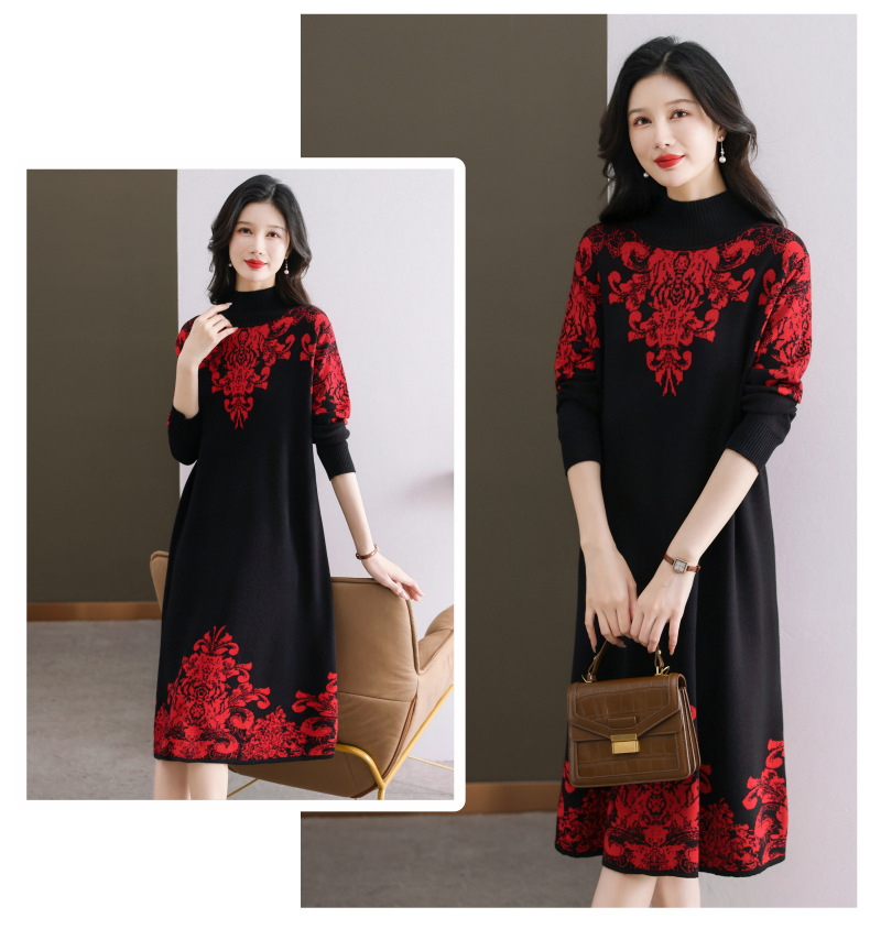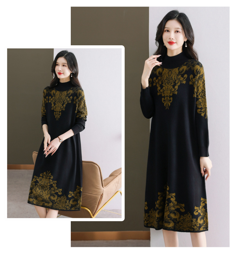 国风喜婆婆婚宴装,新款女秋冬季配大衣内搭大码针织连衣裙CC-SYX-8568