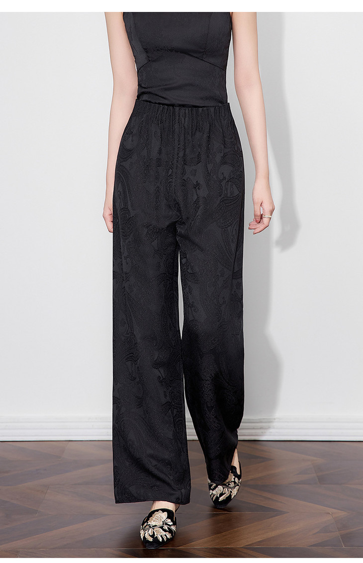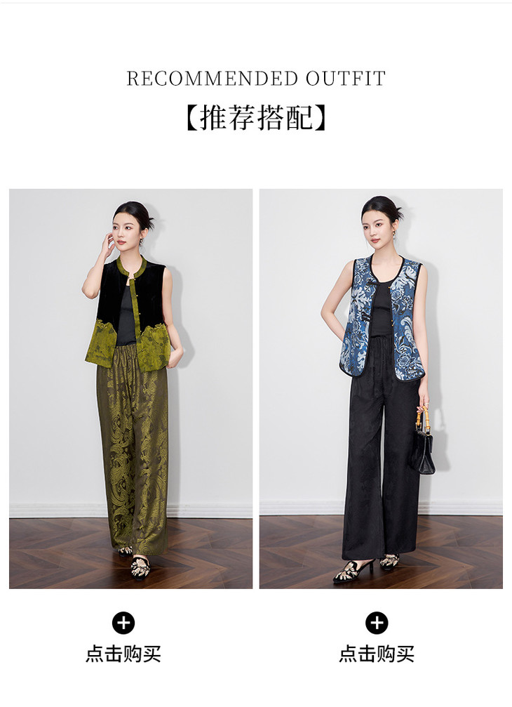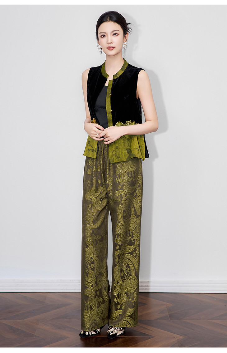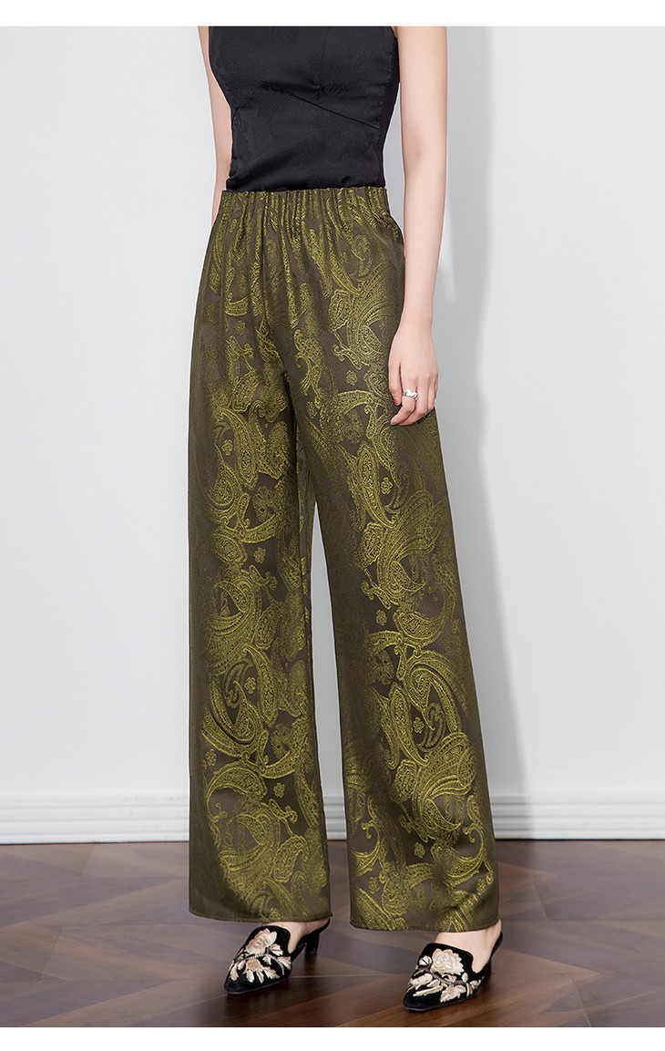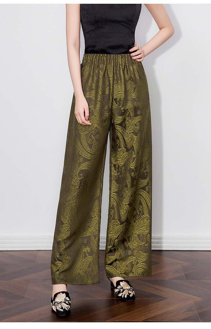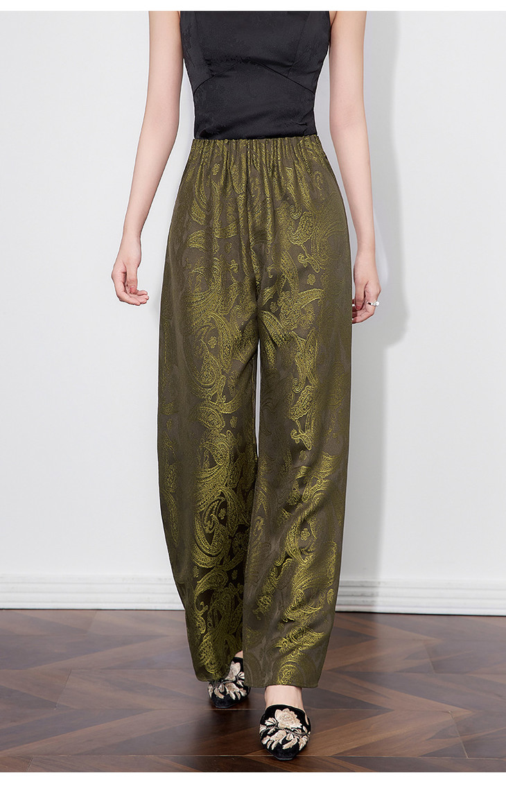 超绝气场新中式人丝提花,新中式国风直筒阔腿长裤WLZD-2511705