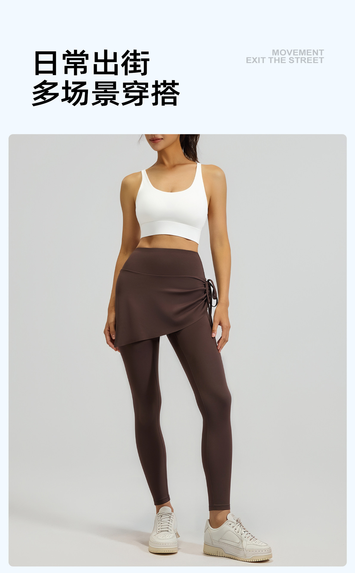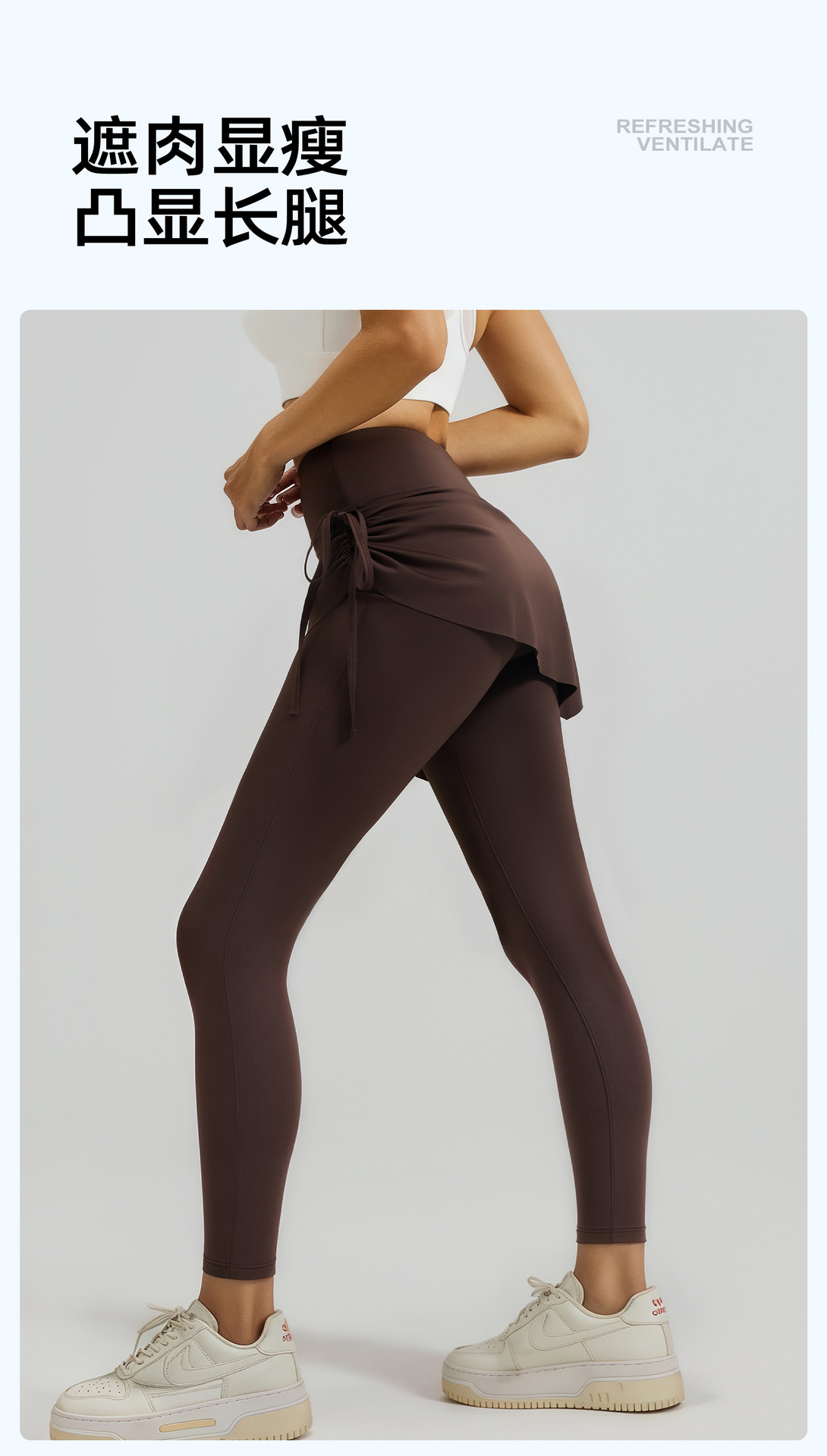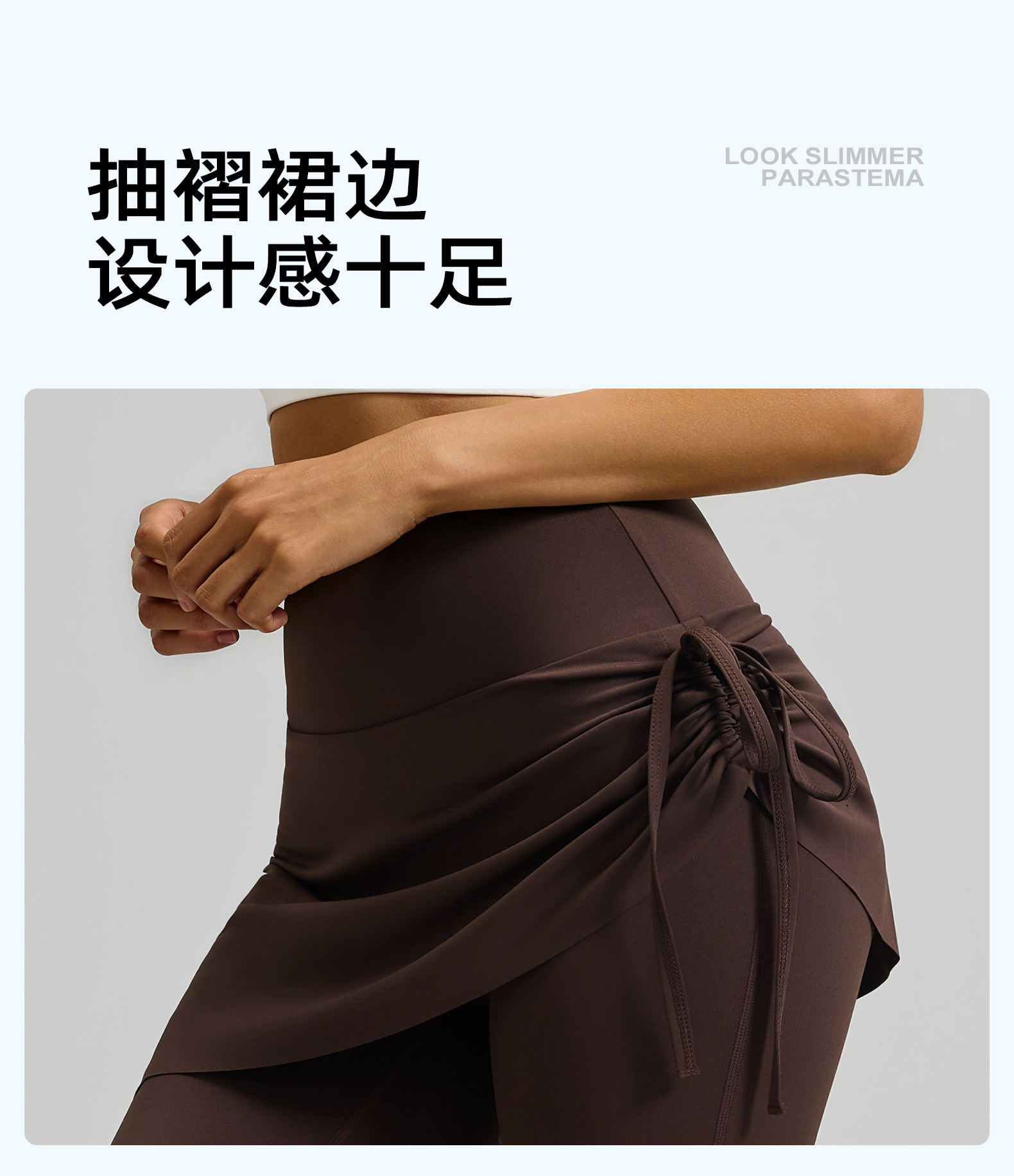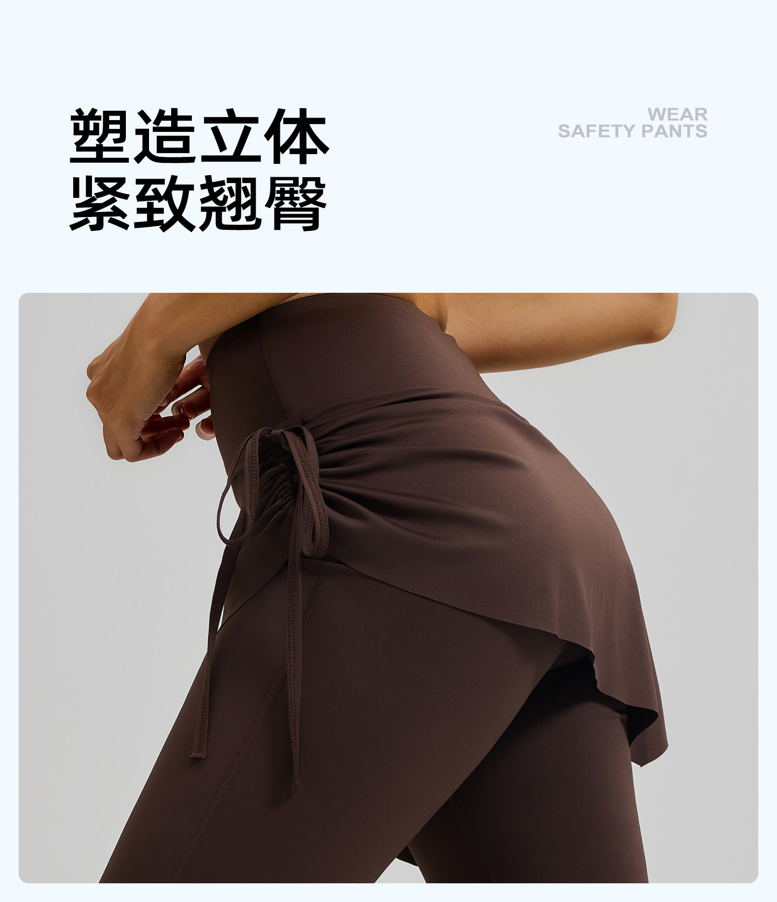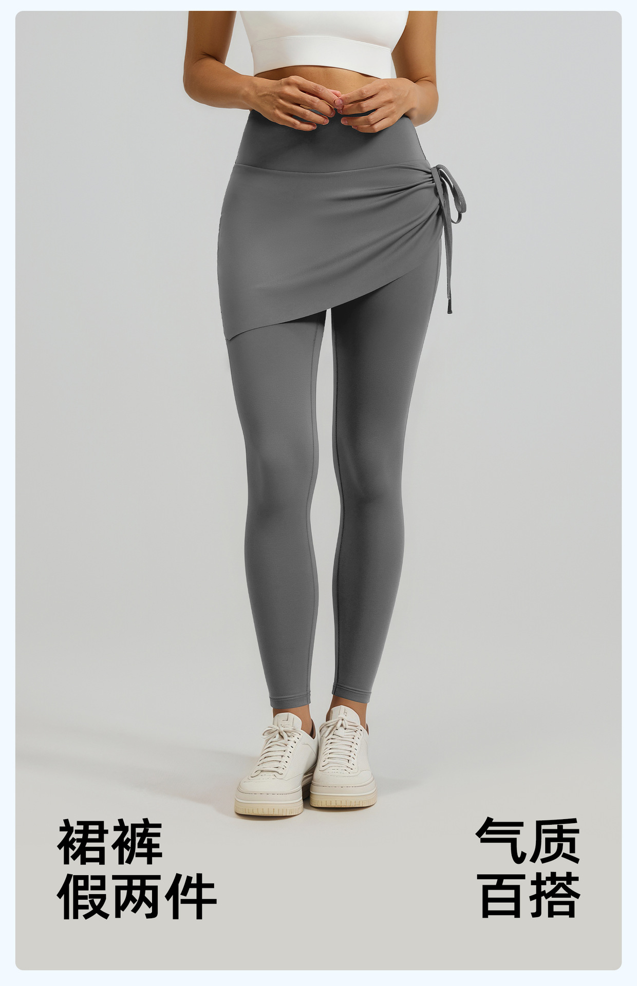 跃牌【瑜堂系列】新款抽绳褶皱瑜伽裙裤女假两件显瘦防尴尬运动健身长裤JYMK204