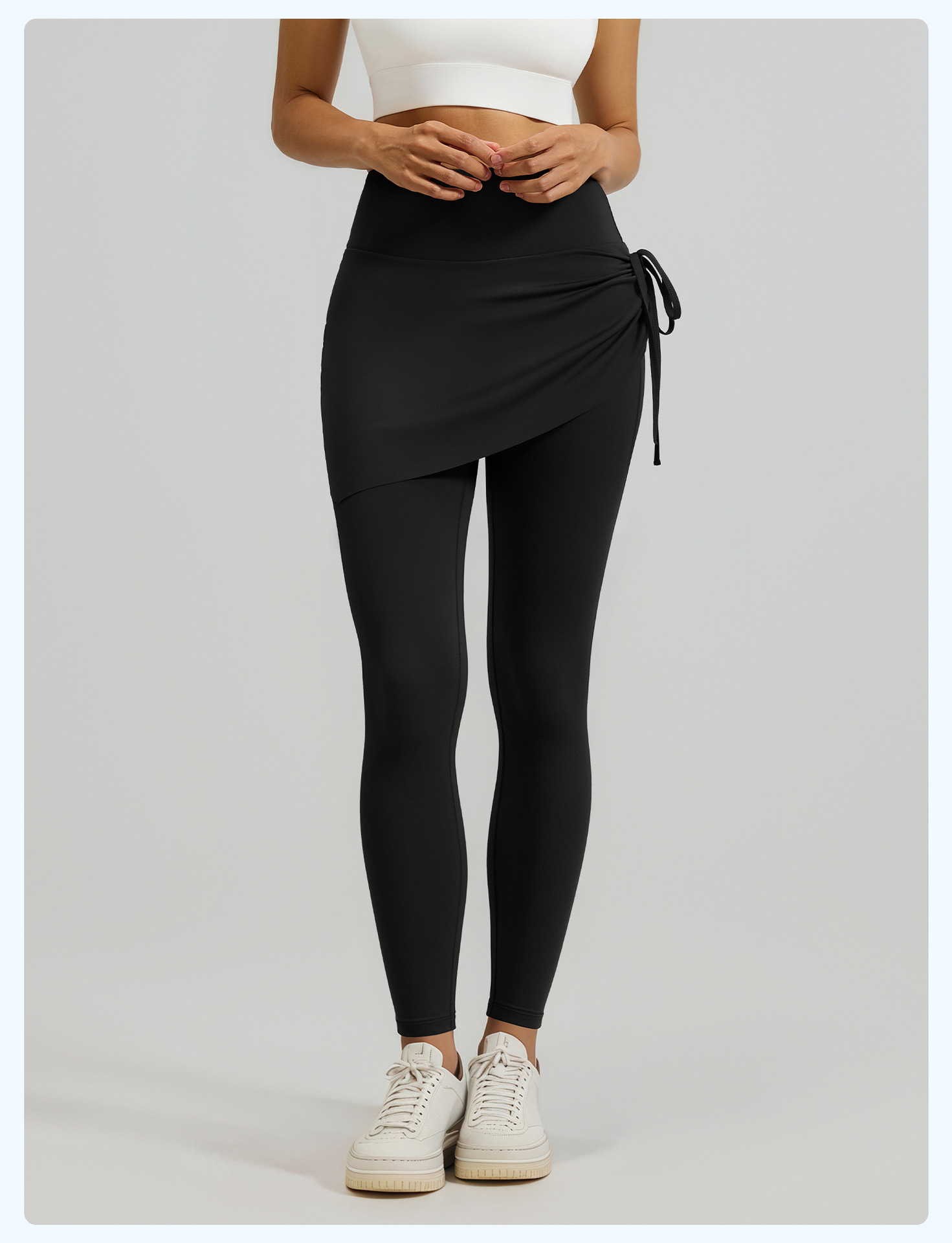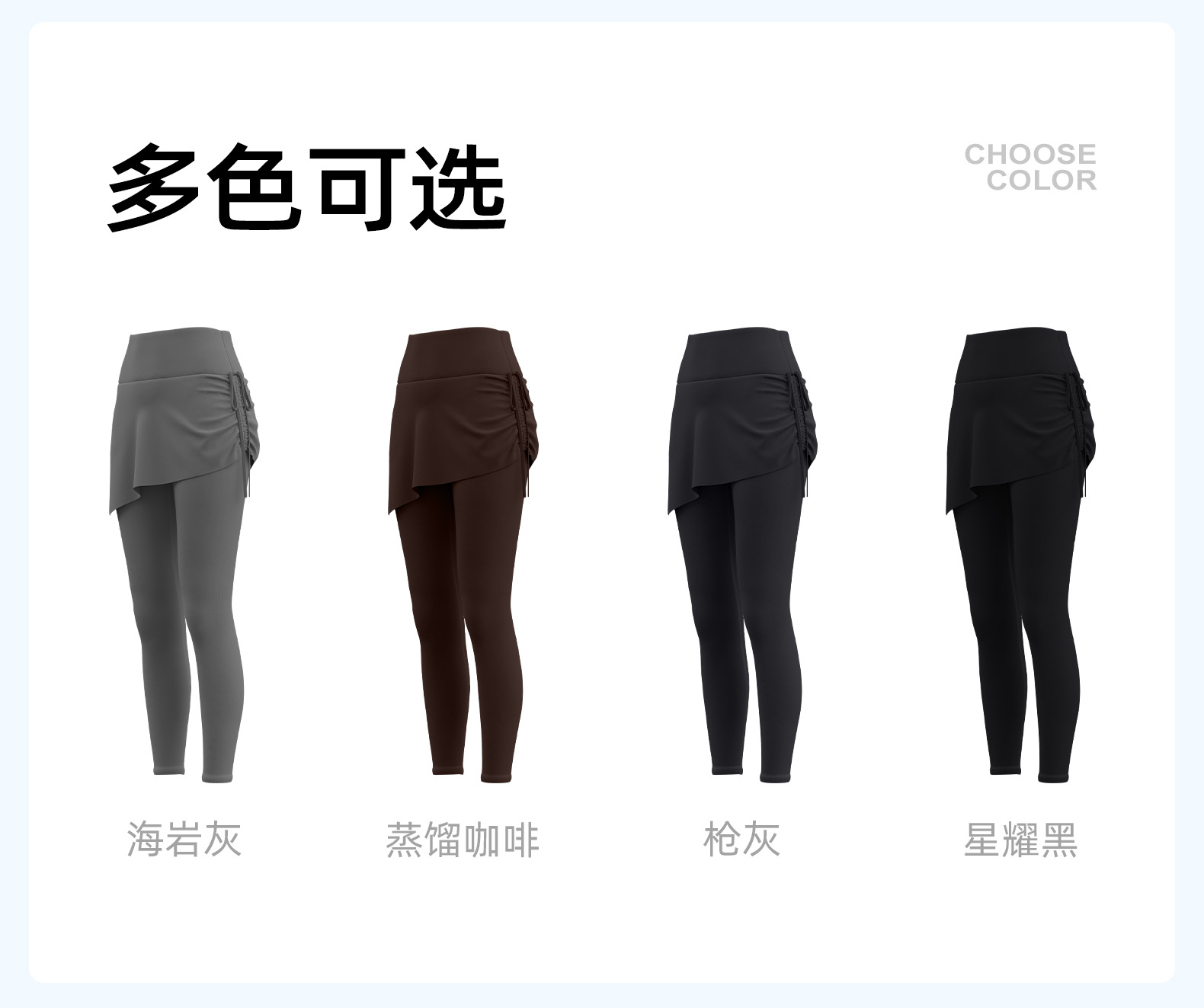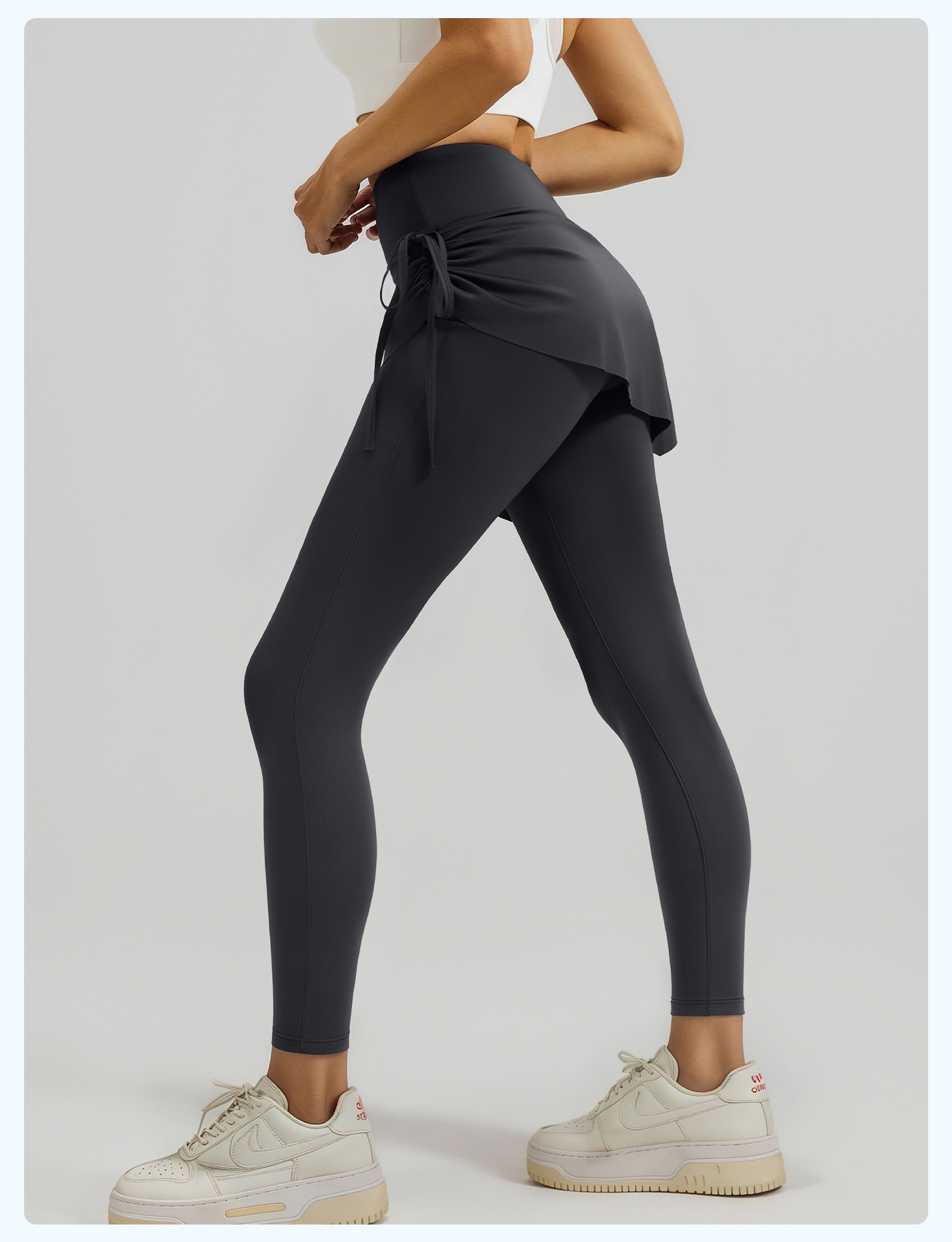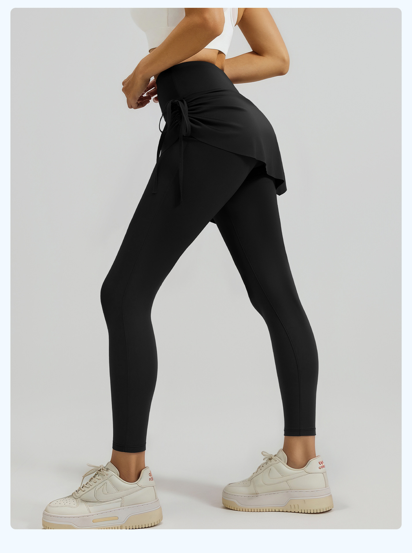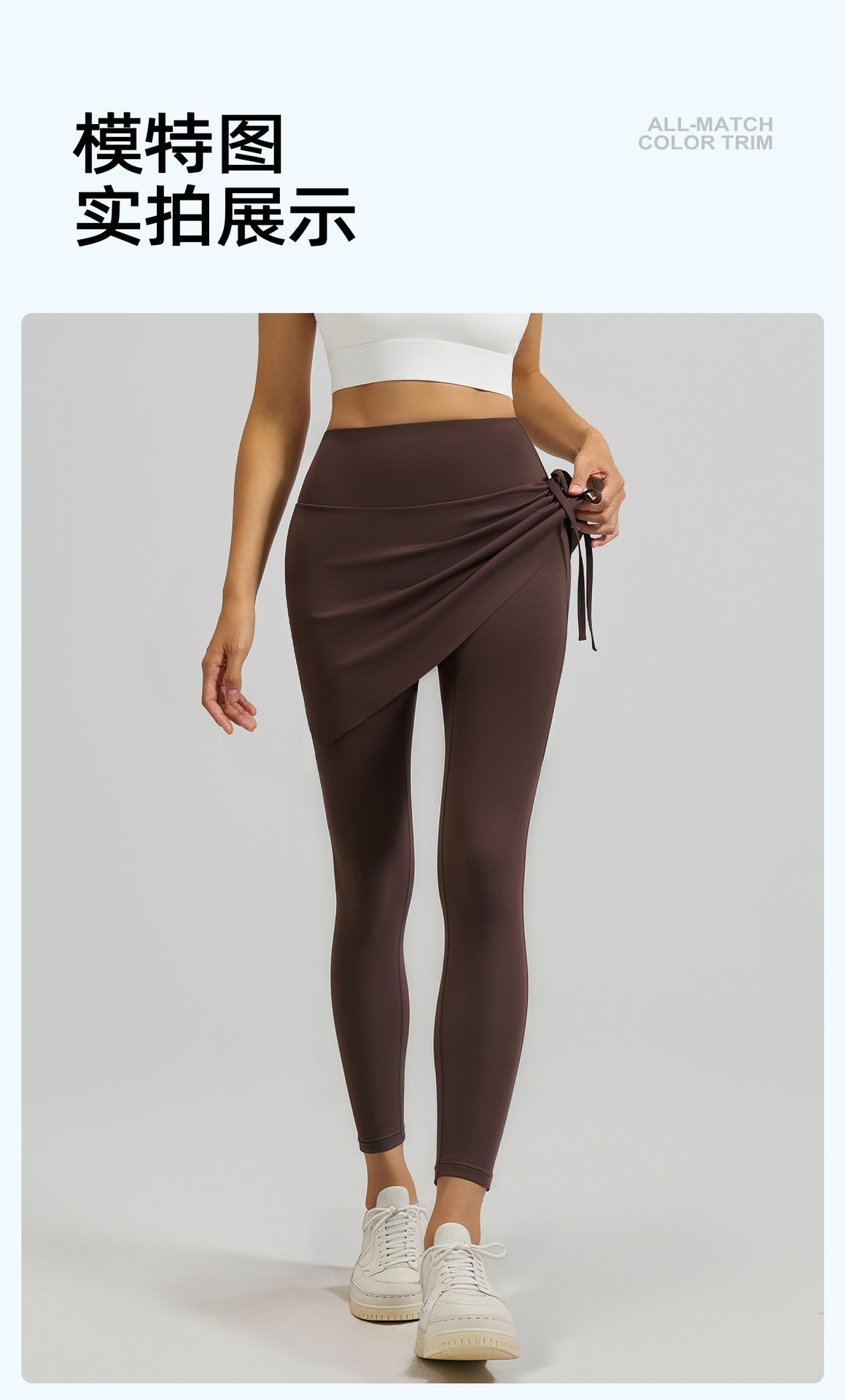 跃牌【瑜堂系列】新款抽绳褶皱瑜伽裙裤女假两件显瘦防尴尬运动健身长裤JYMK204