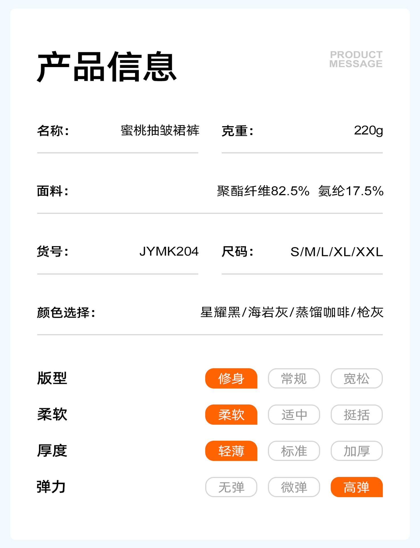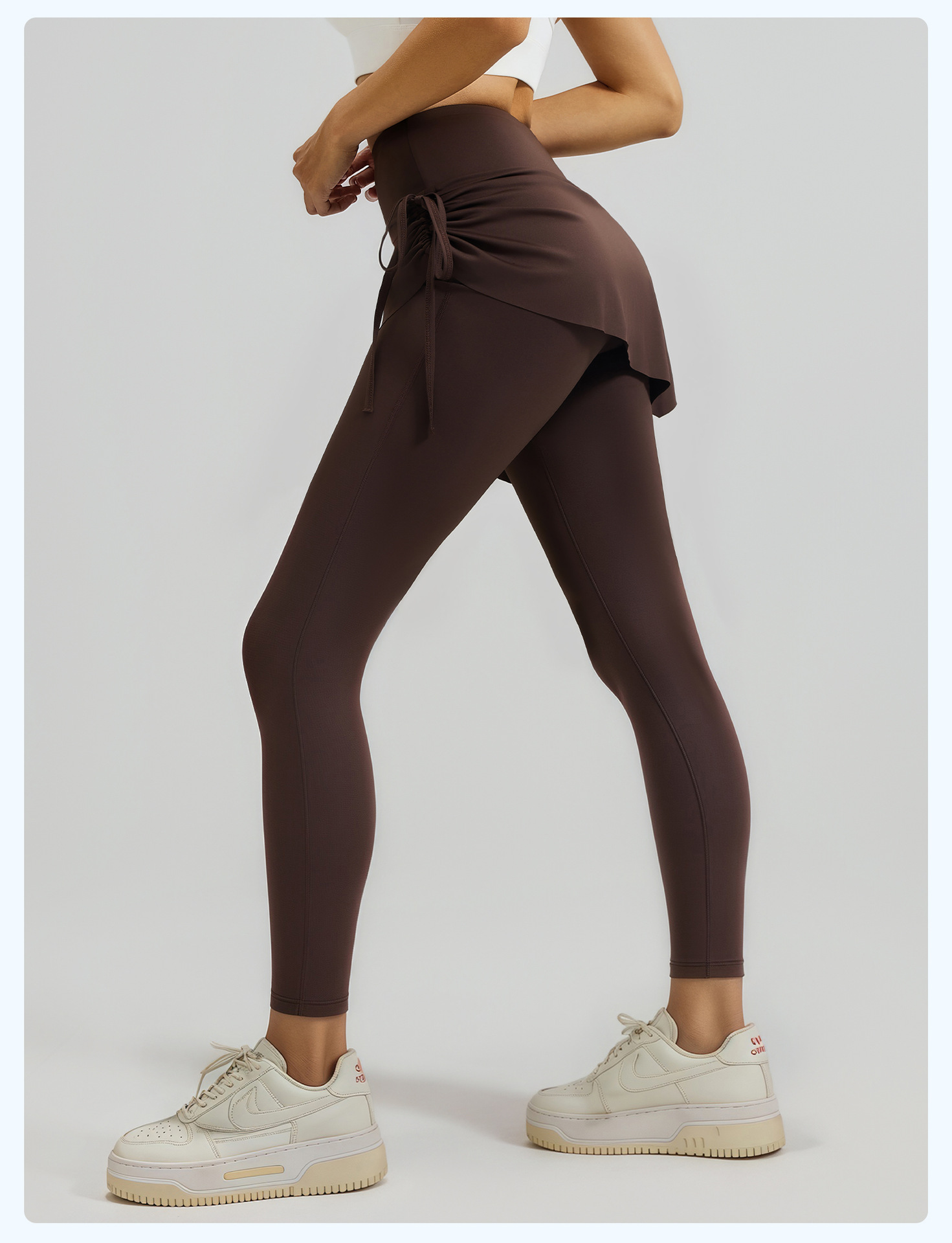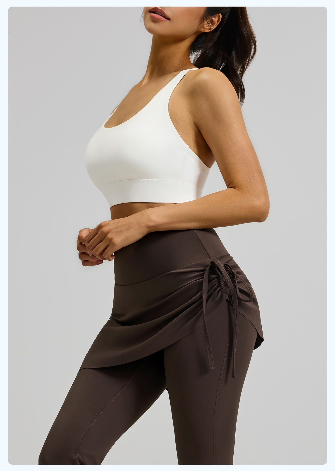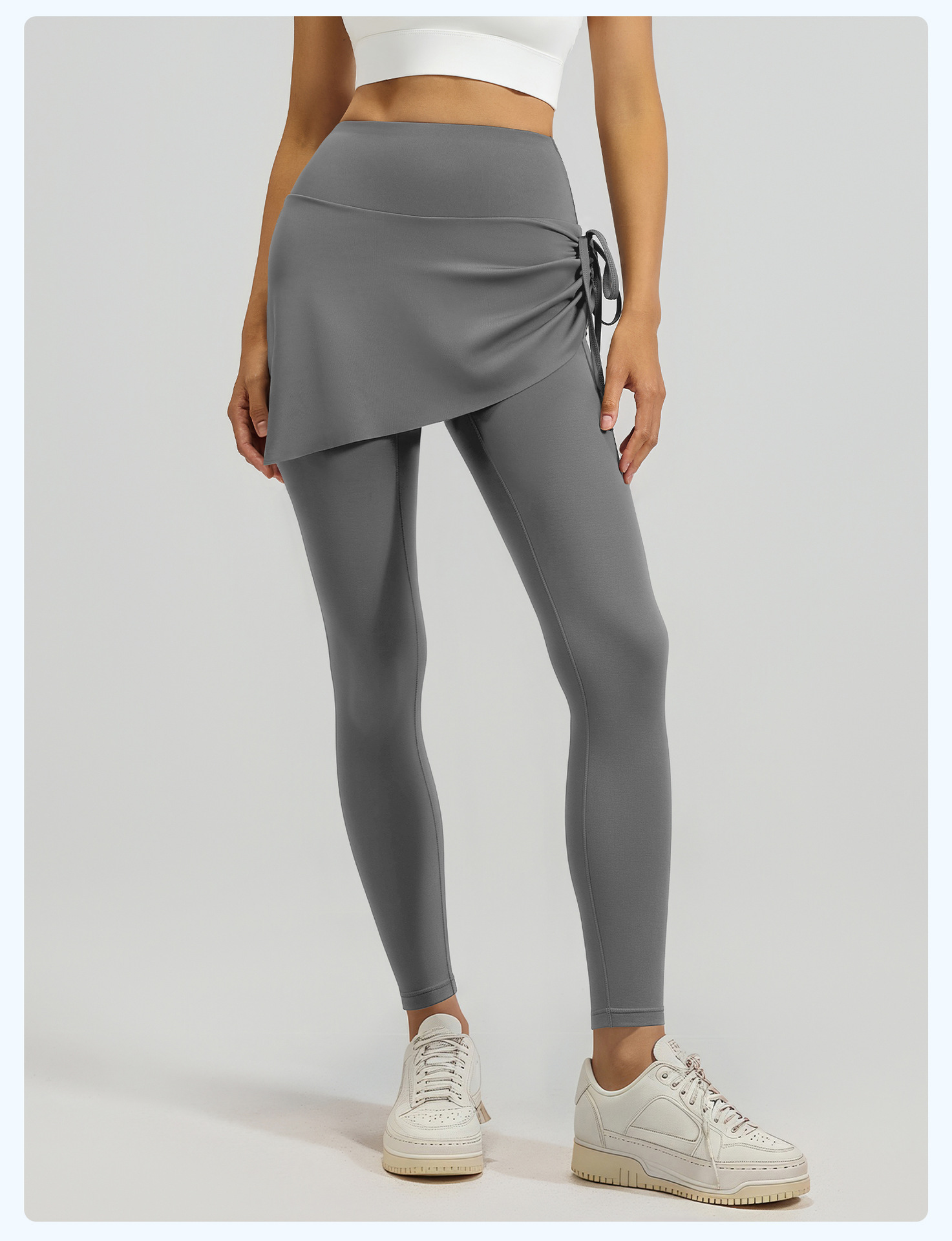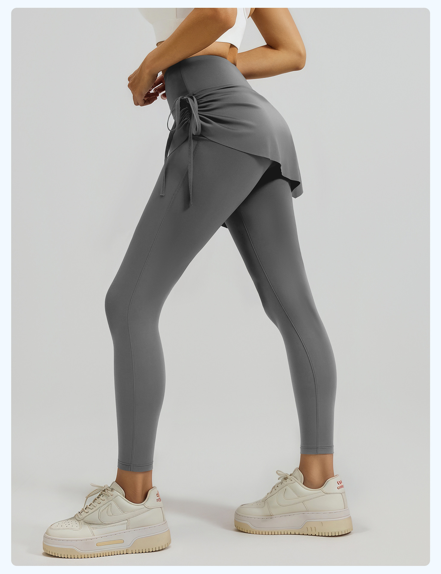 跃牌【瑜堂系列】新款抽绳褶皱瑜伽裙裤女假两件显瘦防尴尬运动健身长裤JYMK204