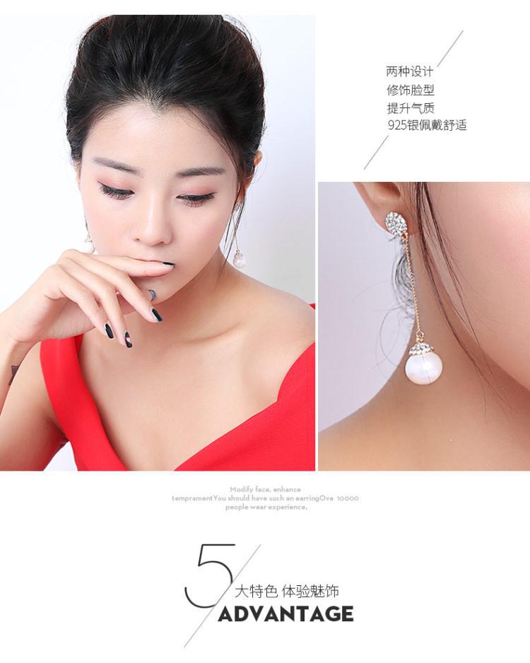PP-H118韩国版气质长款吊坠无耳洞仿珍珠耳夹