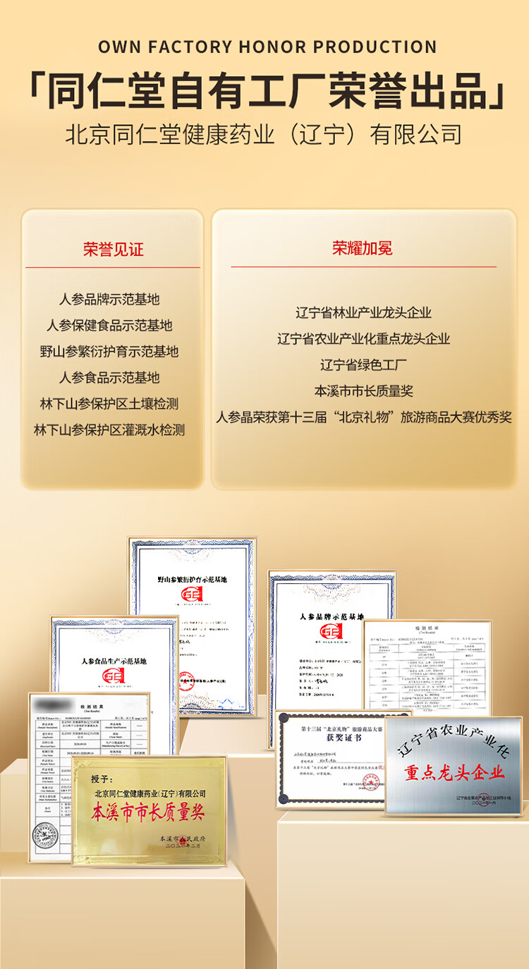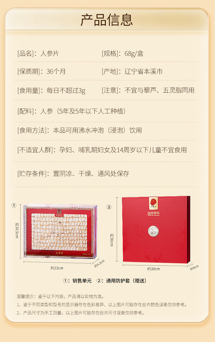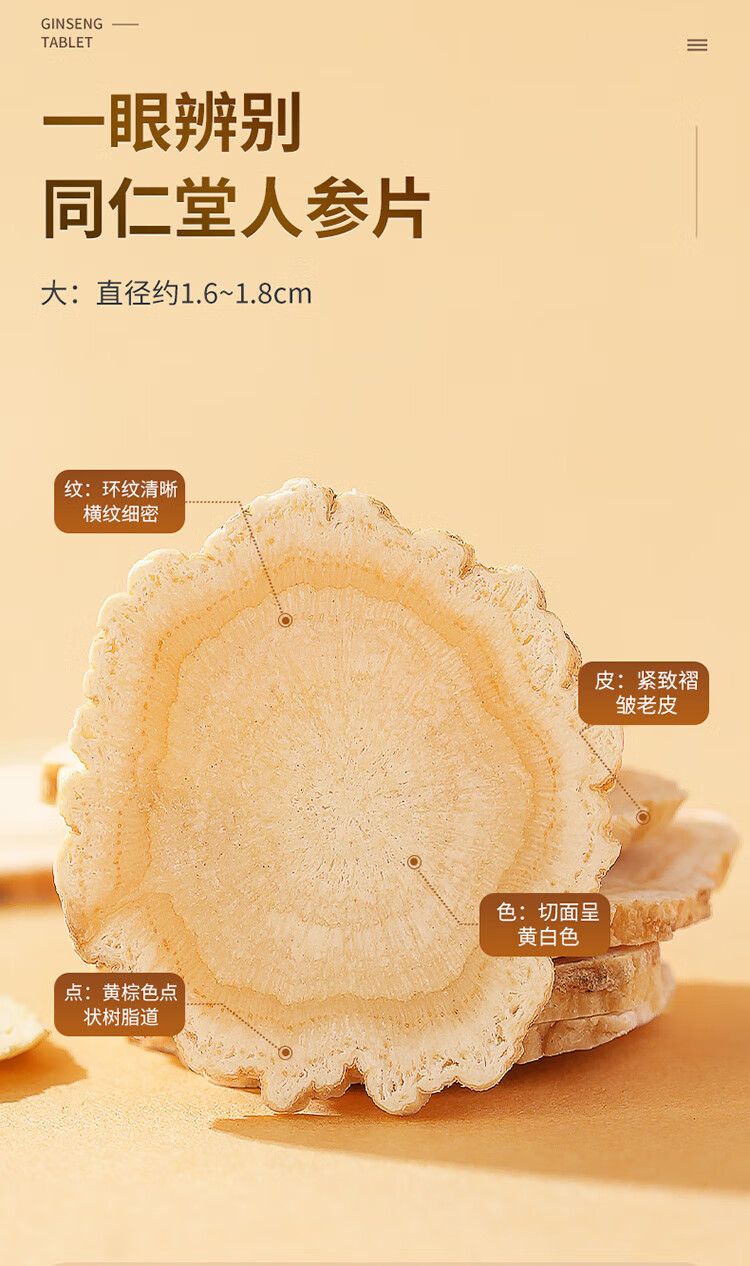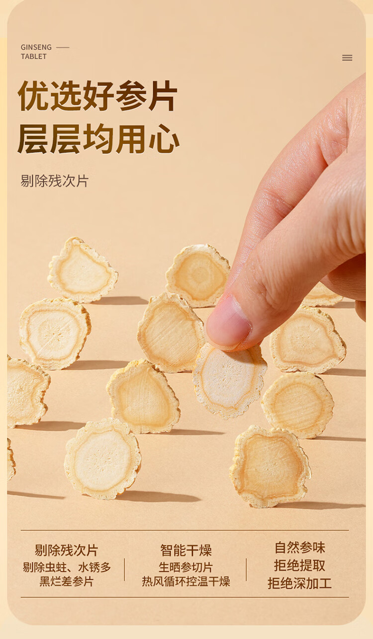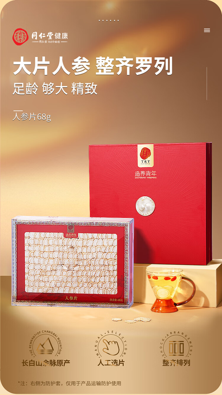 【正宗同仁堂品牌】北京同仁堂 人参片68g/盒 送礼盒 无熏蒸 主根正切 优选大片SY
