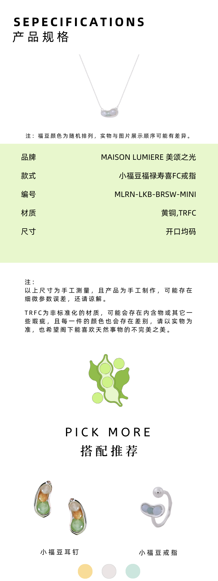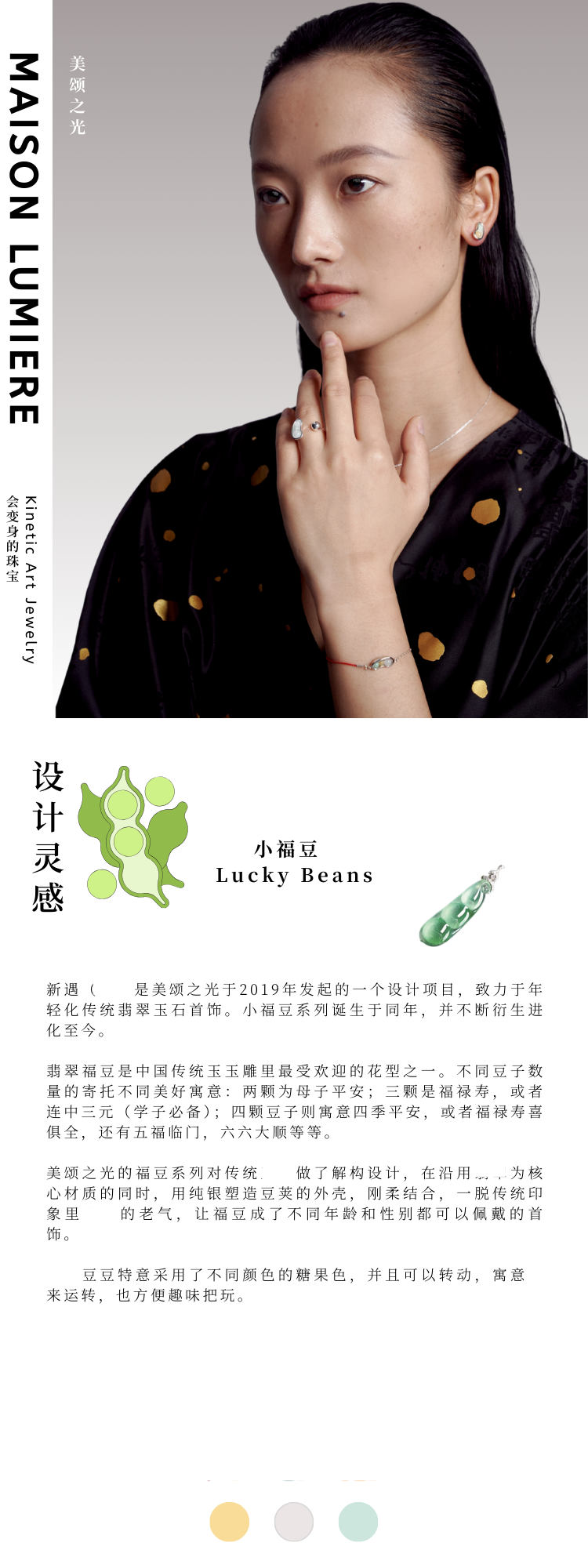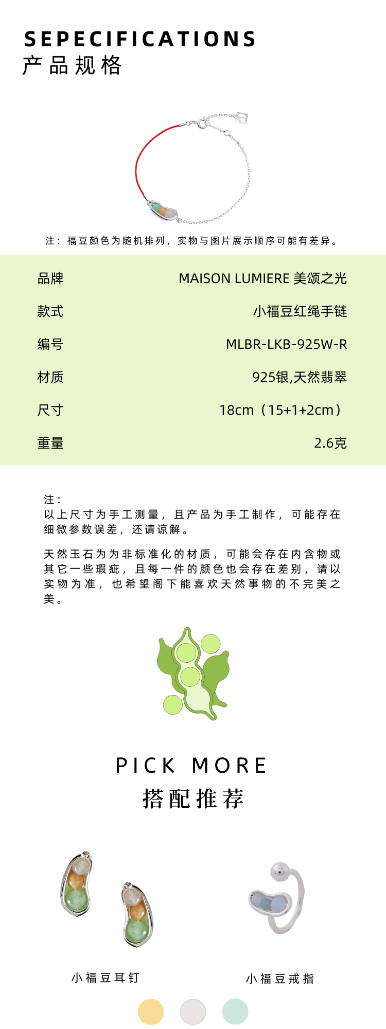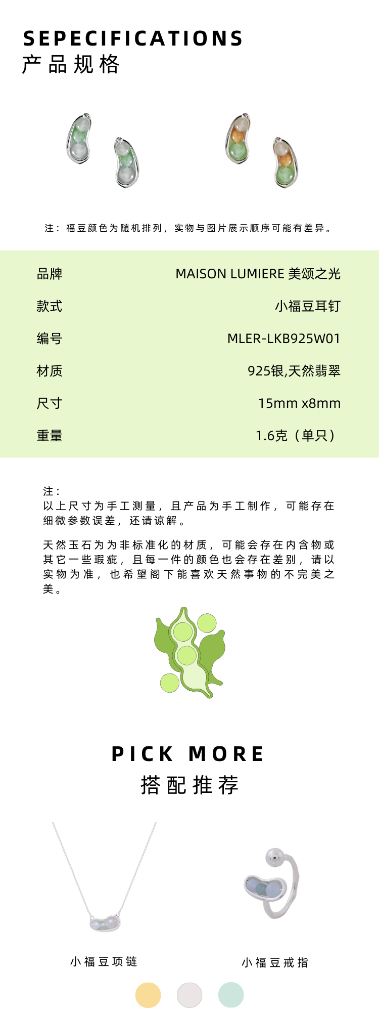 美颂之光 MAISON LUMIERE 925银天然翡翠福豆耳钉手链项链