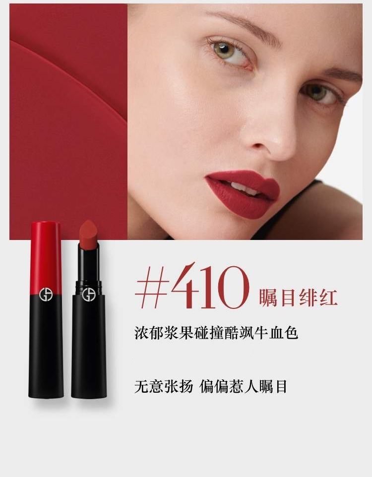 【临期·跨境】Armani 阿玛尼权力持色哑光唇膏口红#410瞩目绯红(哑雾版)3.1g(有效期:26年2月1)