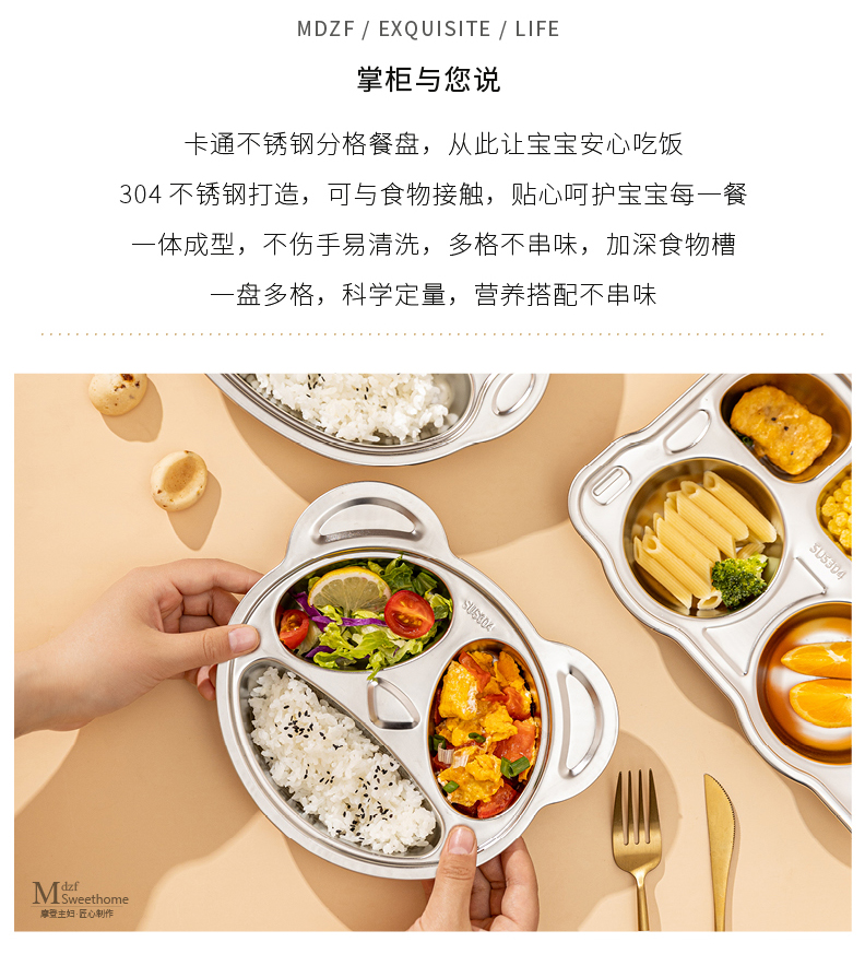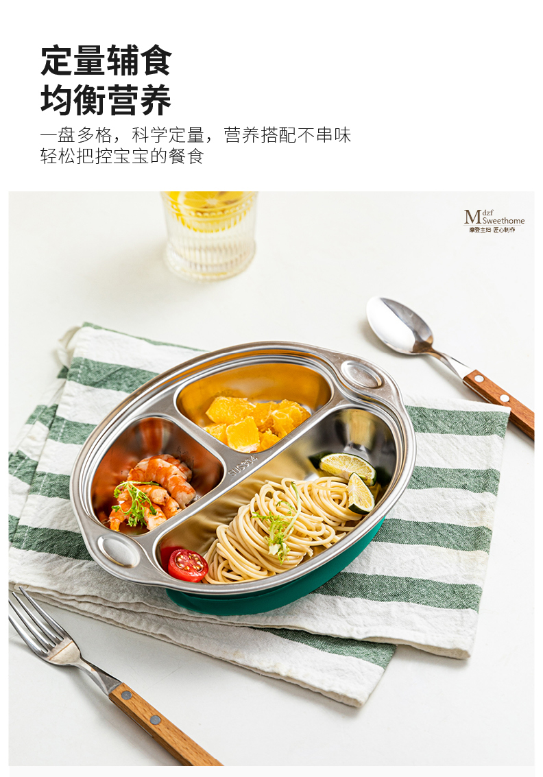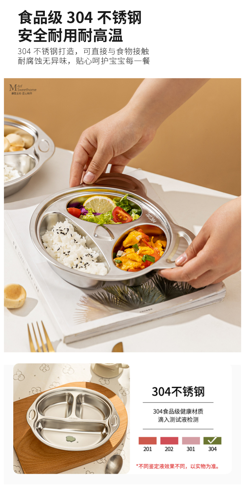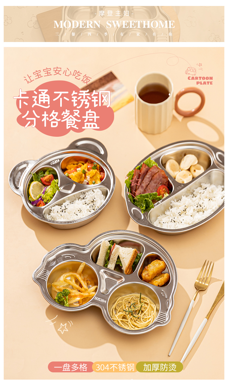 摩登主妇饭盘儿童餐盘分格不锈钢食品级男女孩幼儿园宝宝餐具分隔