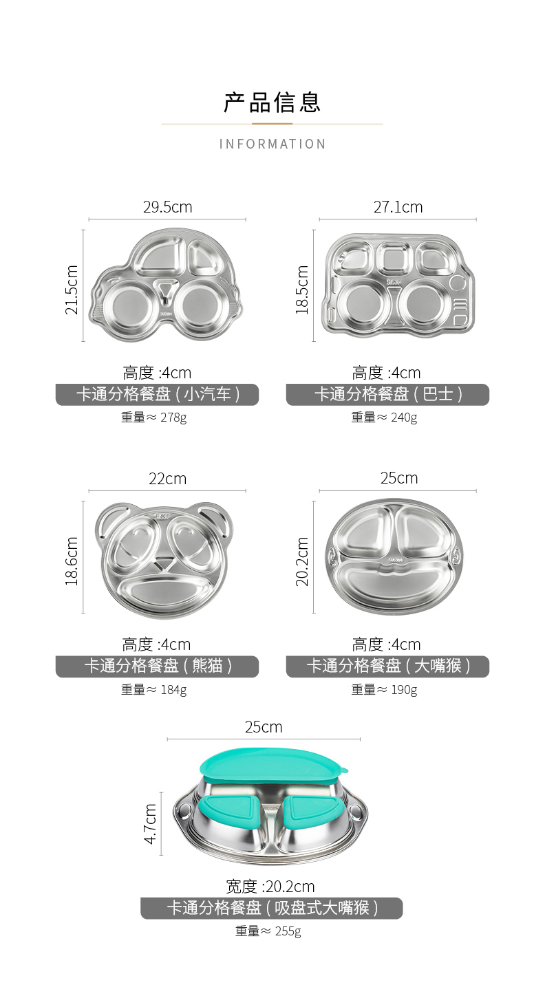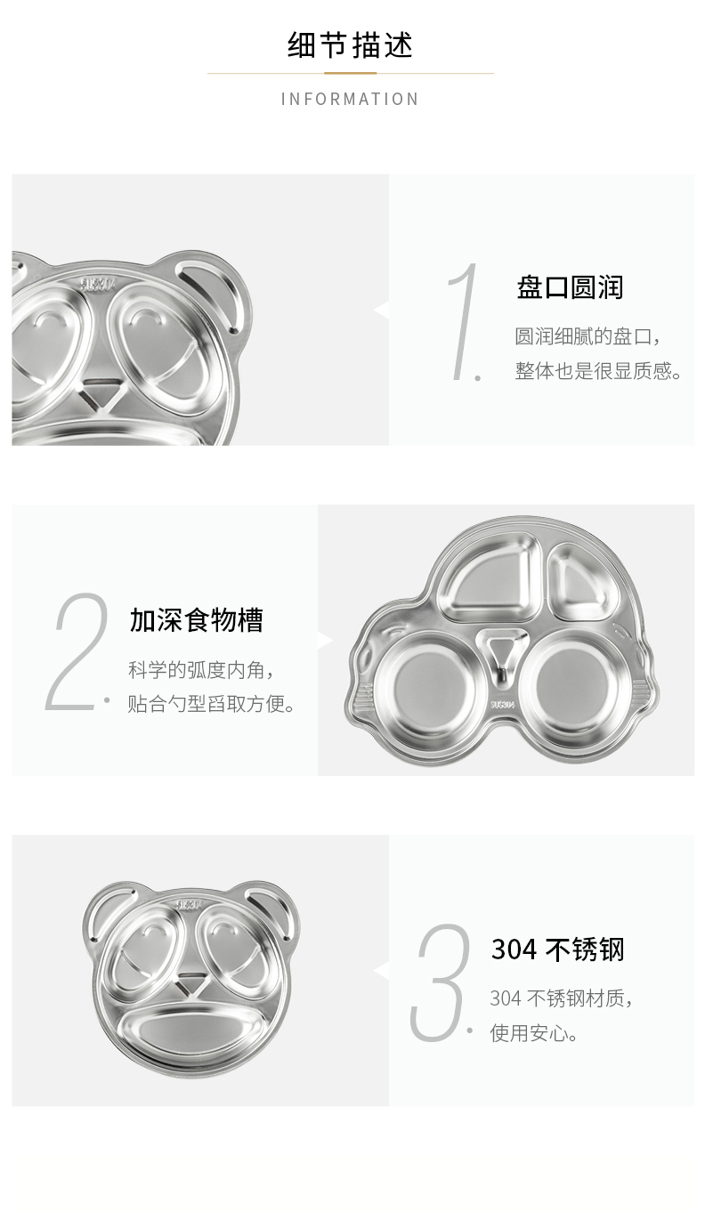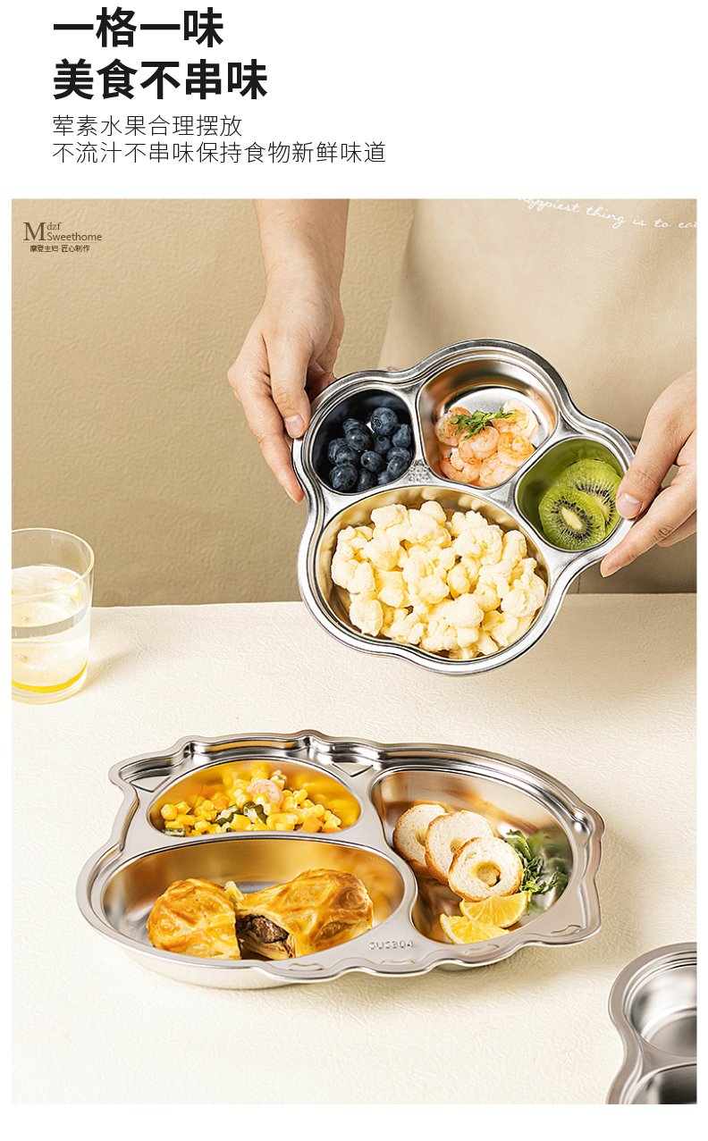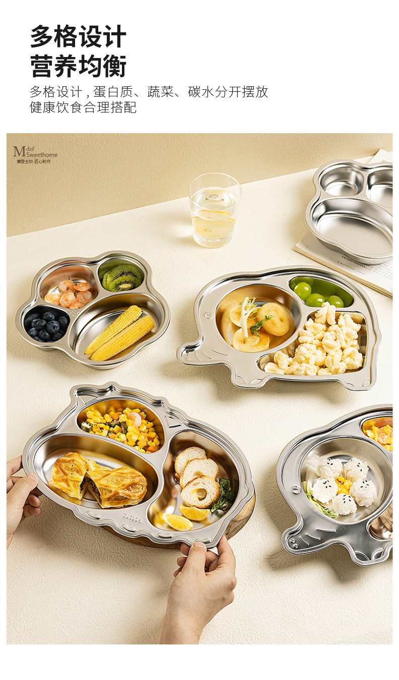 摩登主妇饭盘儿童餐盘分格不锈钢食品级男女孩幼儿园宝宝餐具分隔