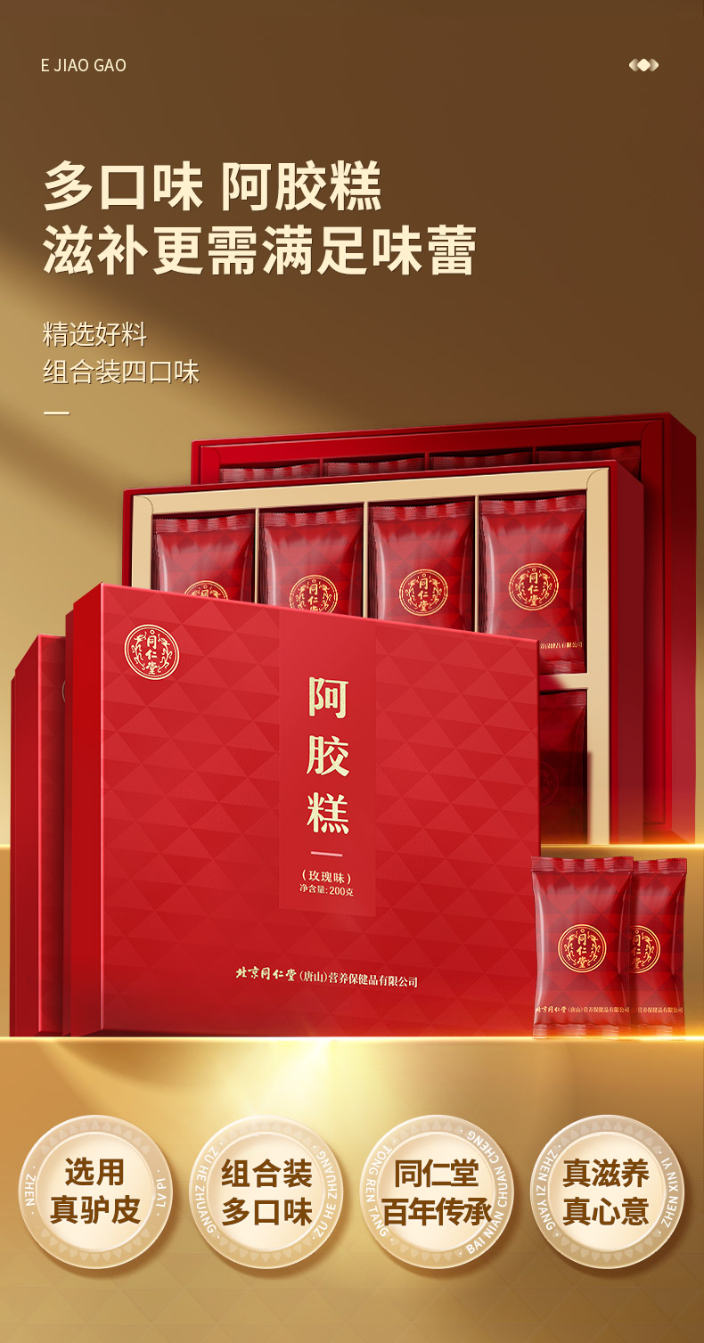 【正宗同仁堂品牌】北京同仁堂 青源堂 阿胶糕组合装(低糖+枸杞+红枣+玫瑰)800克(200克X4)产地东阿县 胶质纯正【有效期至25年6月】SY