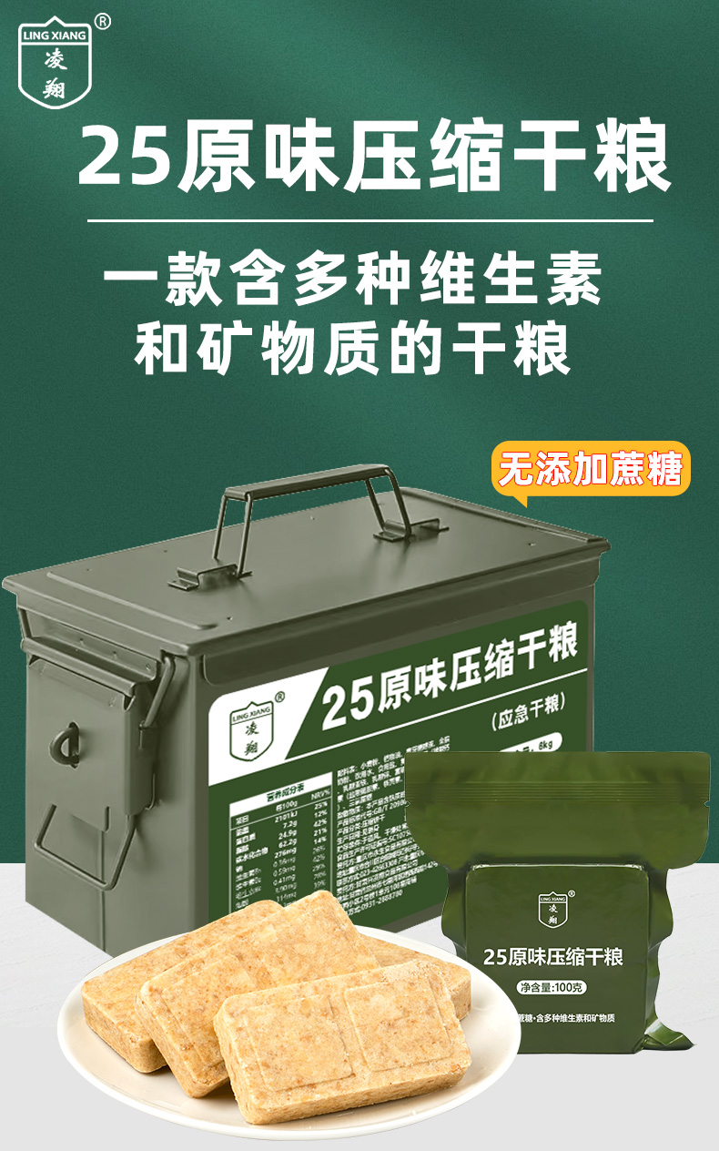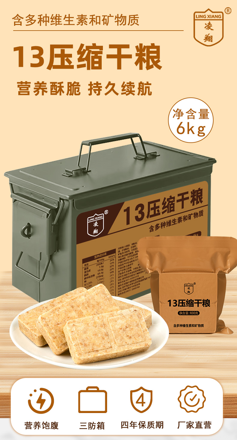 【硬核三防铁桶 长期应急储备】凌翔三防100g小包压缩饼干储备口粮