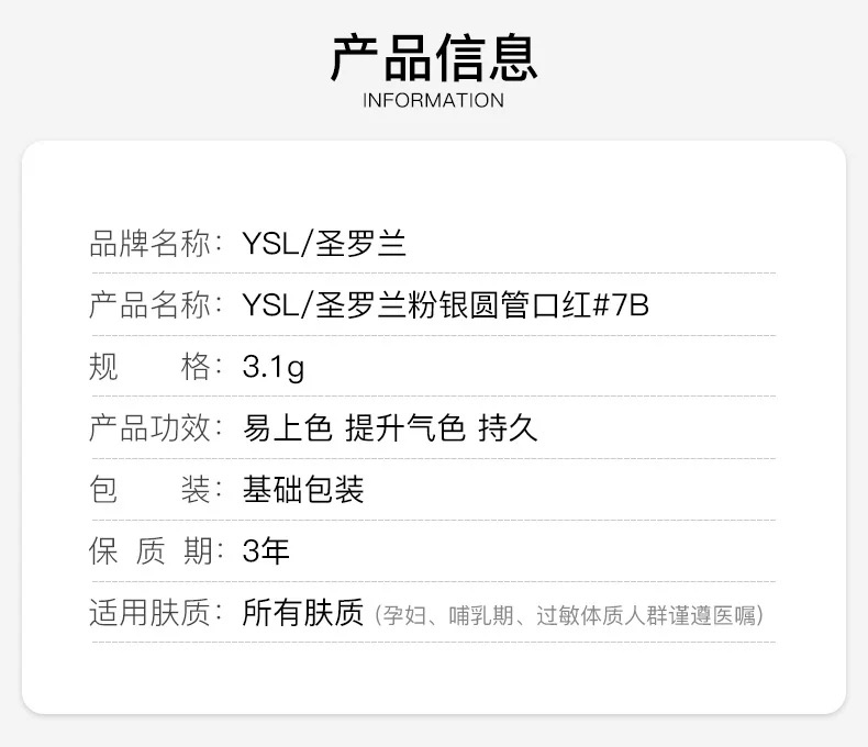【门店直发】圣罗兰圆管粉管口红唇膏7B滋润保湿提升气色3.1g