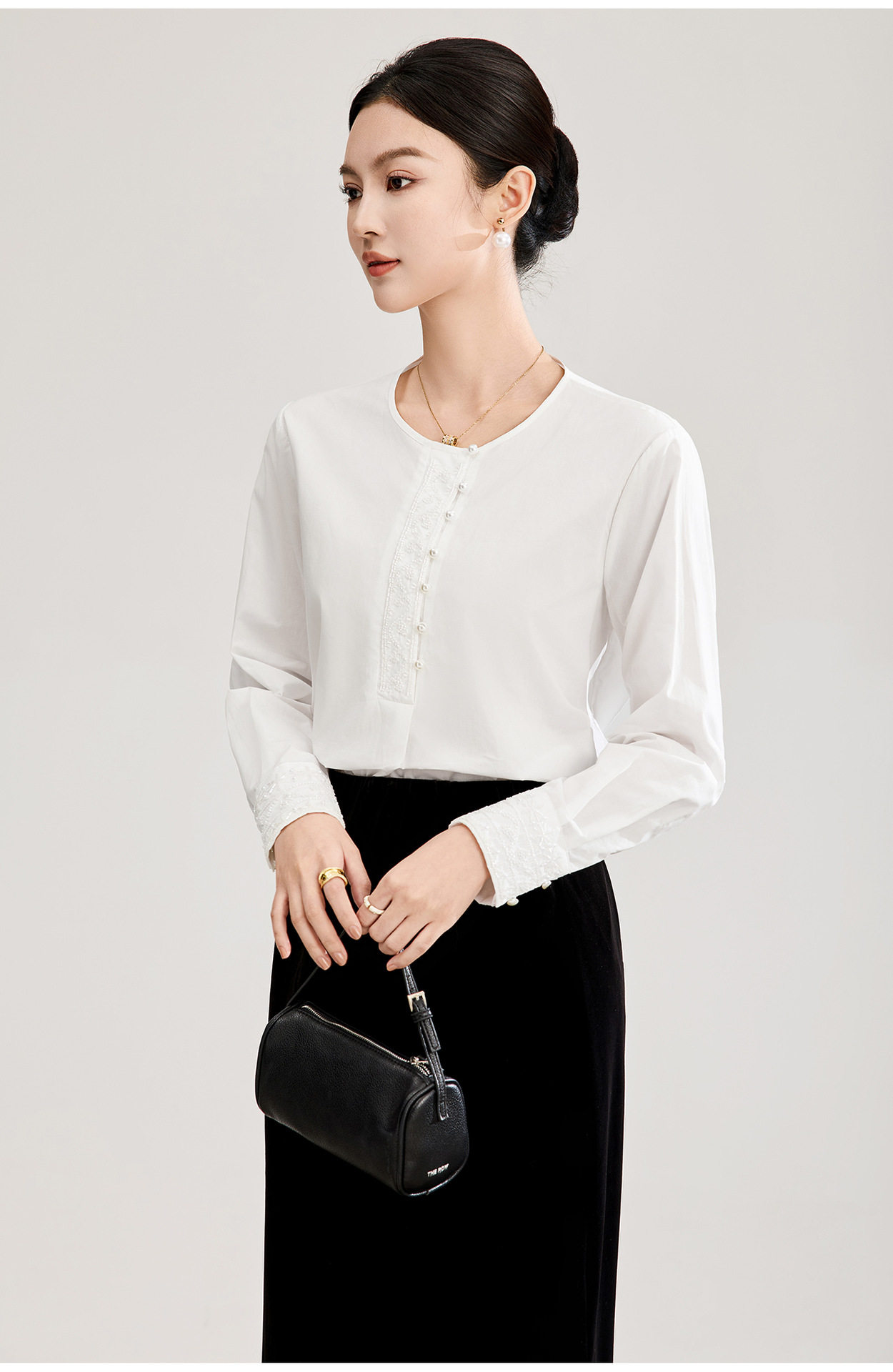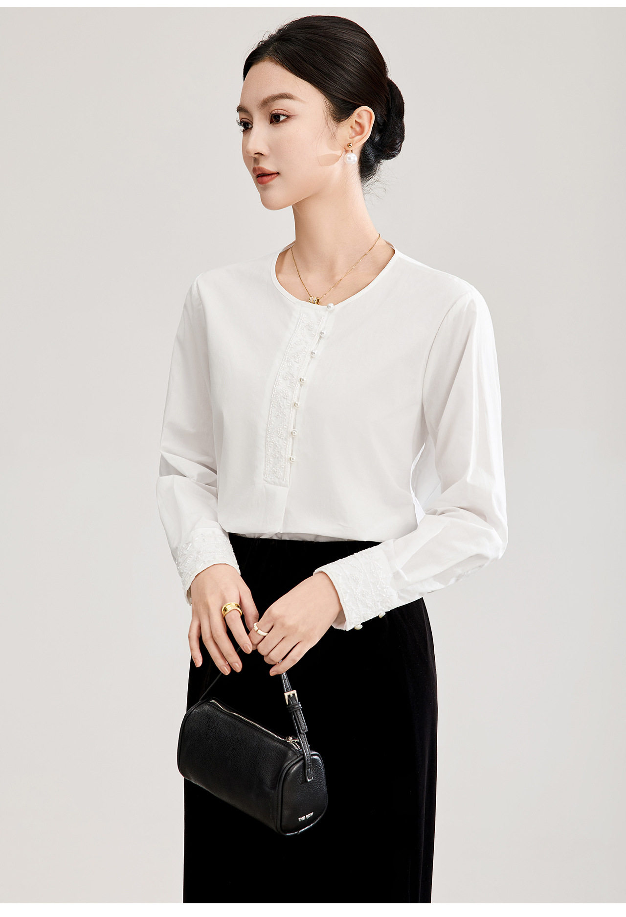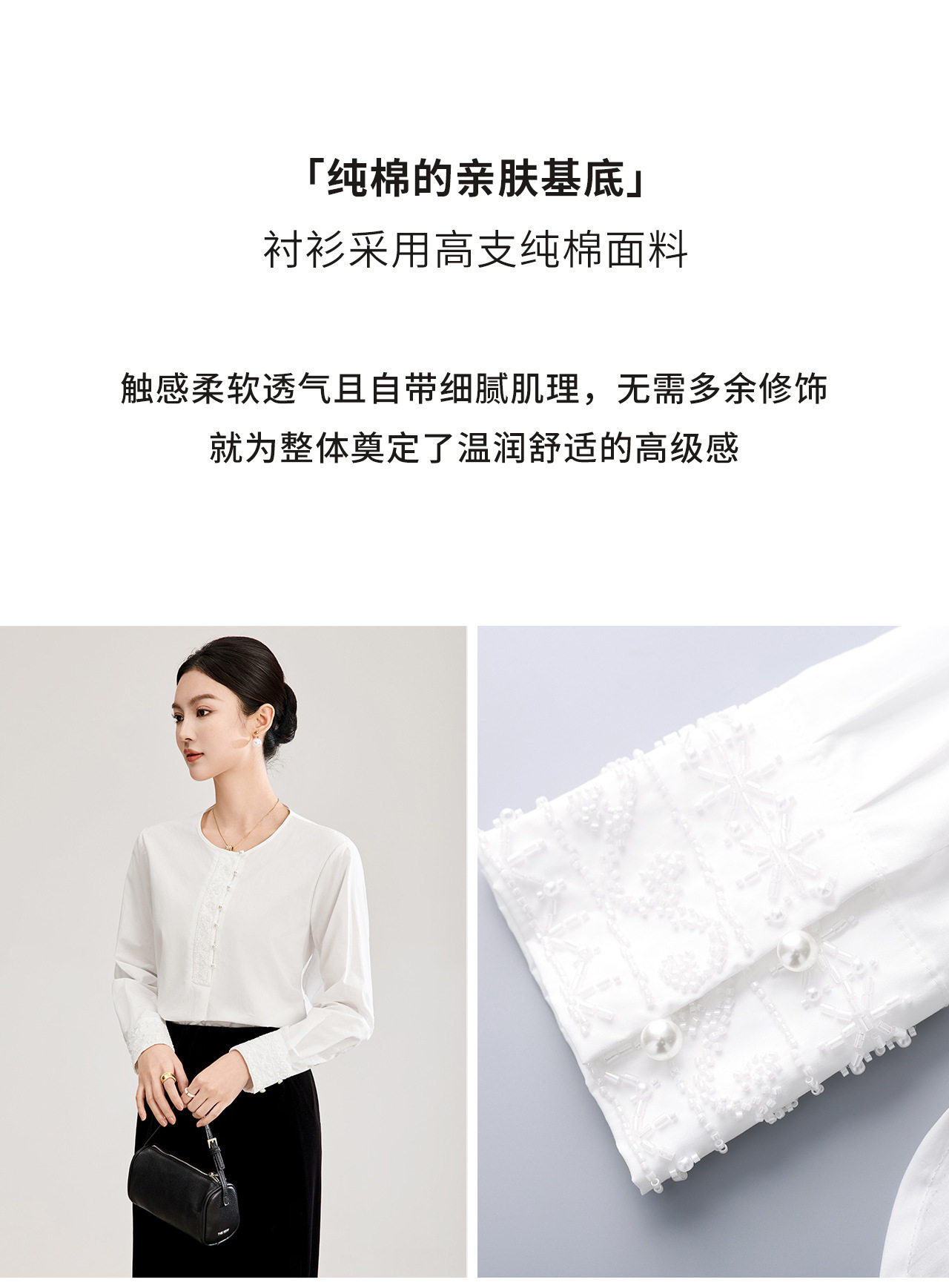 「高货wl」全新升级【铂金会员266/天猫359/差价93】(50319)洛诗琳纯棉手工浮雕钉珠上衣2026春季法式百搭通勤衬衫
