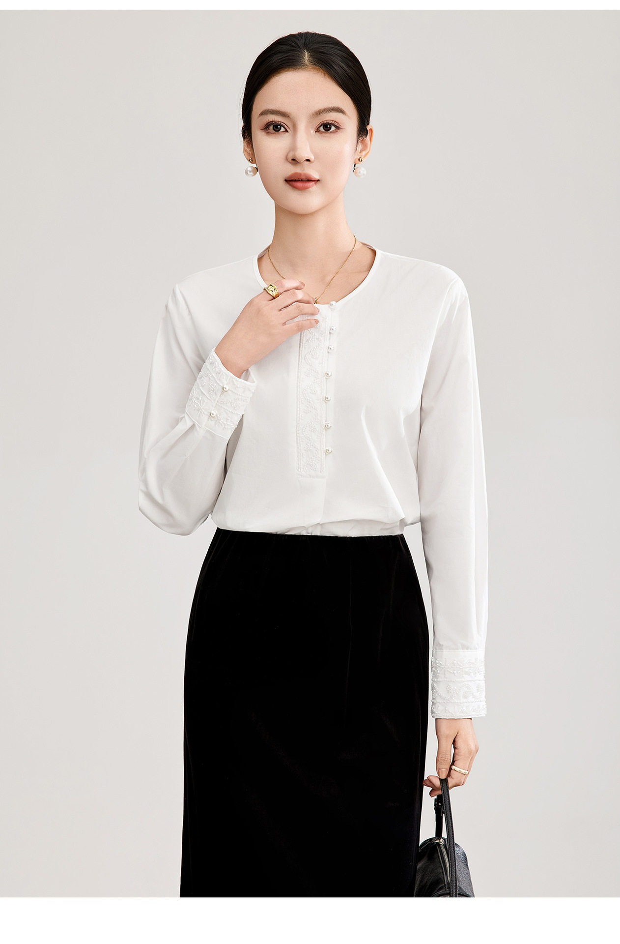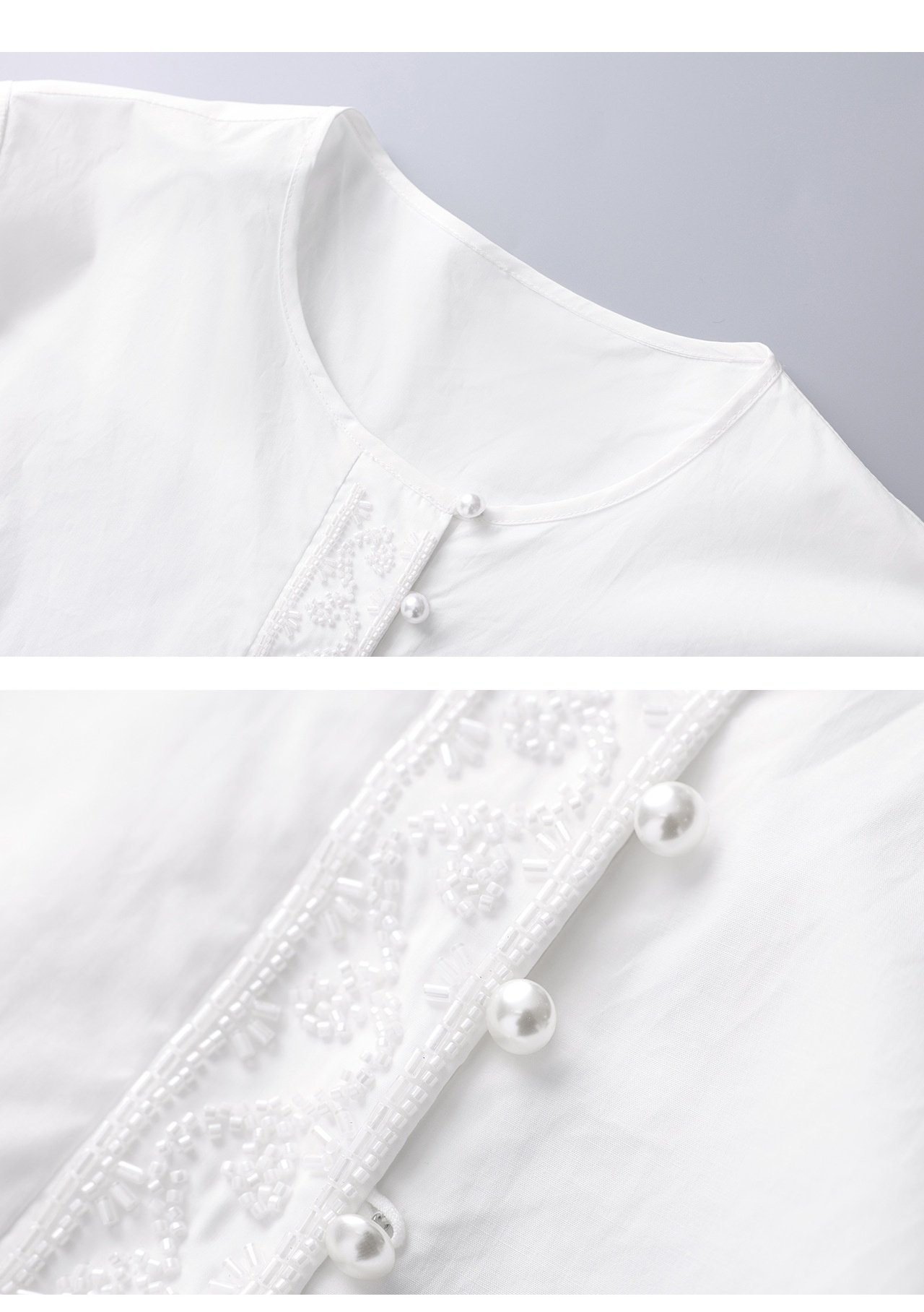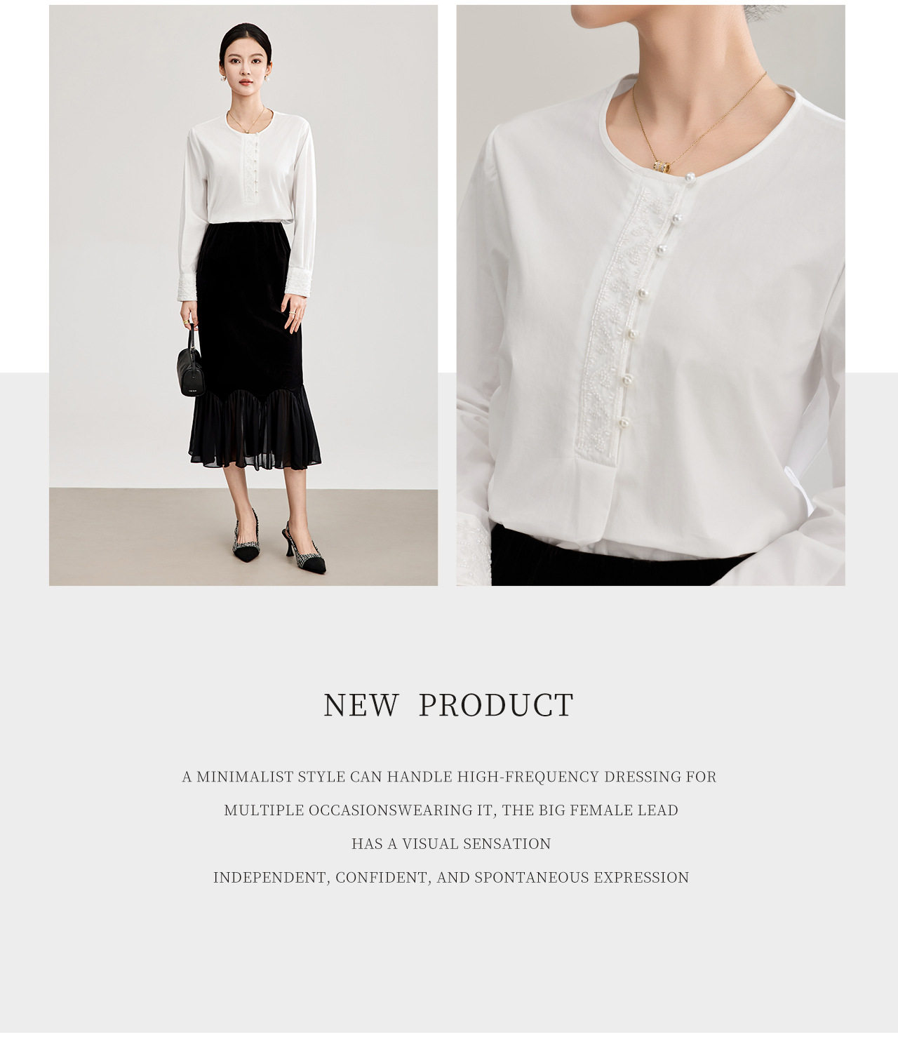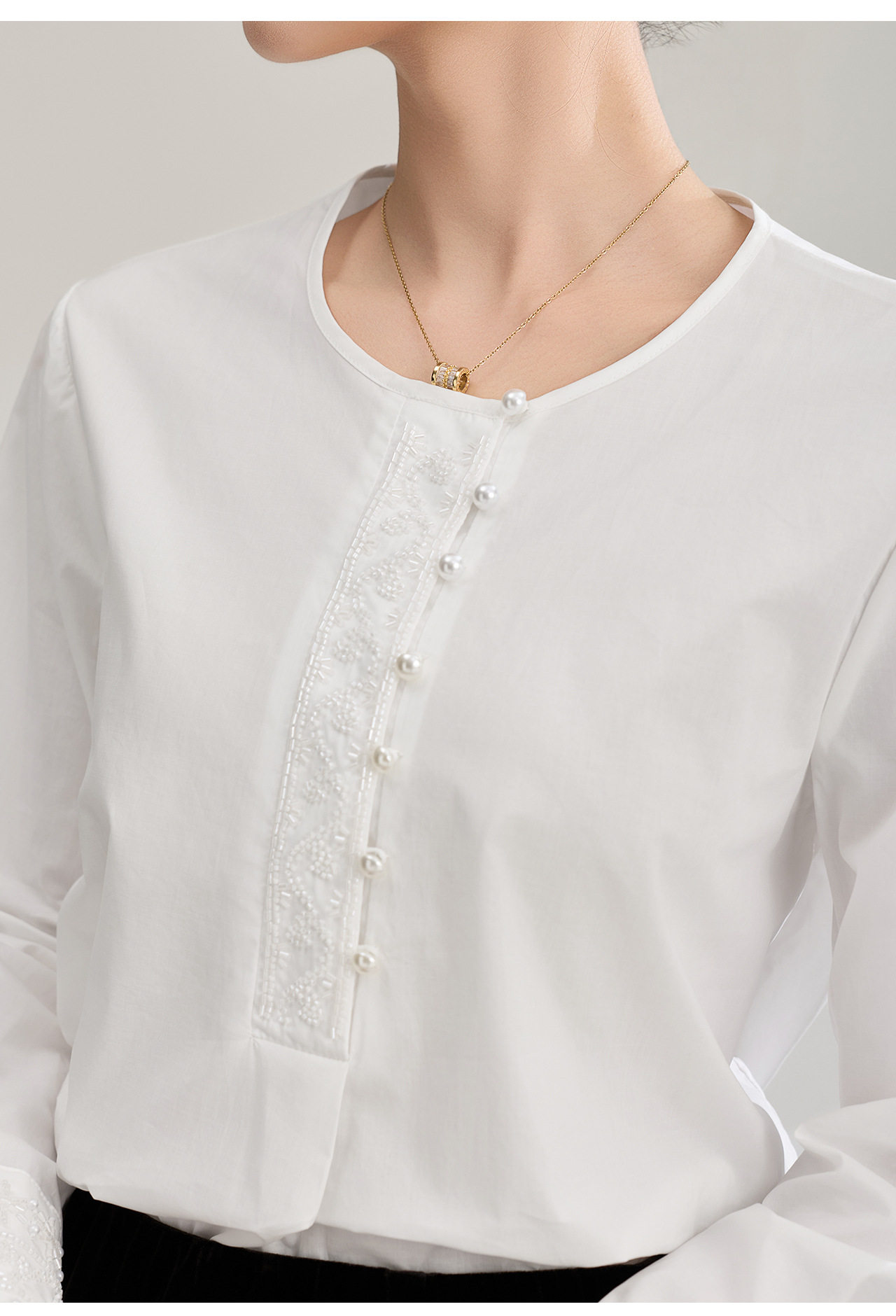 「高货wl」全新升级【铂金会员266/天猫359/差价93】(50319)洛诗琳纯棉手工浮雕钉珠上衣2026春季法式百搭通勤衬衫