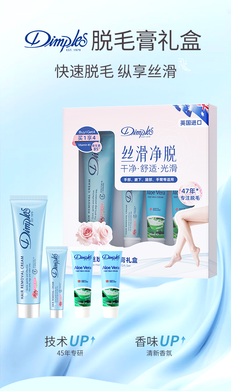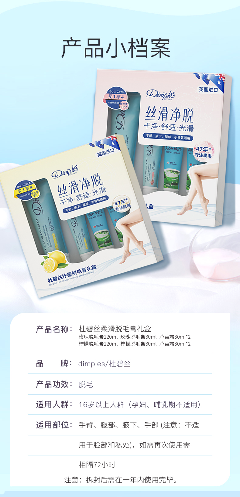 严选 | 杜碧丝脱毛膏礼盒装 脱毛膏120ml/支 + 脱毛膏30ml/支 + 芦荟霜30ml*2支 柠檬香/玫瑰香两种可选