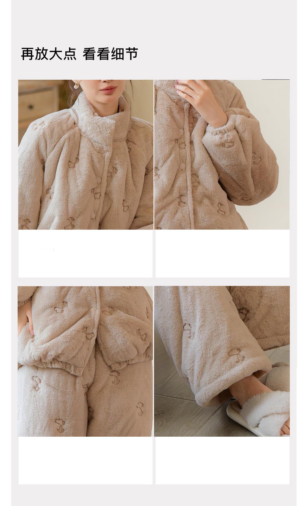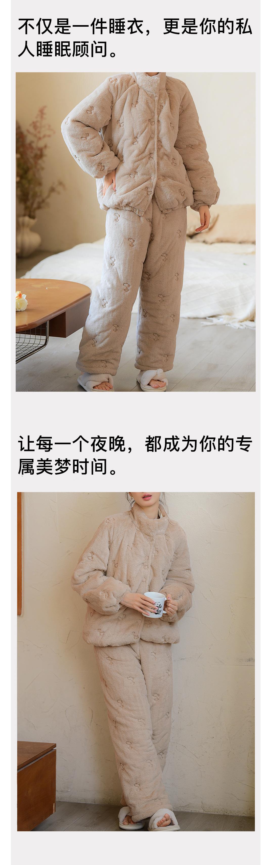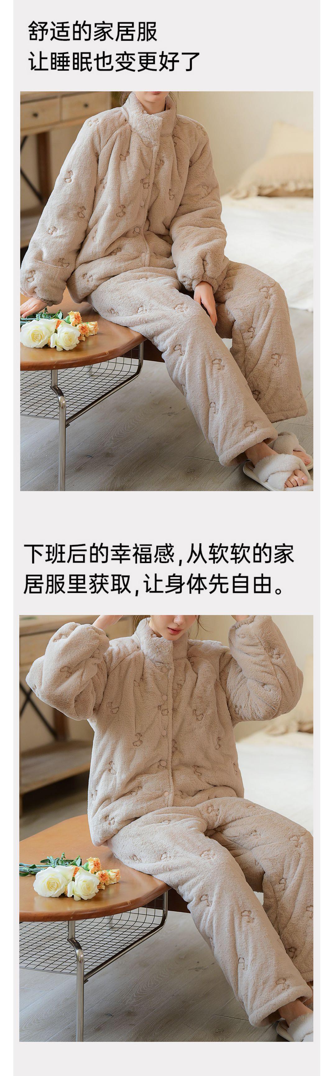 特厚三层夹棉睡衣秋冬法式新款套装冬毛兔貂开衫宽松可外穿家居服