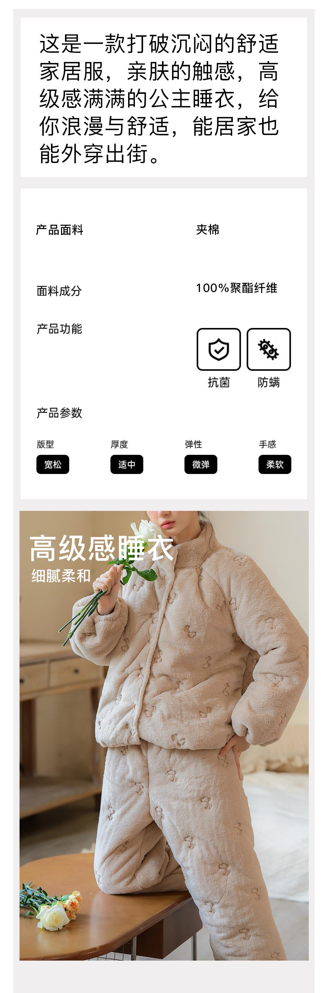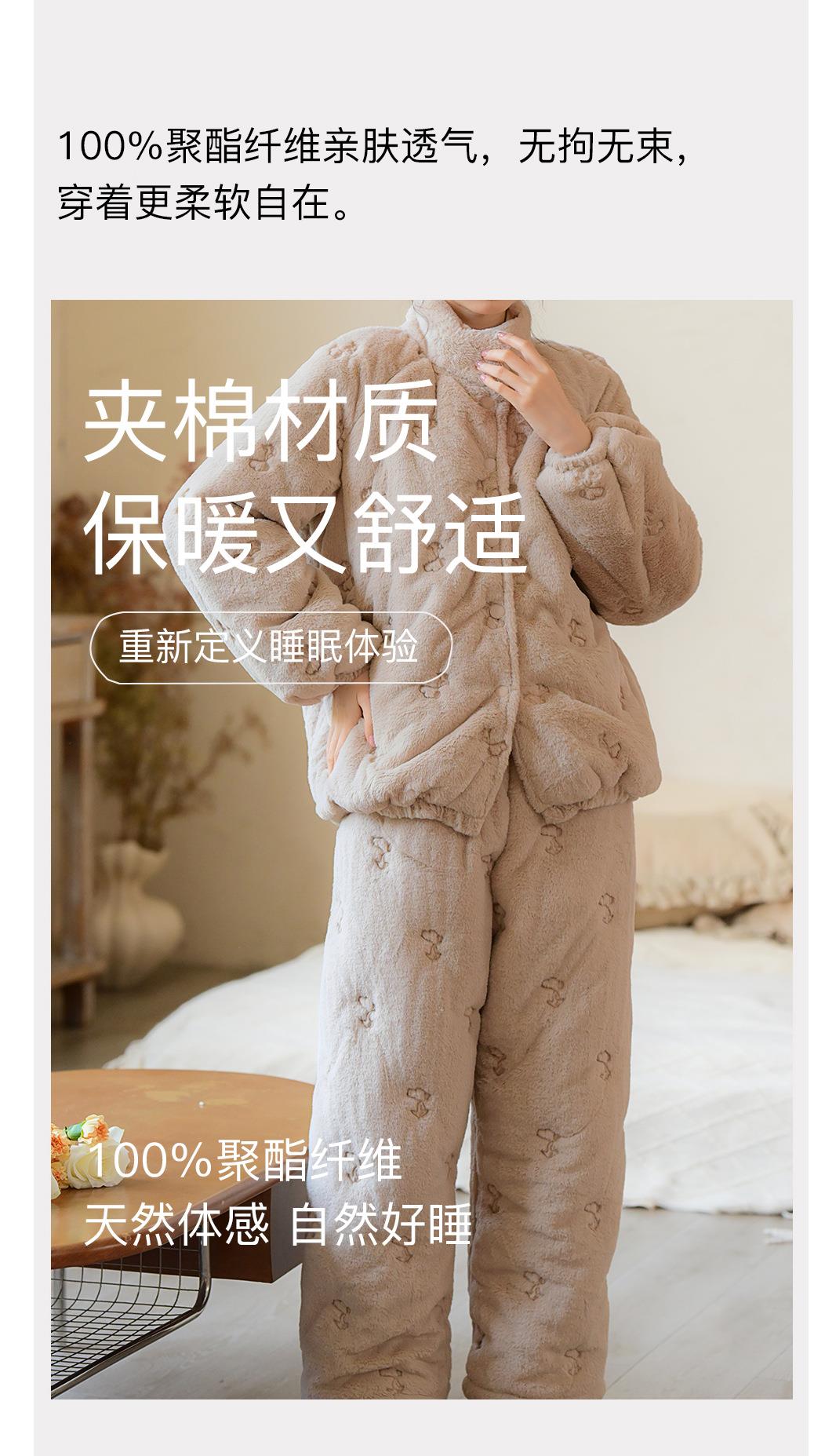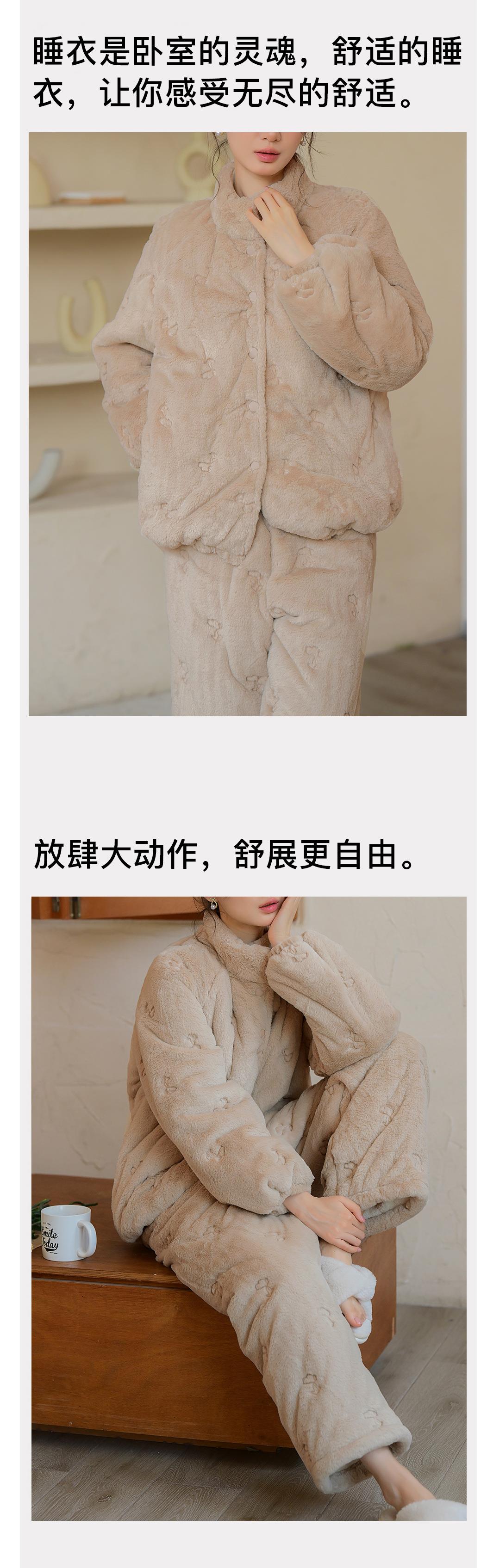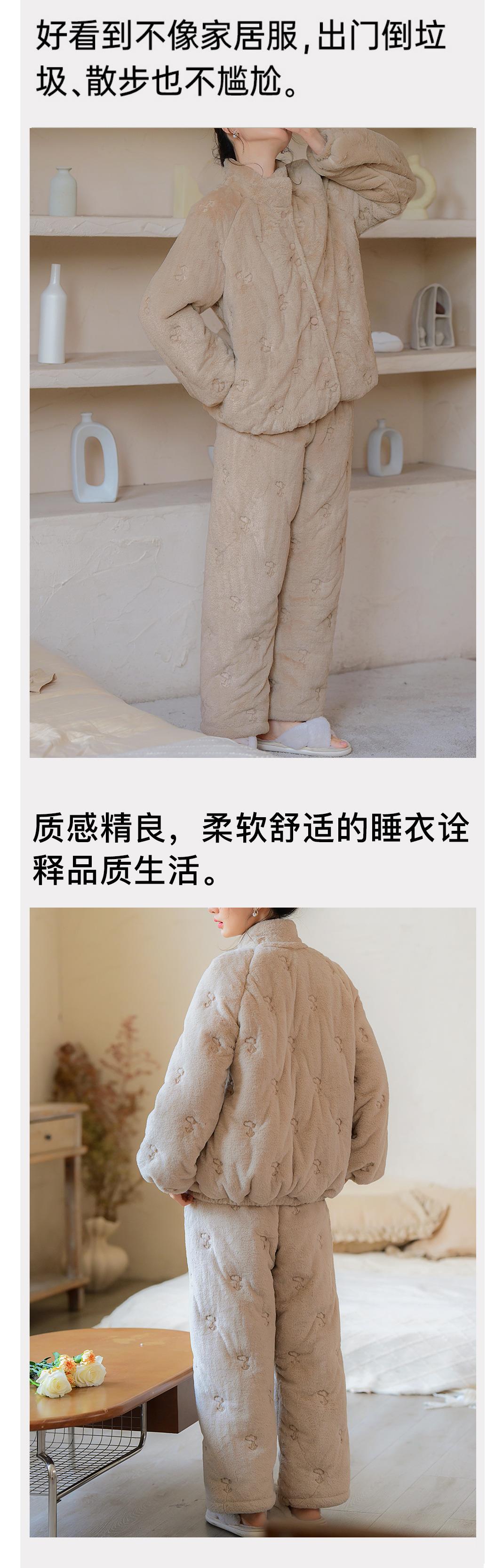 特厚三层夹棉睡衣秋冬法式新款套装冬毛兔貂开衫宽松可外穿家居服