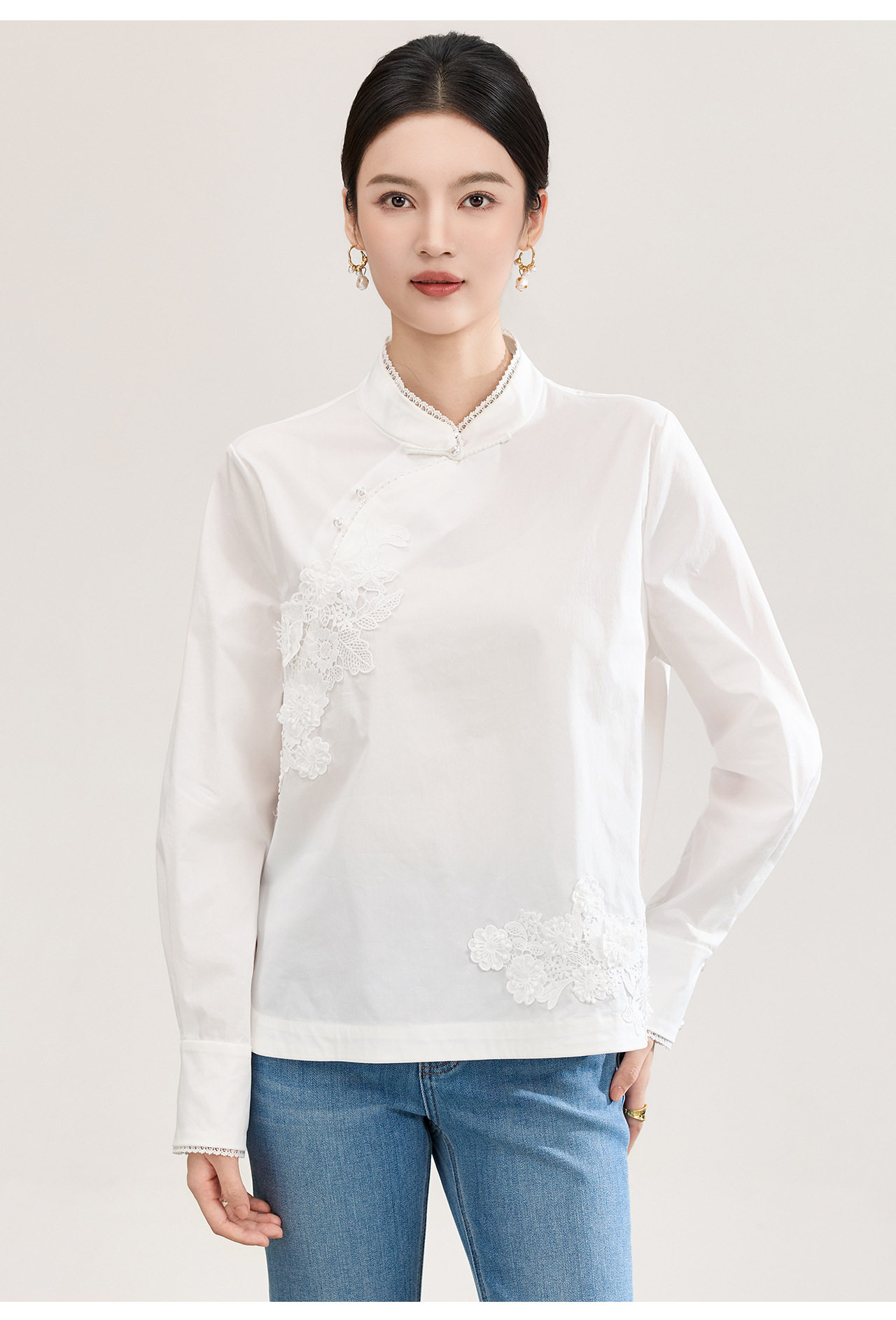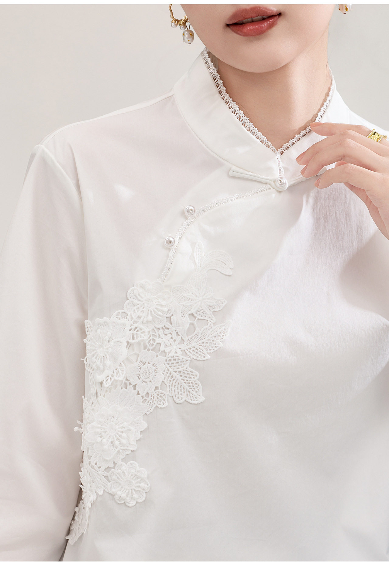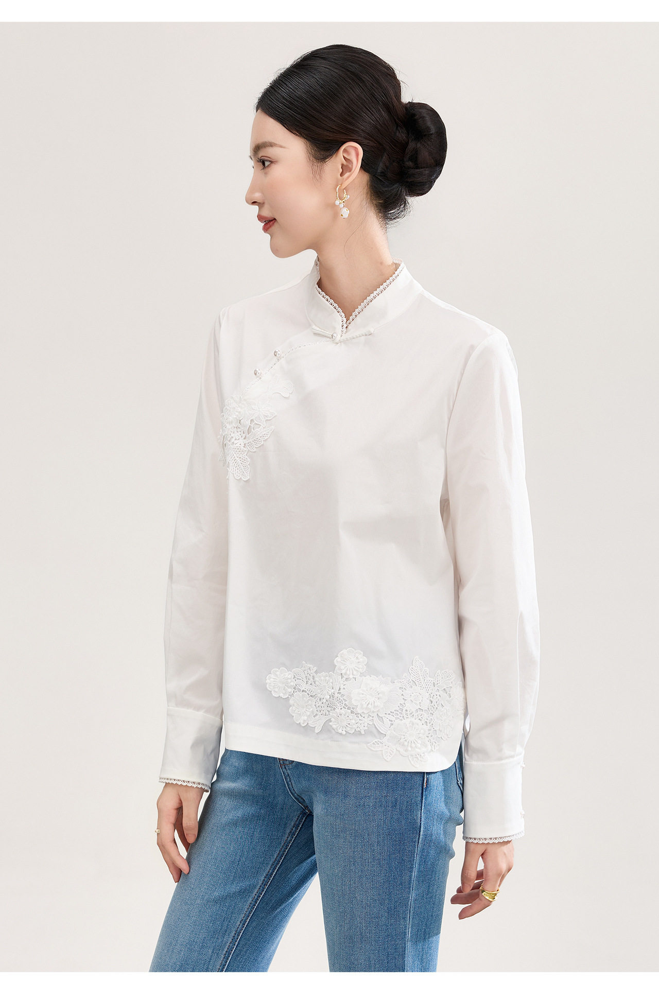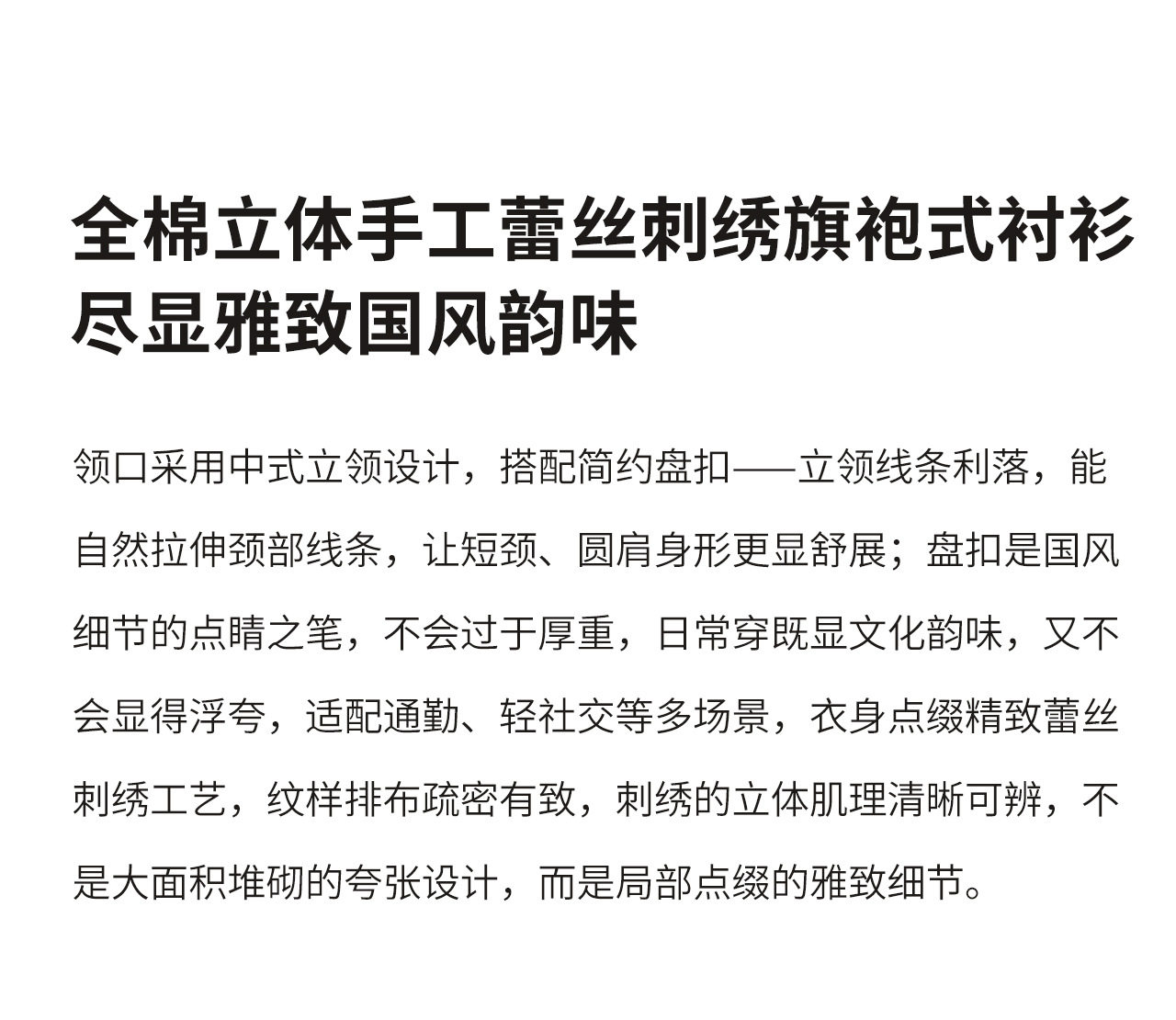 「高货wl」全新升级【铂金会员330/天猫449/差价119】(00706)洛诗琳2026春季新款气质天丝棉立体手工刺绣花改良旗袍式国风衬衫