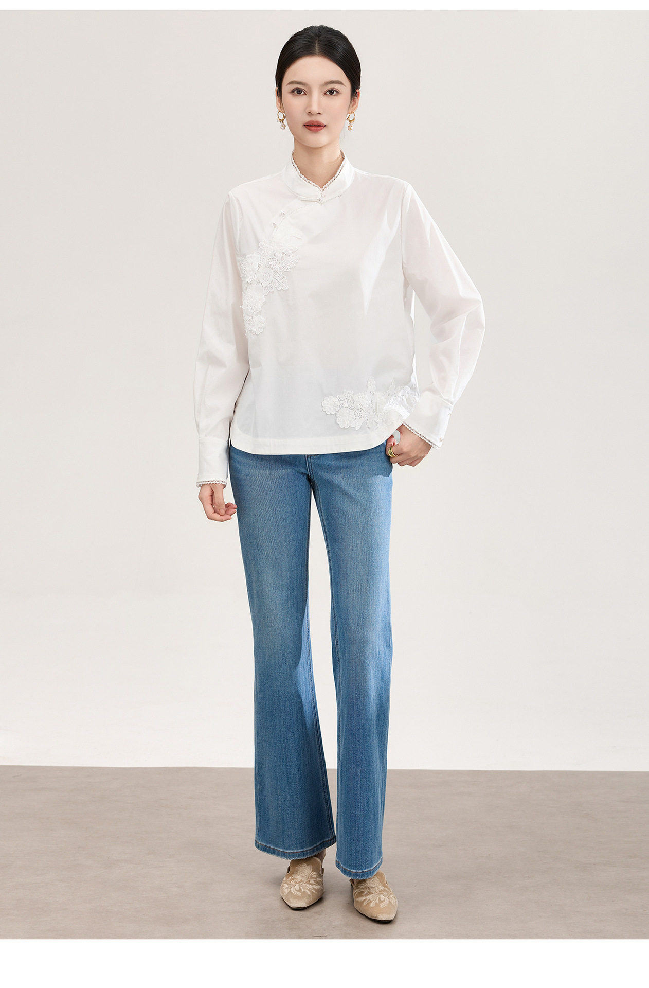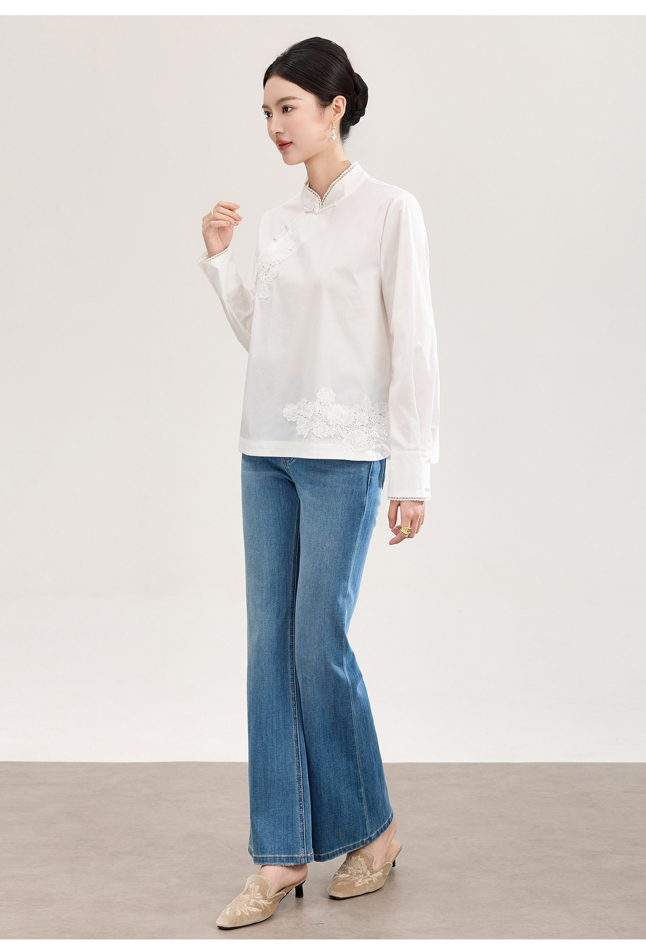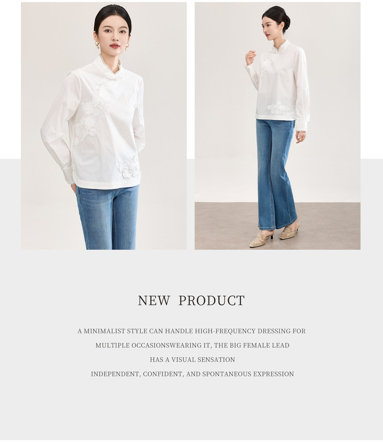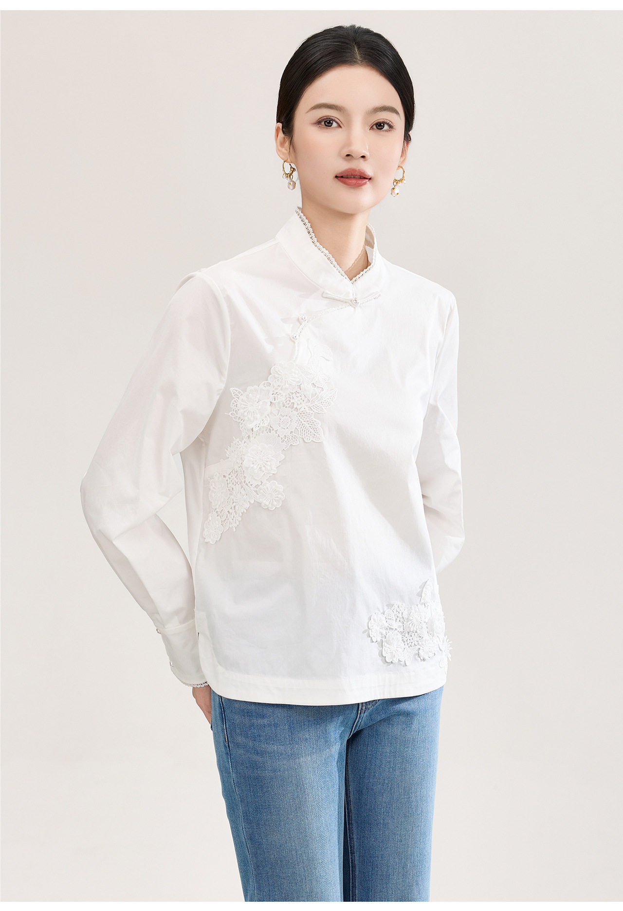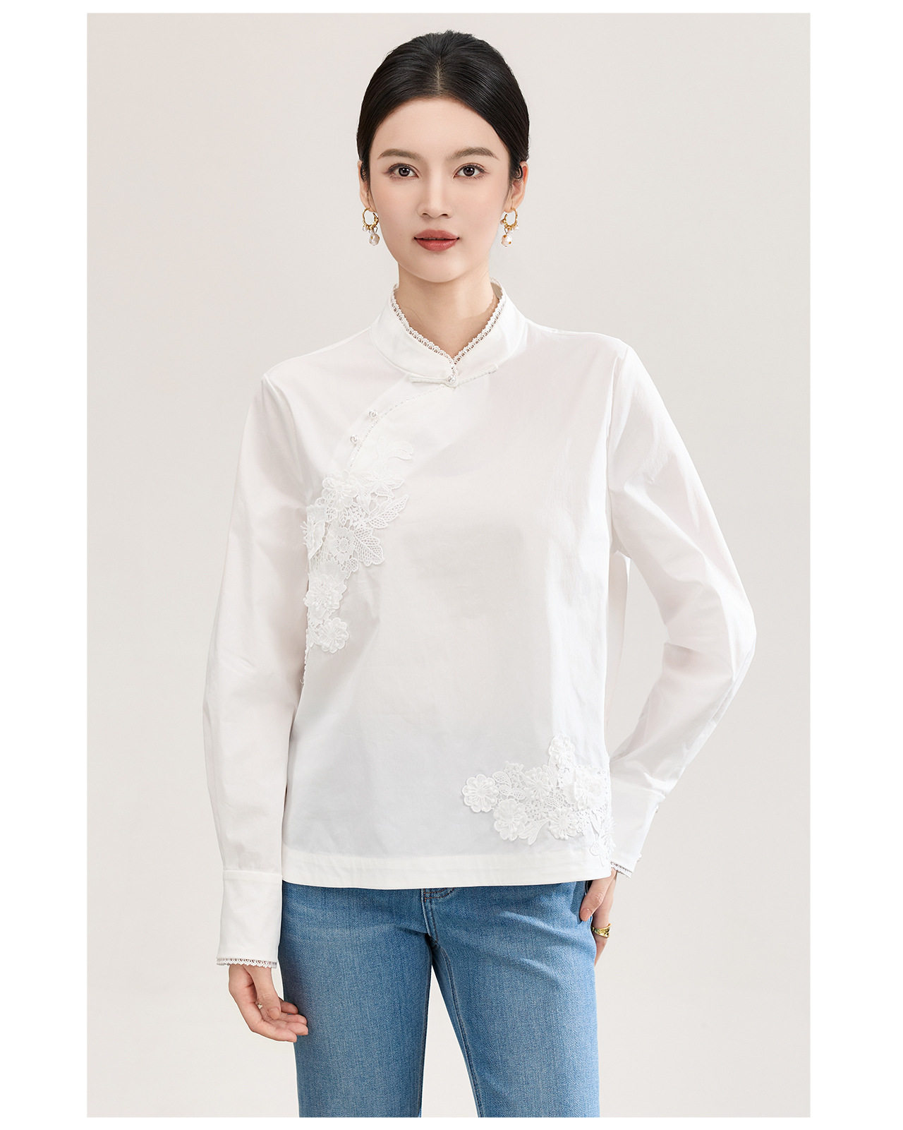 「高货wl」全新升级【铂金会员330/天猫449/差价119】(00706)洛诗琳2026春季新款气质天丝棉立体手工刺绣花改良旗袍式国风衬衫
