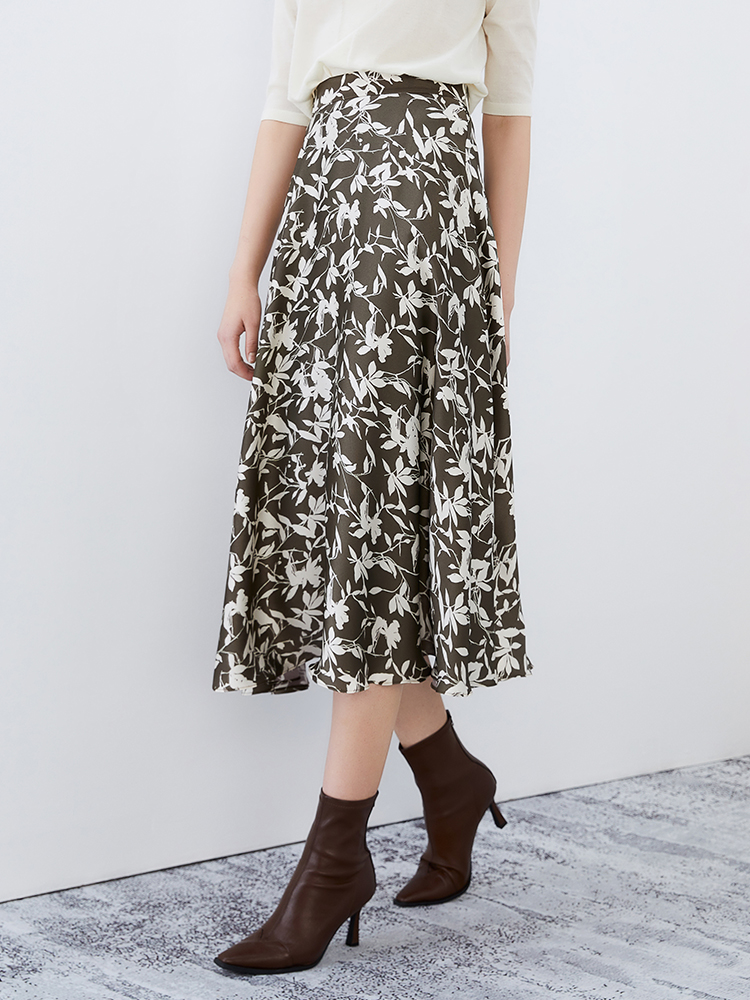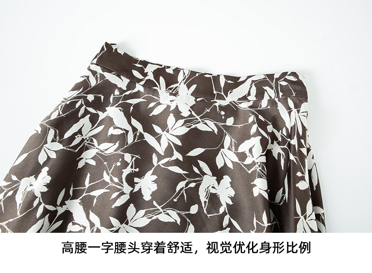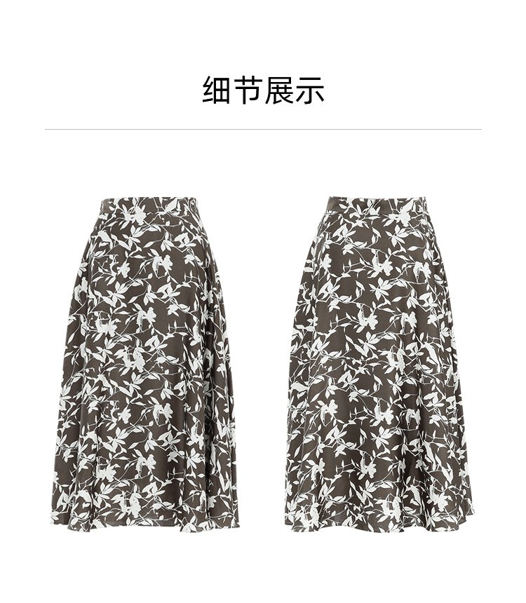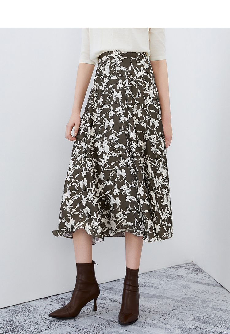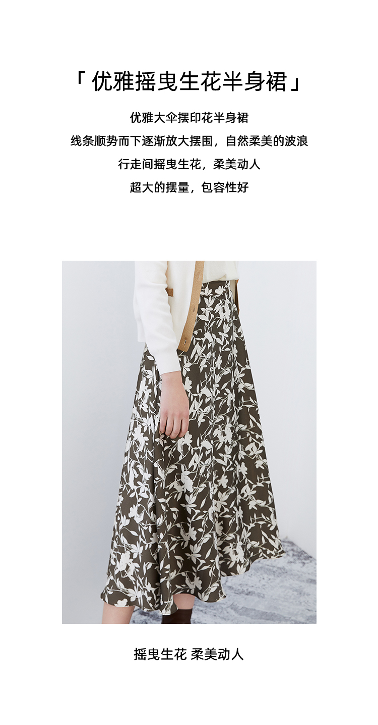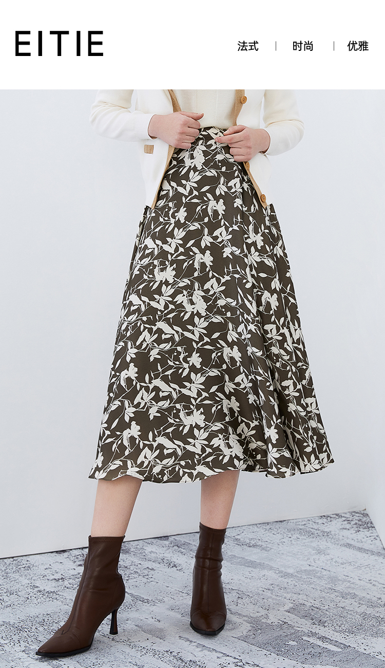 EITIE爱特爱秋季新款显瘦百搭气质印花高腰a字时尚通勤半身裙7506207