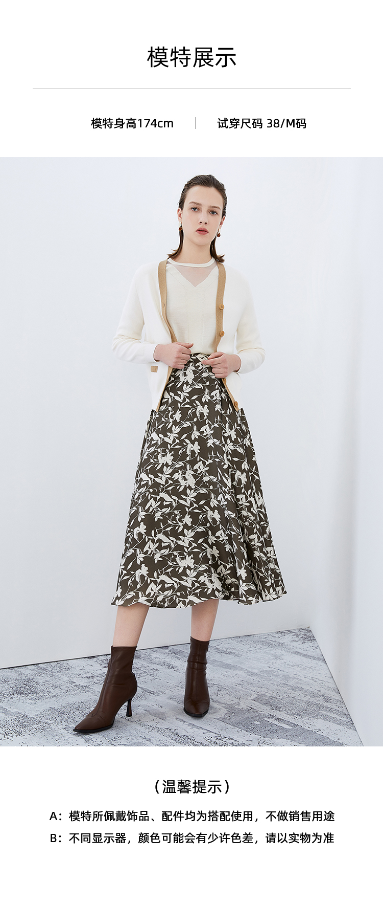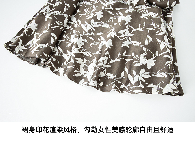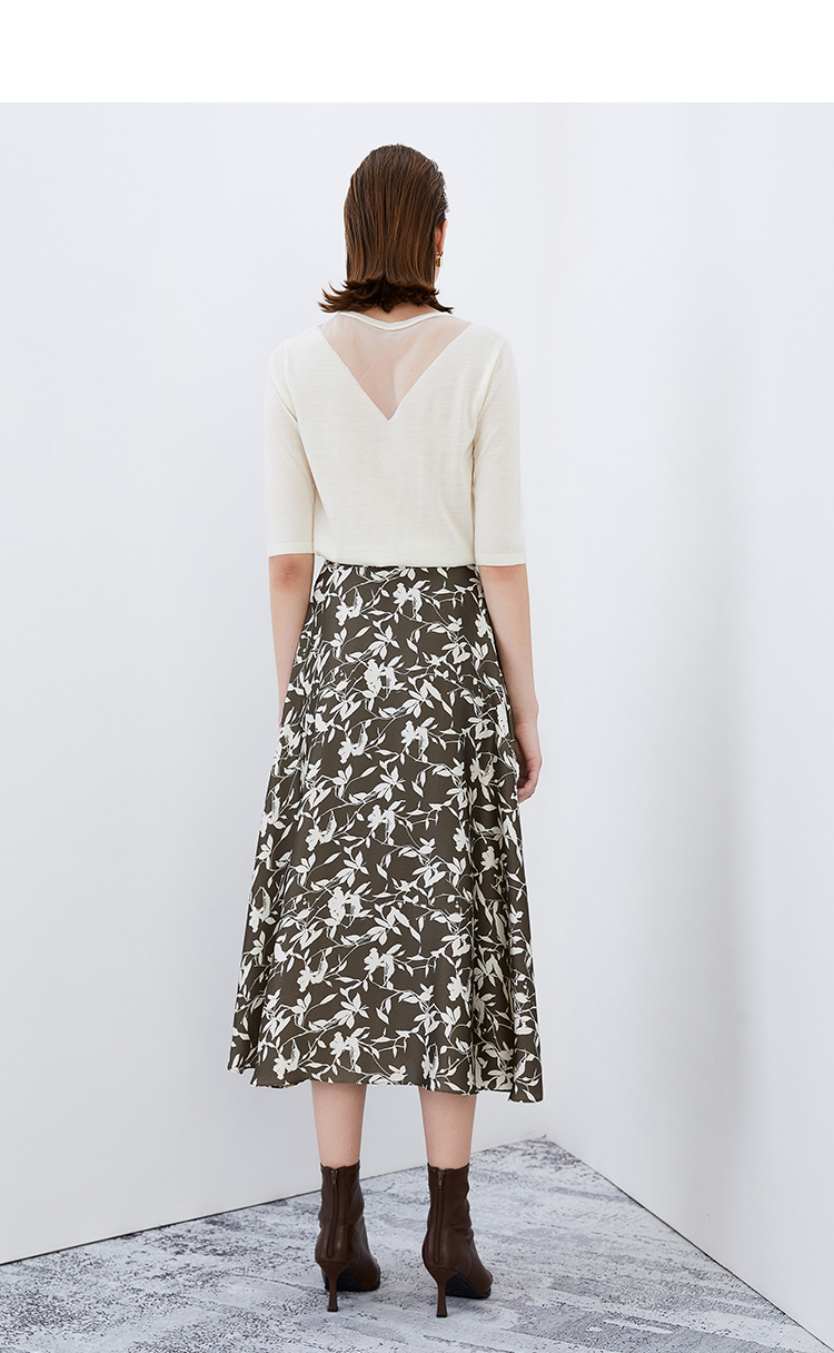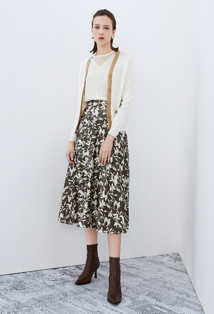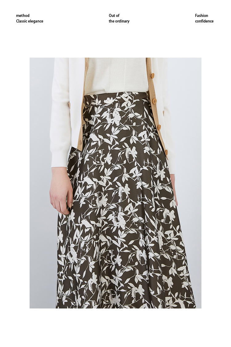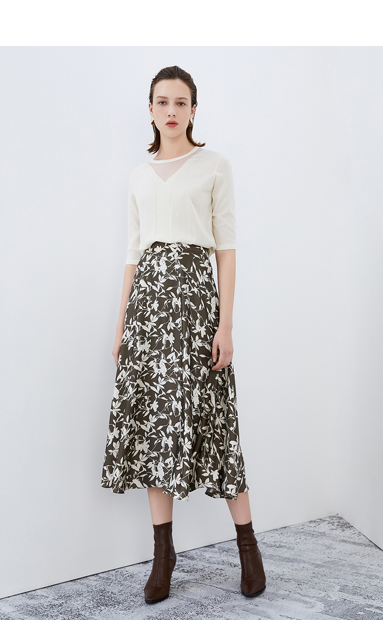 EITIE爱特爱秋季新款显瘦百搭气质印花高腰a字时尚通勤半身裙7506207