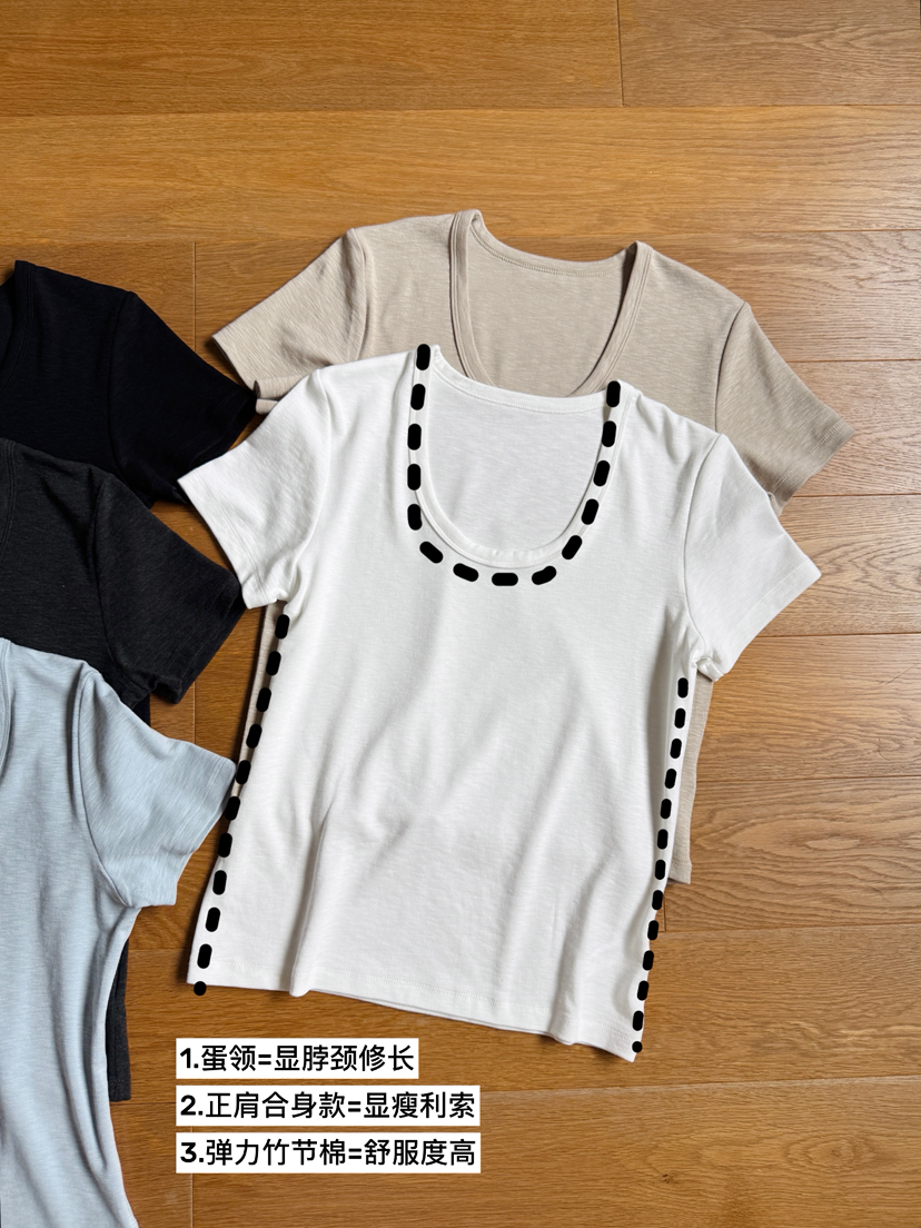 26年春夏新款短袖T,颜色都盘了,因为整体的维度非常好,wan美契合了面料和版型,yi流的肤感,看似漫不经心,实际更讲究,上身是合身显瘦的!,一点不局促,能一秒抬人!